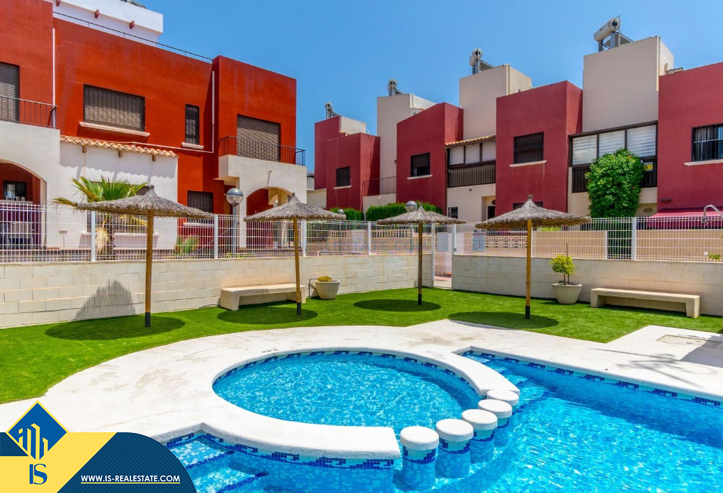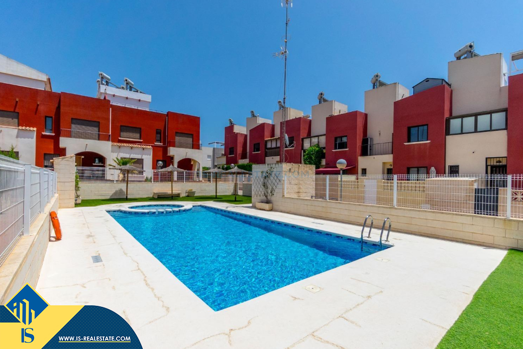 4-ių kambarių vila su bendru baseinu, Ispanijoje, Alicante provincijoje, Torrevieja mieste, La Mata rajone, bendras plotas 108 m², 2 kilometrai iki paplūdimio, 45 kilometrai iki Alicante miesto oro uosto. Turtui priklauso privatus kiemas, bendras baseinas, terasa. Netoli turto yra parduotuvės, restoranai, autobusų stotelės, vaikų zonos, degalinės, žalios zonos, kavinės, vaistinės