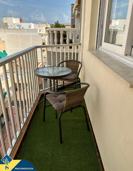 3-jų kambarių penthouse apartamentas su terasa, Ispanijoje, Alicante provincijoje, Torrevieja mieste, Playa del Cura rajone, bendras plotas 60 m², 300 metrų iki jūros, 45 kilometrai iki Alicante oro uosto. Turtui priklauso terasa, liftas. Netoli turto yra parduotuvės, restoranai, autobusų stotelės, degalinės, žalios zonos, kavinės, vaistinės