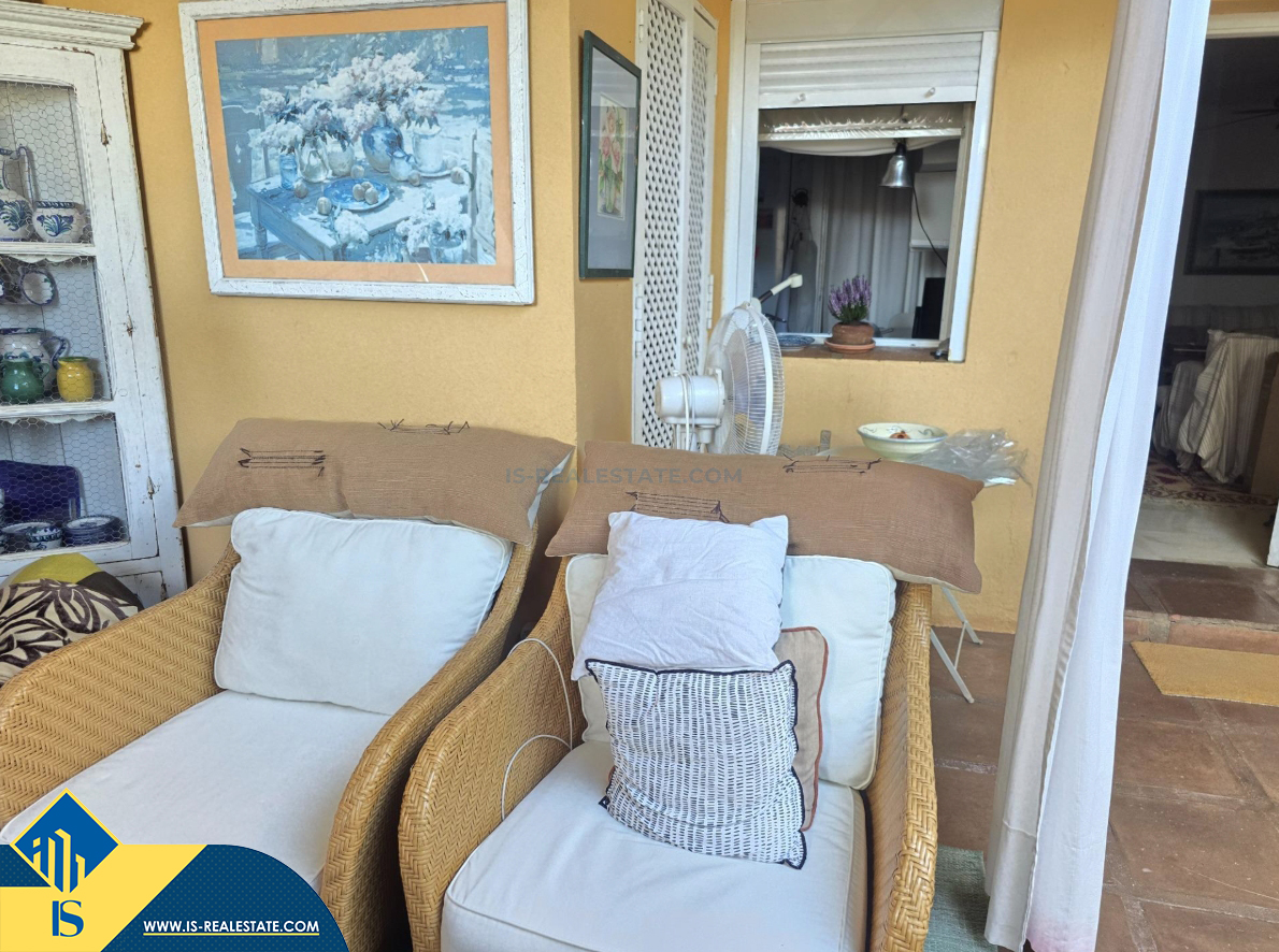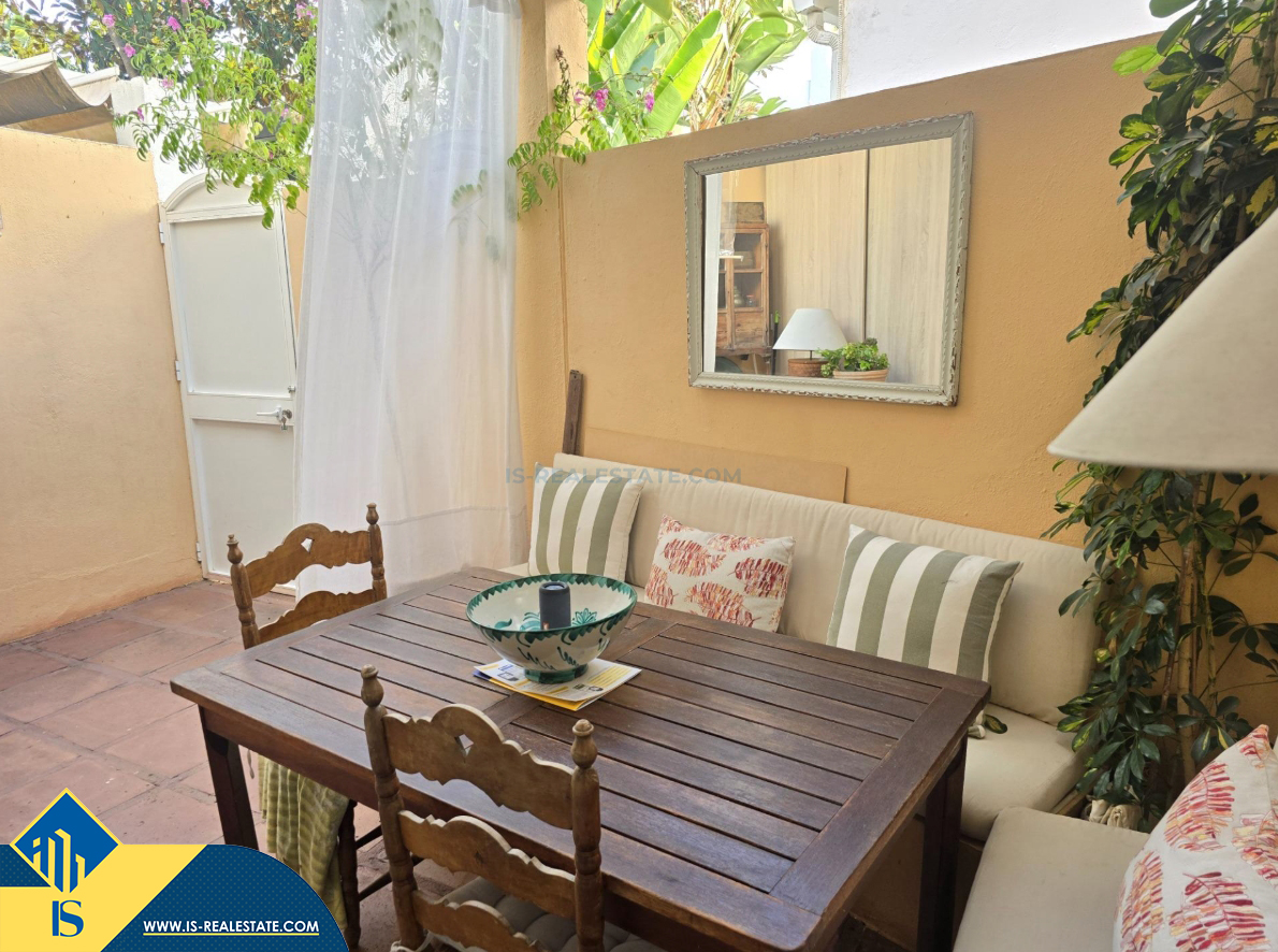 4-ių kambarių namas su bendru baseinu, Ispanijoje, Malaga provincijoje, Marbella mieste, Nueva Andalucia rajone, bendras plotas 177 m², 1.5 kilometro iki jūros, 57 kilometrai iki Malaga oro uosto. Turtui priklauso bendras baseinas, terasa, soliariumas, sandėliukas, privatus kiemas. Netoli turto yra parduotuvės, restoranai, autobusų stotelės, vaikų zonos, degalinės, žalios zonos, kavinės, vaistinės, ligoninė