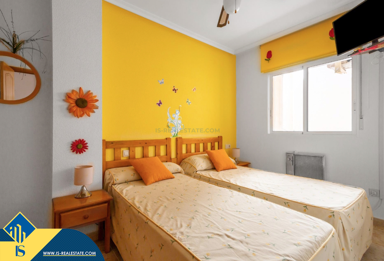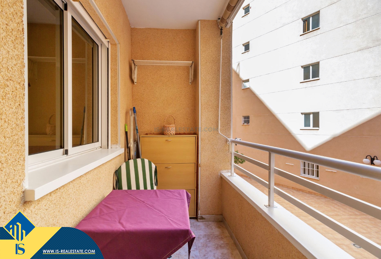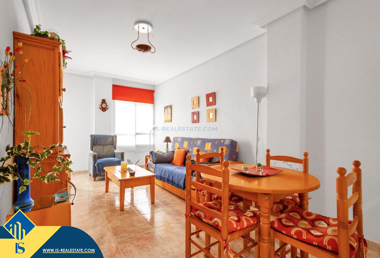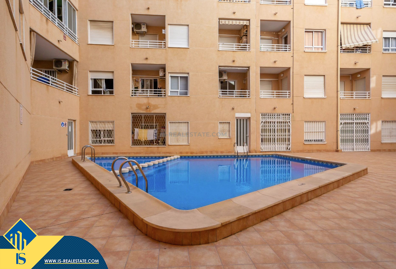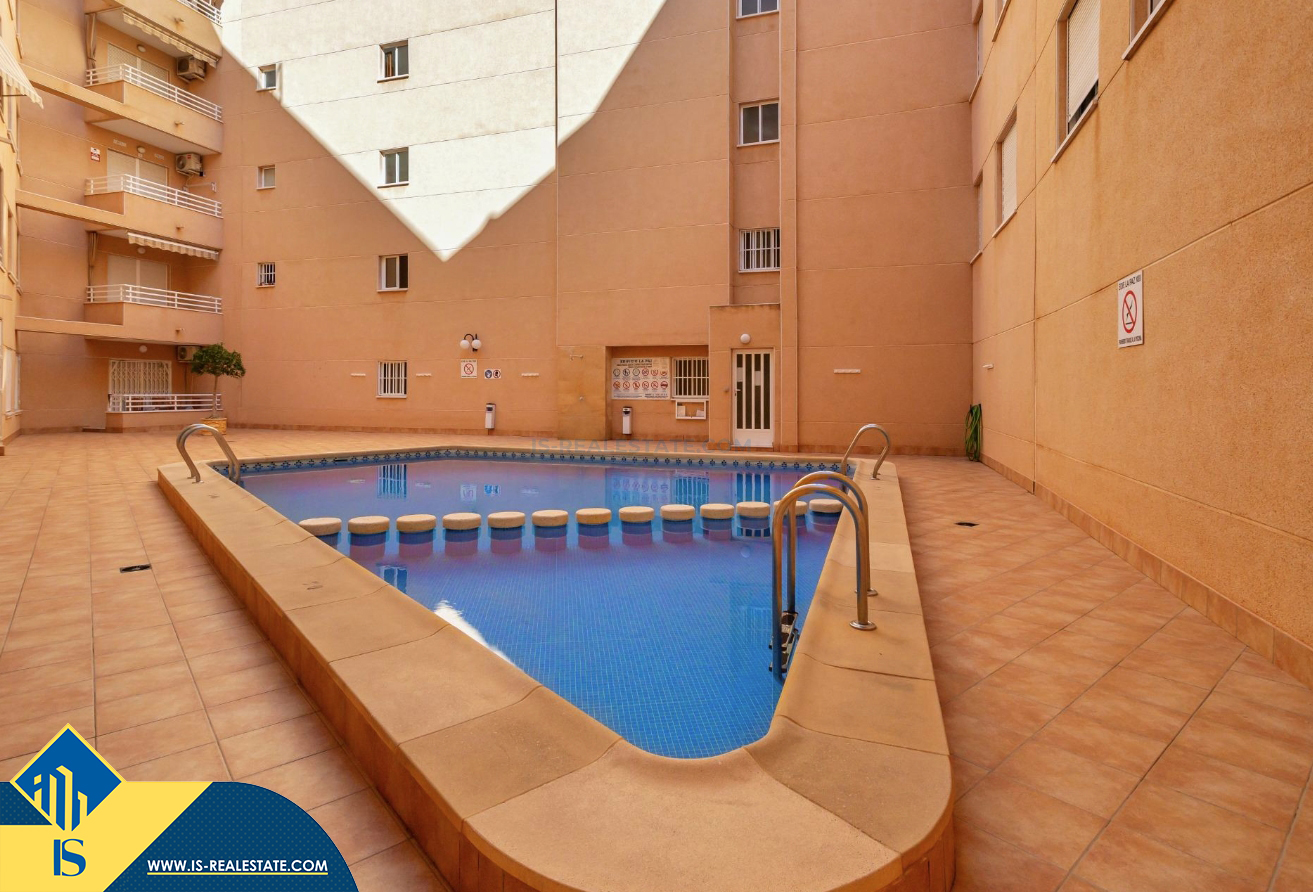 2-jų kambarių apartamentas su bendru baseinu, Ispanijoje, Alicante provincijoje, Torrevieja mieste, bendras plotas 49 m², 1 kilometras iki jūros, 45 kilometrai iki Alicante oro uosto. Turtui priklauso bendras baseinas, terasa, liftas. Netoli turto yra parduotuvės, restoranai, vaistinės, autobusų stotelės, degalinės, žalios zonos, kavinės