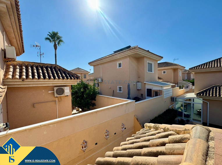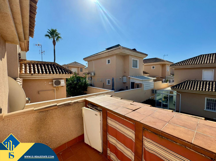4-ių kambarių namas su bendru baseinu, Ispanijoje, Alicante provincijoje, Torrevieja mieste, Los Balcones rajone, bendras plotas 97 m², 1 kilometras iki jūros, 45 kilometrai iki Alicante oro uosto. Turtui priklauso bendras baseinas, terasa, soliariumas. Netoli turto yra parduotuvės, restoranai, autobusų stotelės, vaikų zonos, degalinės, žalios zonos, kavinės