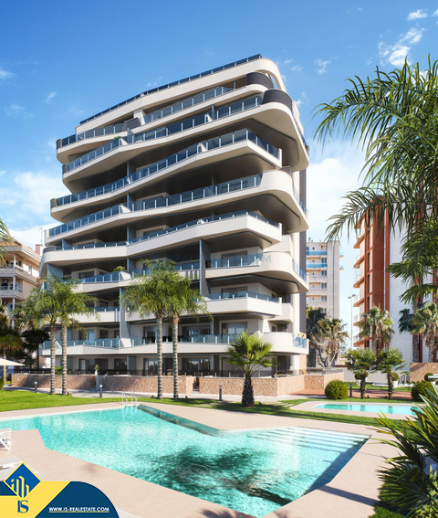 3-jų kambarių apartamentas, Ispanijoje, Alicante provincija, Guardamar del Segura mieste, bendras plotas 80 m², 1 kilometras iki jūros. Turtui priklauso terasa, liftas, vieta automobiliui, bendras baseinas. 30 kilometrų iki Alicante oro uosto. Netoli turto yra parduotuvės, restoranai, autobusų stotelės, degalinės, žalios zonos, kavinės, vaistinės.