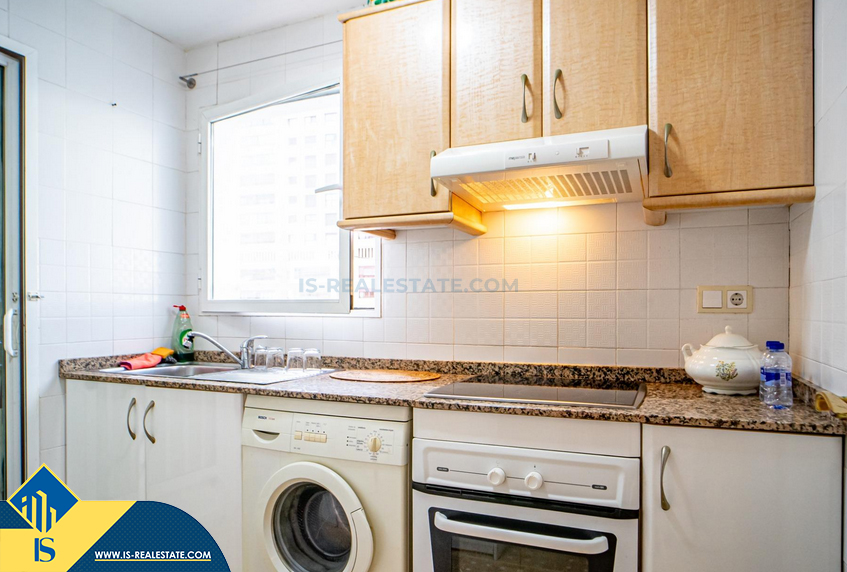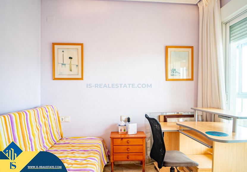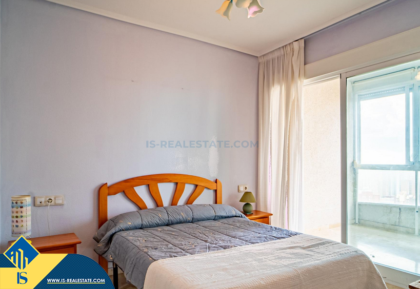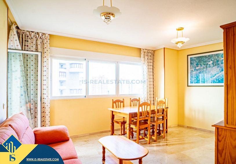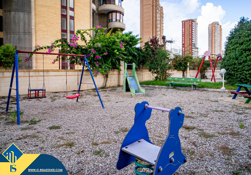 4-ių kambarių apartamentas su bendru baseinu, Ispanijoje, Alicante provincijoje, Benidorm mieste, bendras plotas 87 m², 1 kilometras iki jūros, 55 kilometrai iki Alicante oro uosto. Turtui priklauso bendras baseinas, terasa, liftas, vieta automobiliui. Netoli turto yra parduotuvės, restoranai, autobusų stotelės, vaikų zonos, degalinės, žalios zonos, kavinės