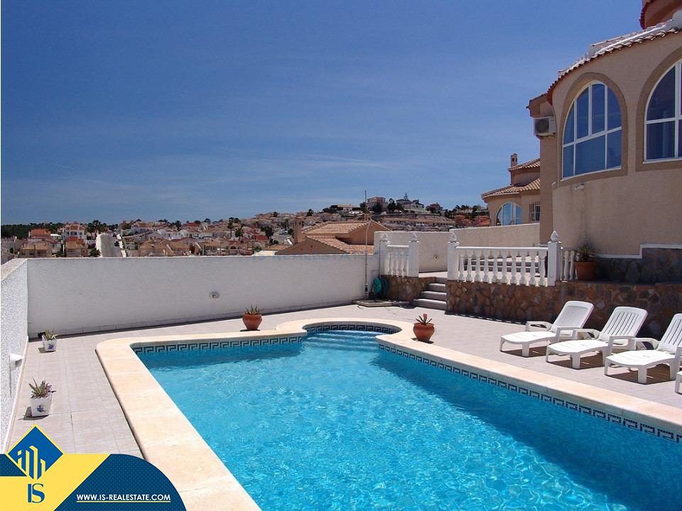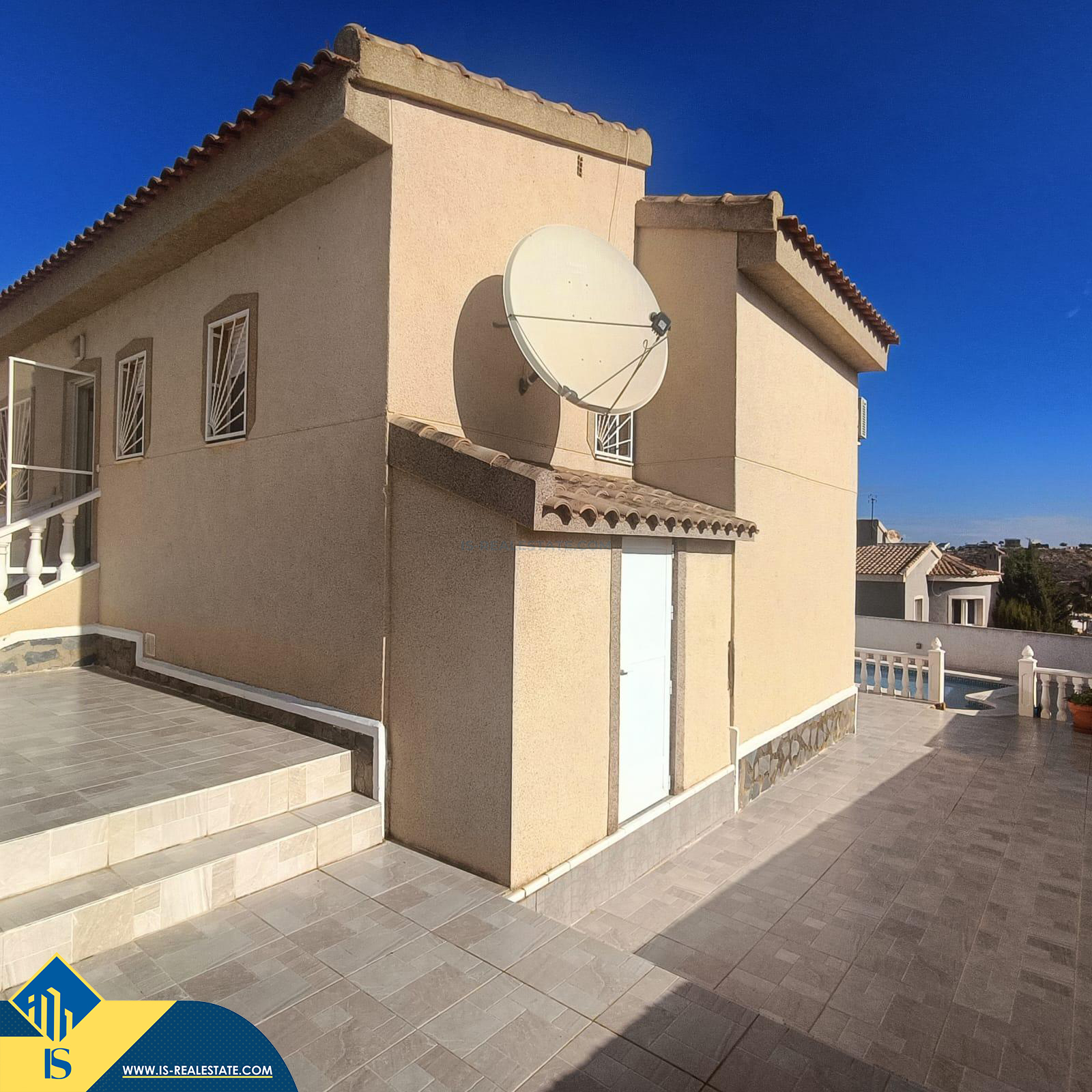 3-jų kambarių vila su privačiu baseinu, Ispanijoje, Alicante provincijoje, Rojales, Ciudad Quesada mieste, bendras plotas 146 m², 5 kilometrai iki jūros, 44 kilometrai iki Alicante miesto oro uosto. Turtui priklauso privatus baseinas, terasa, kiemas, vieta automobiliui. Netoli turto yra parduotuvės, restoranai, autobusų stotelės, vaikų zonos, degalinės, žalios zonos, kavinės, vaistinės