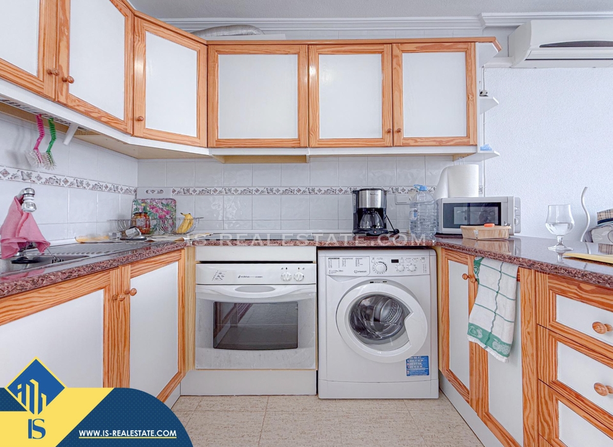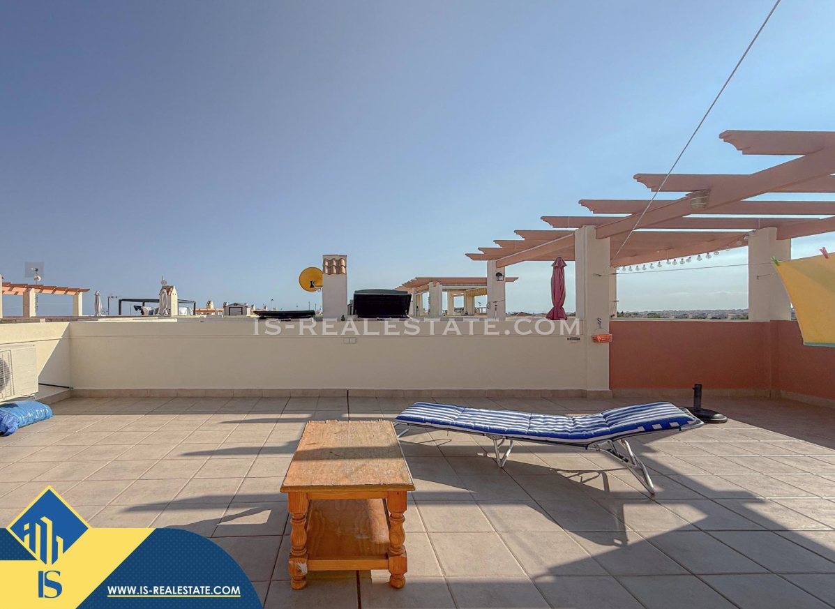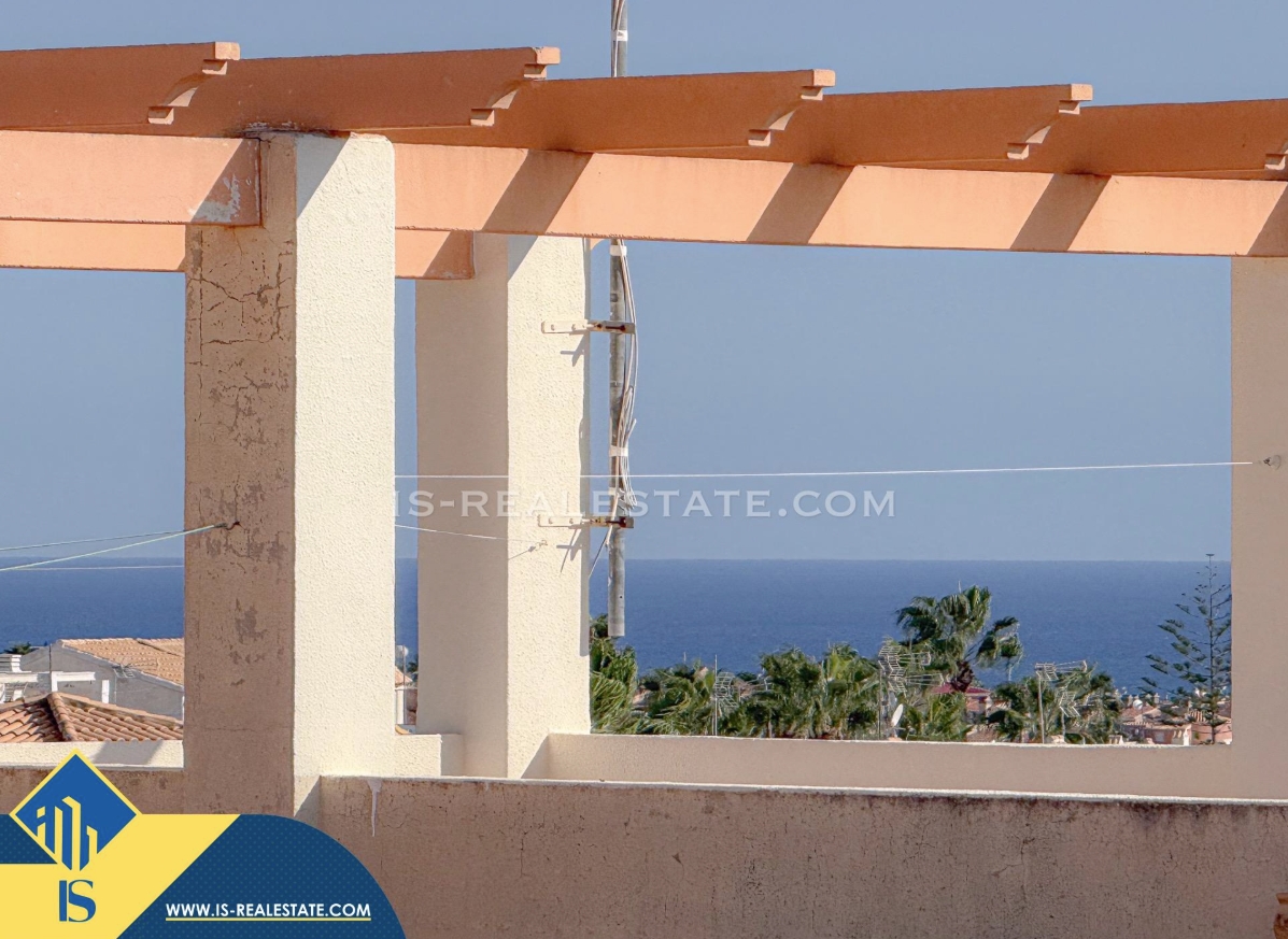 3-jų kambarių renovuotas bungalas su terasa, Ispanijoje, Alicante provincijoje, Torrevieja mieste, Los Balcones rajone, bendras plotas 57 m², 3 kilometrai iki jūros, 45 kilometrai iki Alicante oro uosto. Turtui priklauso terasa, soliariumas, garažas. Netoli turto yra parduotuvės, restoranai, autobusų stotelės, vaikų zonos, degalinės, žalios zonos, kavinės