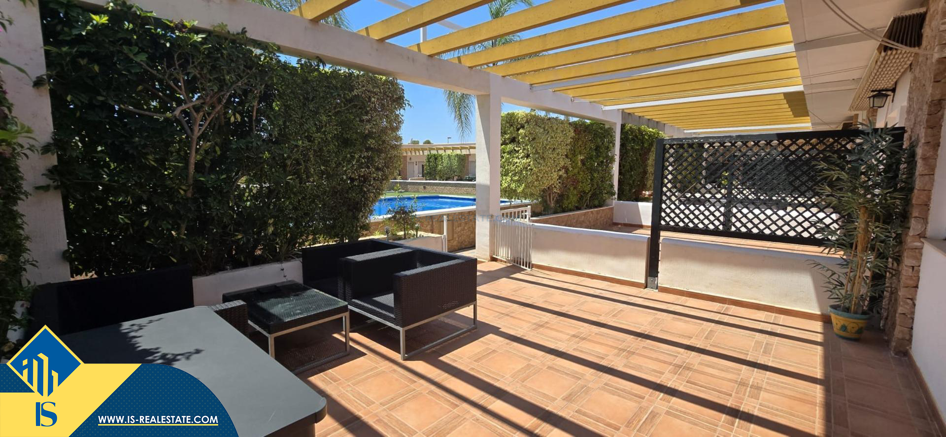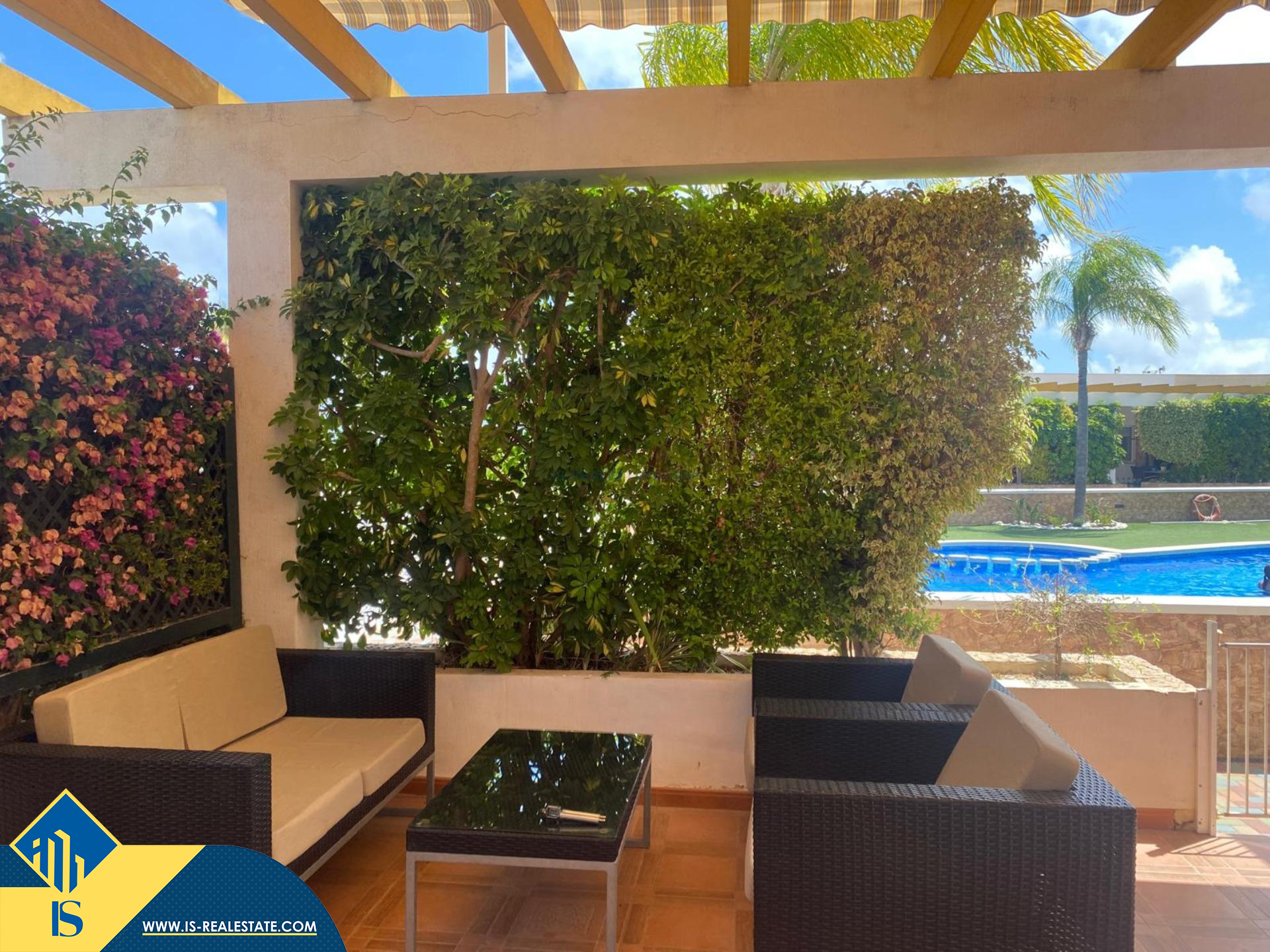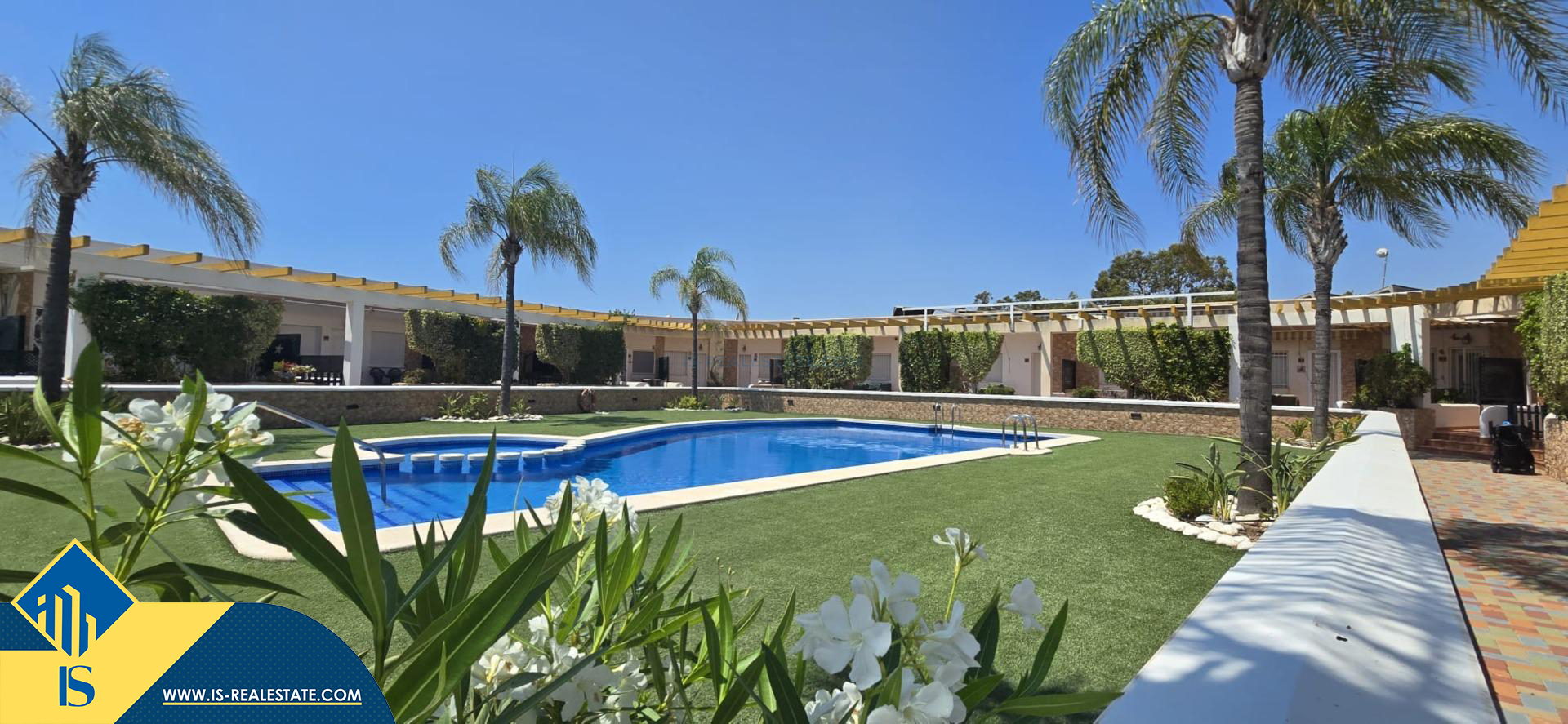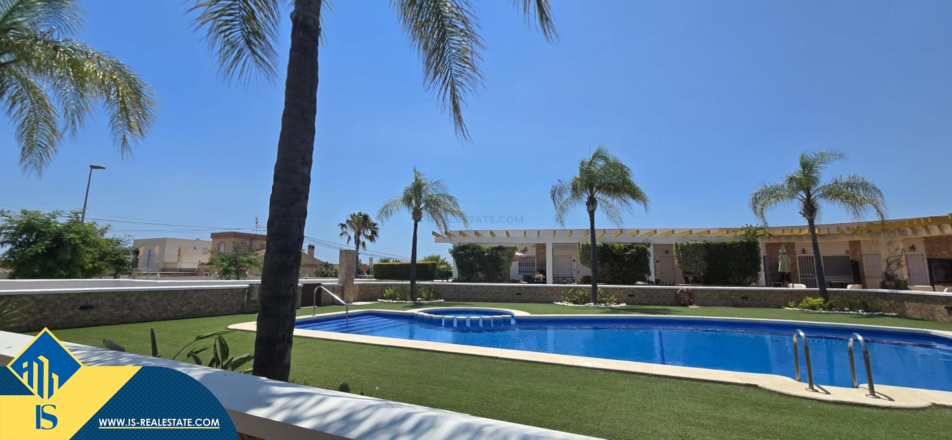 3-jų kambarių namas su bendru baseinu, Ispanijoje, Alicante provincijoje, Orihuela Costa mieste, bendras plotas 54 m², 800 metrų iki jūros, 57 kilometrai iki Alicante oro uosto. Turtui priklauso bendras baseinas, terasa, sandėliukas, vieta automobiliui. Netoli turto yra parduotuvės, restoranai, autobusų stotelės, vaikų zonos, degalinės, žalios zonos, kavinės, ligoninė
