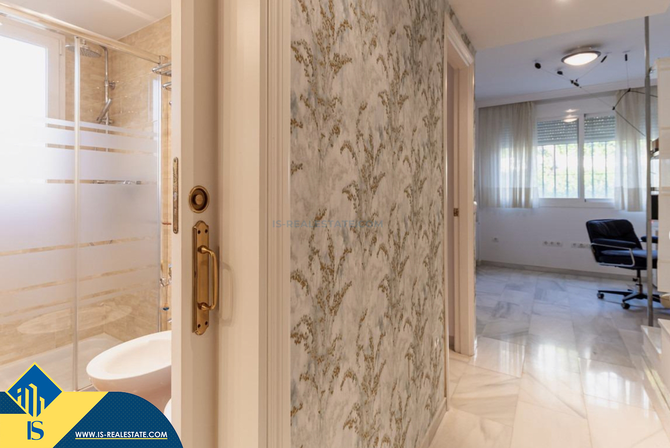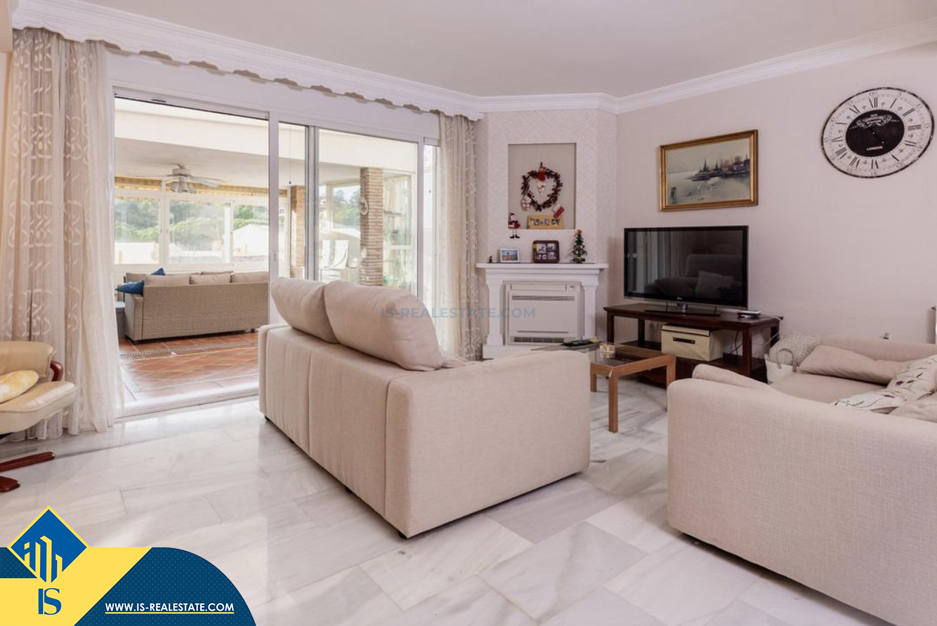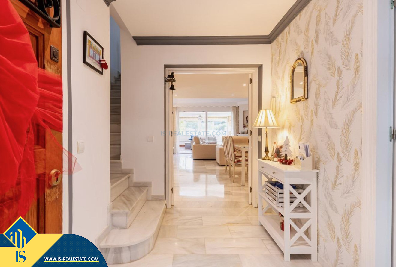4-ių kambarių renovuotas namas su bendru baseinu, Ispanijoje, Malaga provincijoje, Marbella mieste, bendras plotas 193 m², 1 kilometras iki jūros, 57 kilometrai iki Malaga oro uosto. Turtui priklauso bendras baseinas, terasa, soliariumas, vieta automobiliui. Netoli turto yra parduotuvės, restoranai, autobusų stotelės, vaikų zonos, degalinės, žalios zonos, kavinės, vaistinės, ligoninė