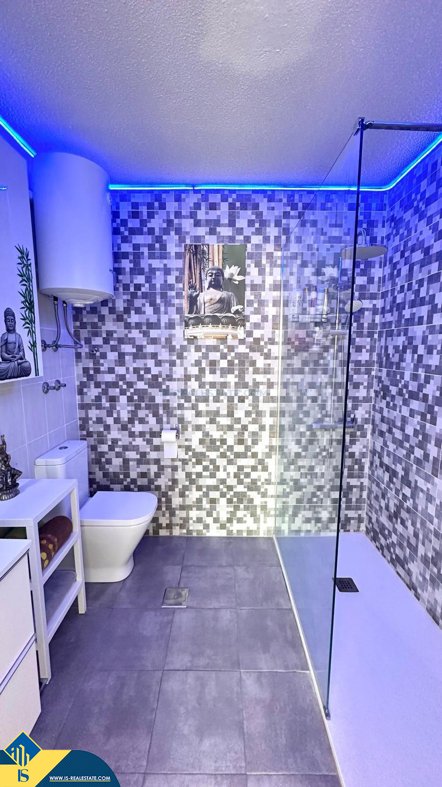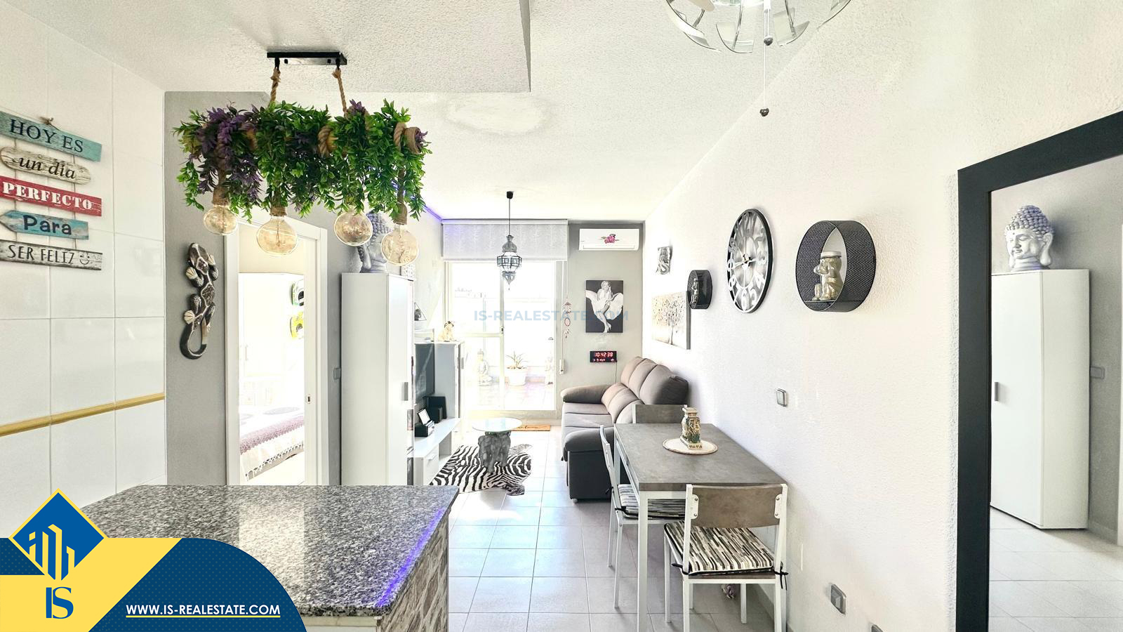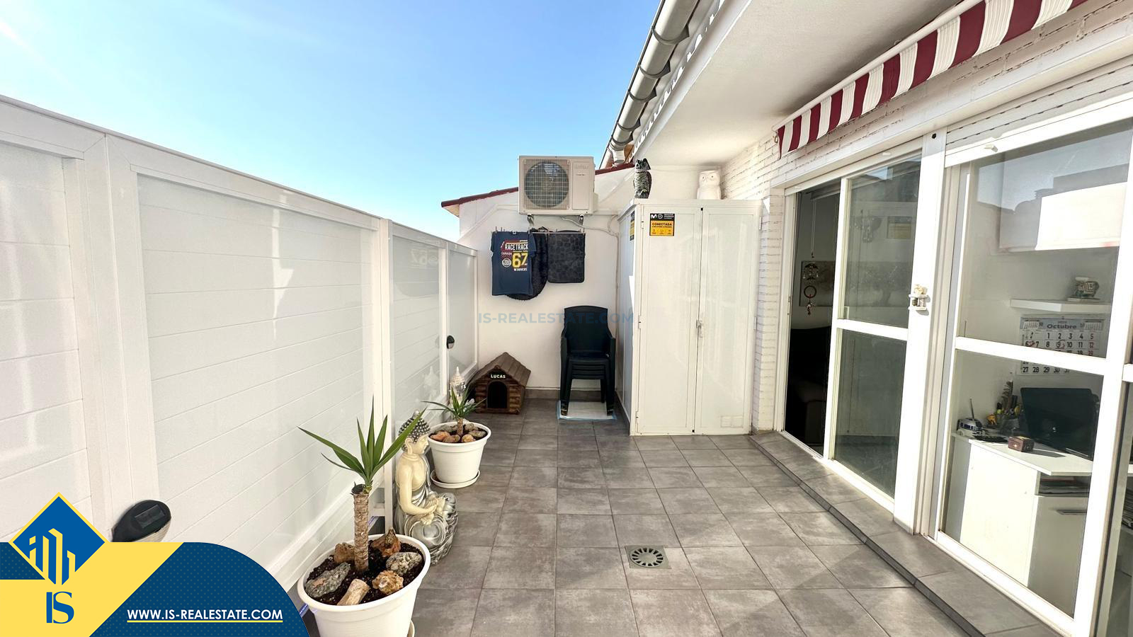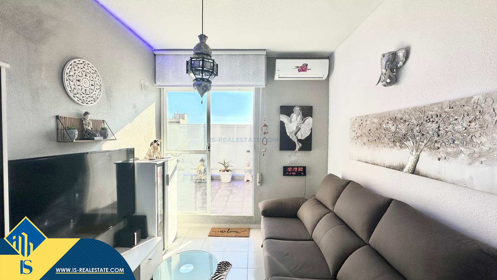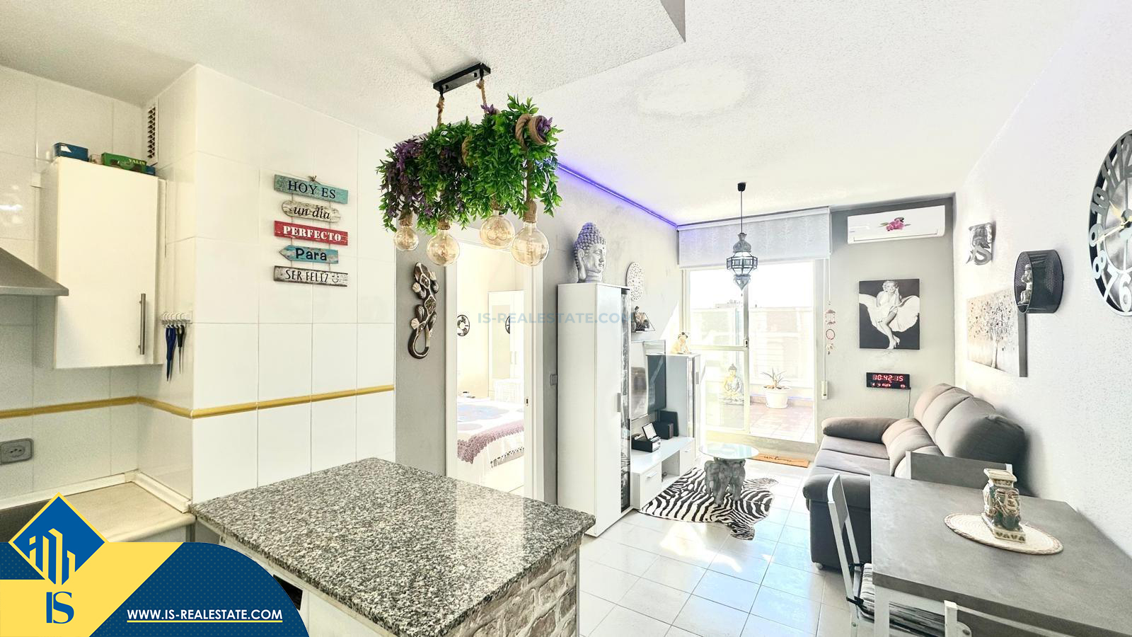 2-jų kambarių renovuotas penthouse apartamentas su terasa, Ispanijoje, Alicante provincijoje, Torrevieja mieste, Playa del Cura rajone, bendras plotas 51 m², 750 metrų iki jūros, 45 kilometrai iki Alicante oro uosto. Turtui priklauso terasa, liftas. Netoli turto yra parduotuvės, restoranai, autobusų stotelės, degalinės, žalios zonos, kavinės, vaistinės
