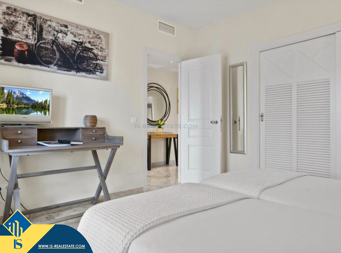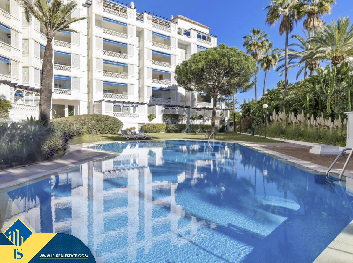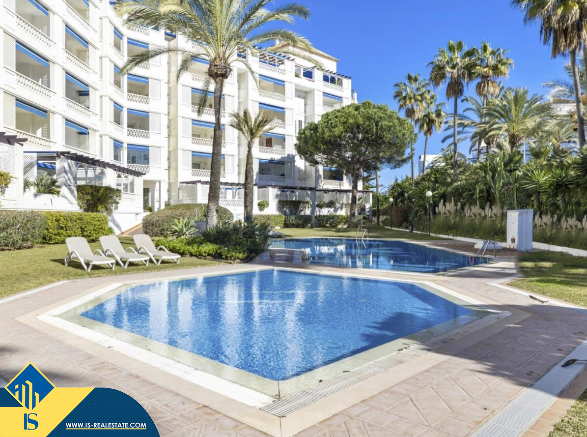 3-jų kambarių apartamentas su bendru baseinu, Ispanijoje, Malaga provincijoje, Marbella mieste, Puerto Banús rajone, bendras plotas 128 m², 300 metrų iki jūros, 57 kilometrai iki Malaga oro uosto. Turtui priklauso bendras baseinas, terasa, liftas, garažas. Netoli turto yra parduotuvės, restoranai, autobusų stotelės, vaikų zonos, degalinės, žalios zonos, kavinės, vaistinės, ligoninė