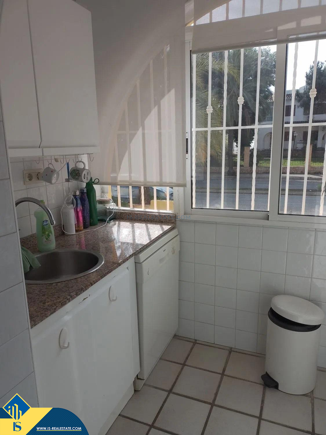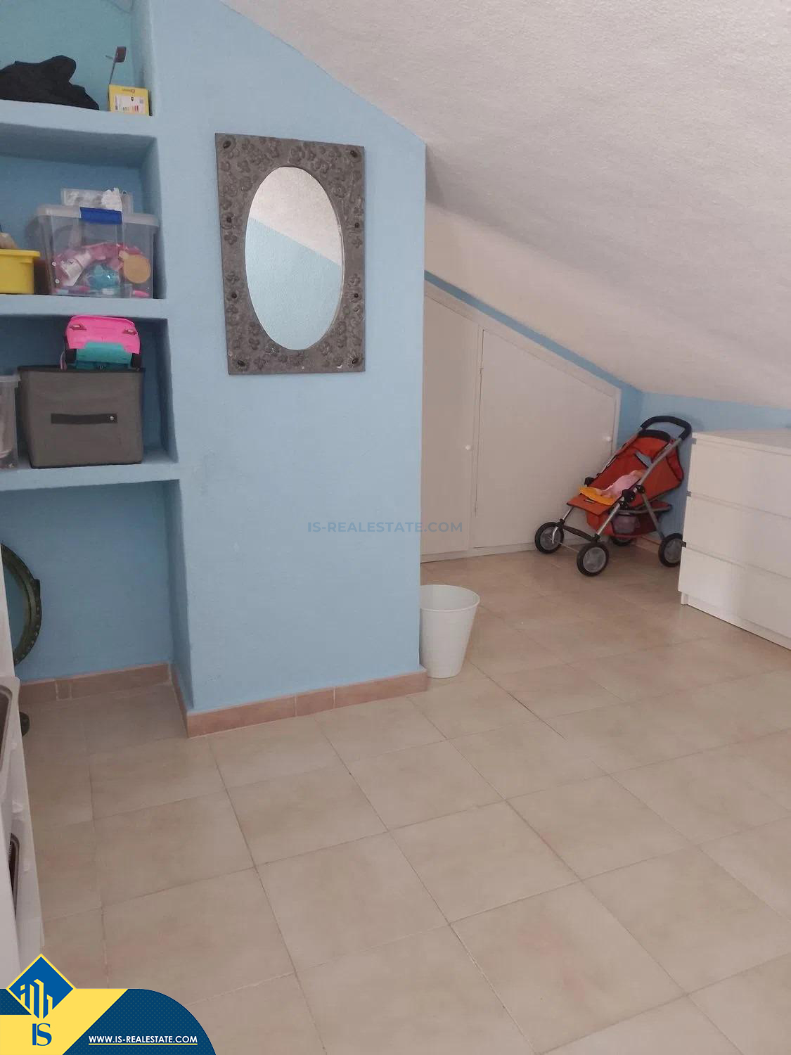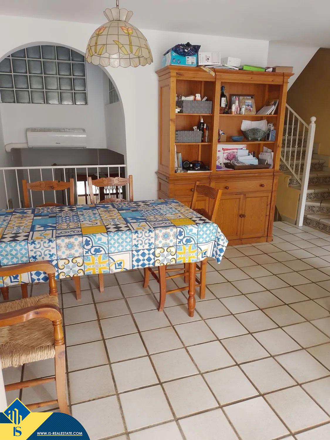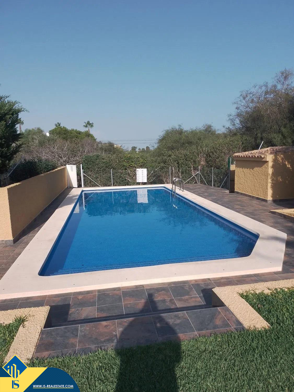 4-ių kambarių namas su bendru baseinu, Ispanijoje, Alicante provincijoje, Orihuela Costa mieste, bendras plotas 162 m², 1 kilometras iki jūros, 57 kilometrai iki Alicante oro uosto. Turtui priklauso bendras baseinas, terasa, vieta automobiliui. Netoli turto yra parduotuvės, restoranai, autobusų stotelės, vaikų zonos, degalinės, žalios zonos, kavinės, ligoninė