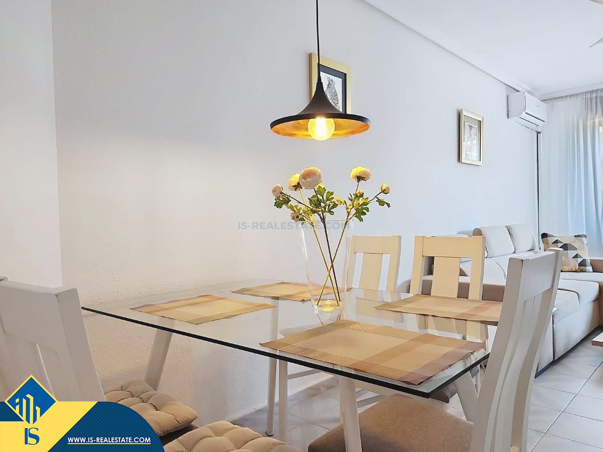4-ių kambarių renovuotas apartamentas su terasa, Ispanijoje, Alicante provincijoje, Orihuela Costa mieste, bendras plotas 137 m², 4 kilometrai iki jūros, 82 kilometrai iki Alicante oro uosto. Turtui priklauso terasa, garažas. Netoli turto yra parduotuvės, restoranai, autobusų stotelės, vaikų zonos, degalinės, žalios zonos, kavinės, ligoninė