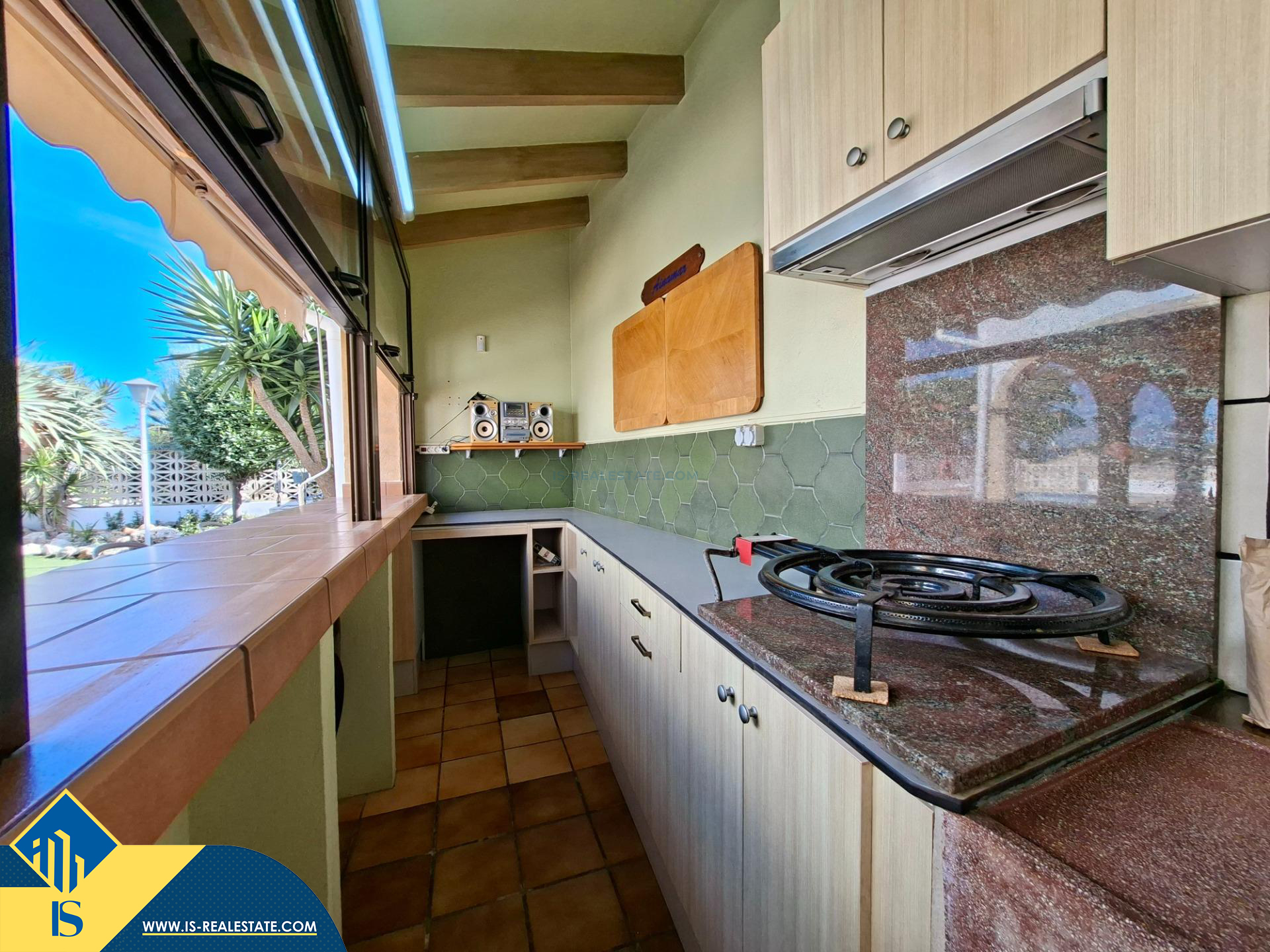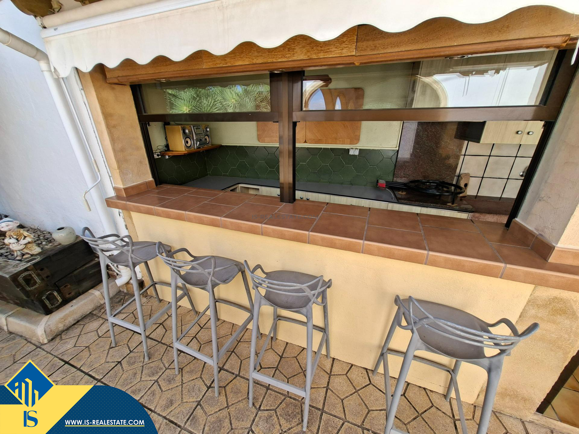 4-ių kambarių vila su privačiu baseinu, Ispanijoje, Alicante provincija, Calpe mieste, bendras plotas 250 m², 1 kilometras iki jūros, 45 kilometrai iki Alicante miesto oro uosto. Turtui priklauso terasa, privatus baseinas, vieta automobiliui. Netoli turto yra parduotuvės, restoranai, vaistinės, autobusų stotelės, degalinės, žalios zonos, kavinės
