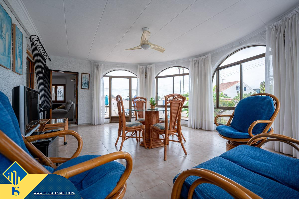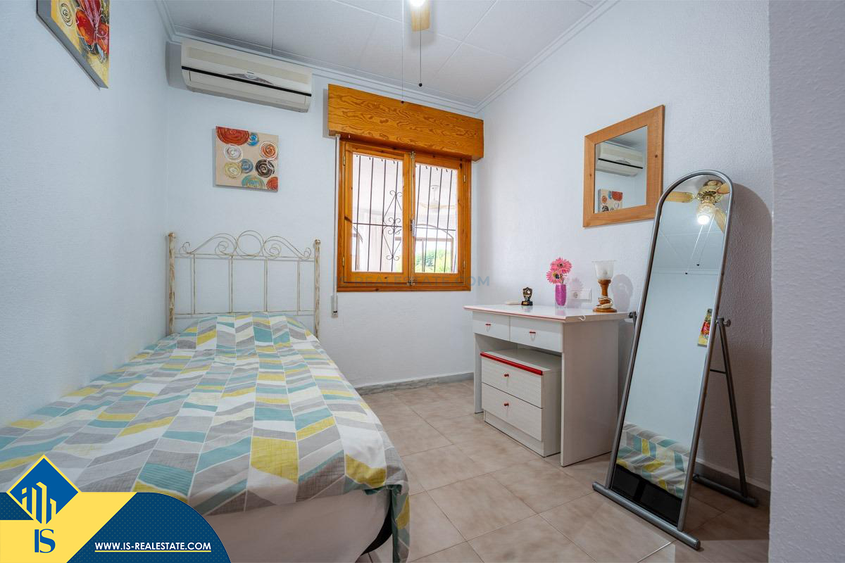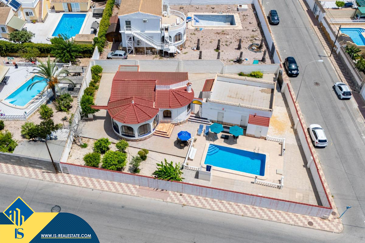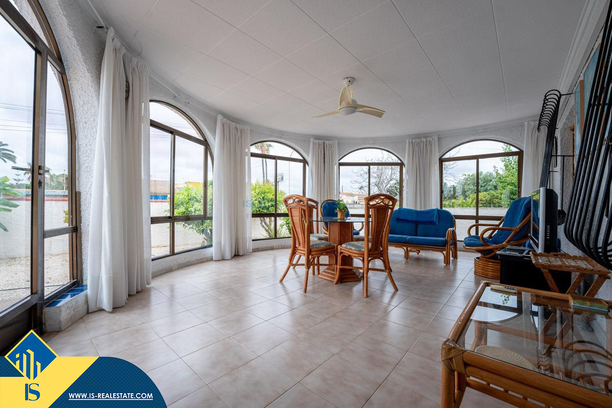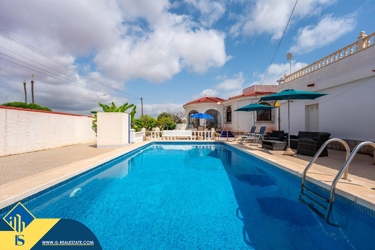 4-ių kambarių vila su privačiu baseinu, Ispanijoje, Alicante provincijoje, Torrevieja mieste, El Chaparral rajone, bendras plotas 85 m², 4 kilometrai iki paplūdimio, 45 kilometrai iki Alicante miesto oro uosto. Turtui priklauso kiemas, privatus baseinas, terasa, vieta automobiliui. Netoli turto yra parduotuvės, restoranai, autobusų stotelės, vaikų zonos, degalinės, žalios zonos, kavinės, vaistinės