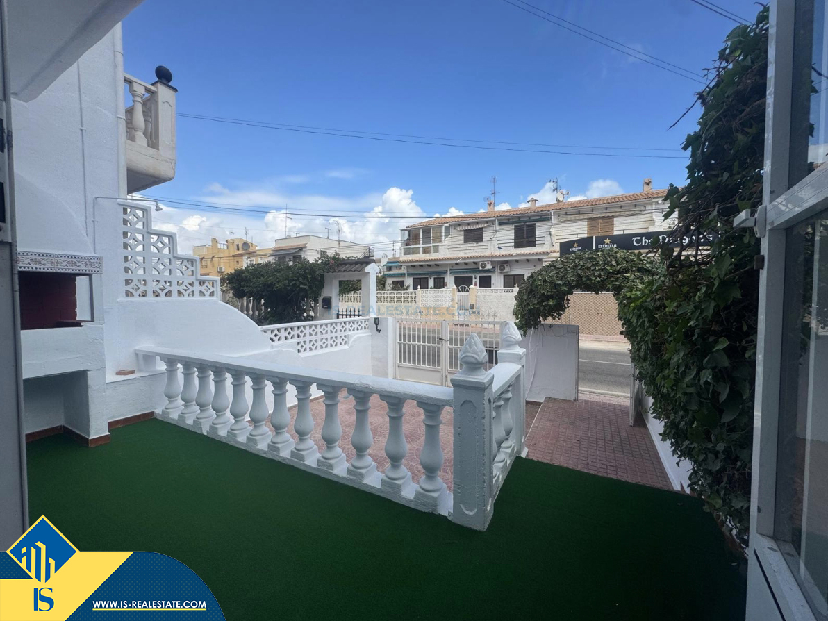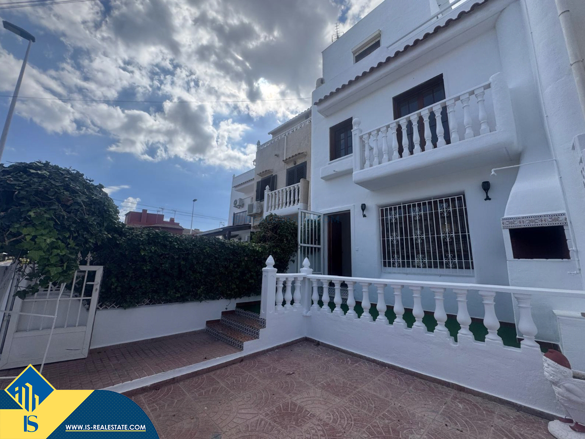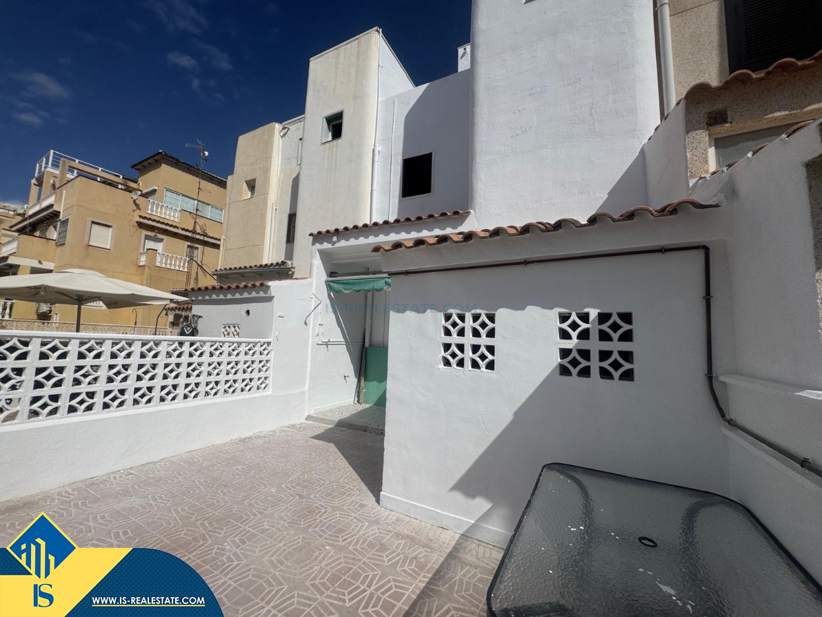 4-ių kambarių renovuotas namas su terasa, Ispanijoje, Alicante provincijoje, Torrevieja mieste, bendras plotas 93 m², 800 metrų iki jūros, 45 kilometrai iki Alicante oro uosto. Turtui priklauso terasa, sandėliukas, privatus kiemas. Netoli turto yra parduotuvės, restoranai, autobusų stotelės, vaikų zonos, degalinės, žalios zonos, kavinės, vaistinės