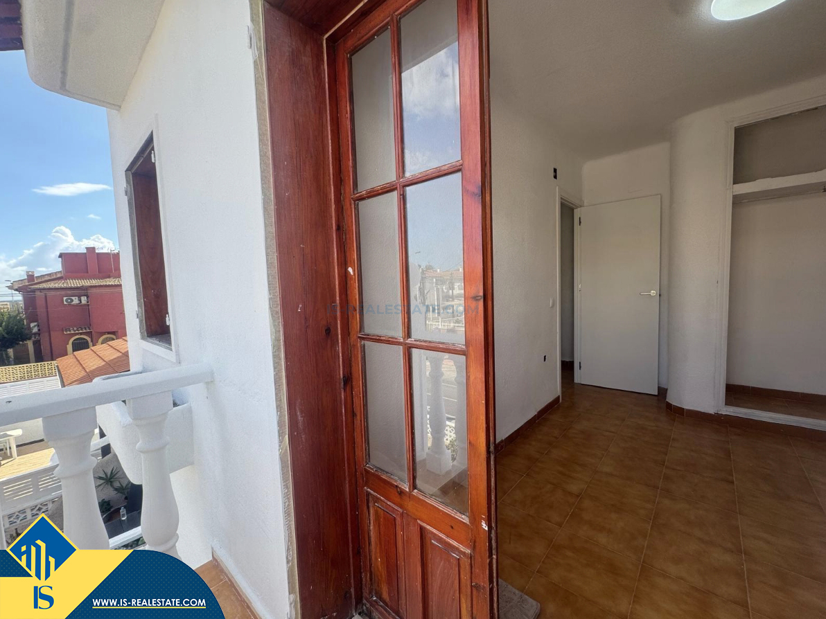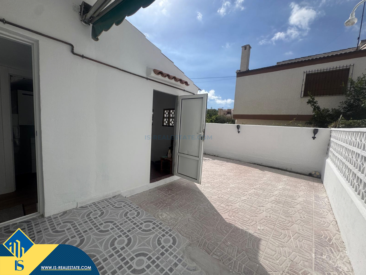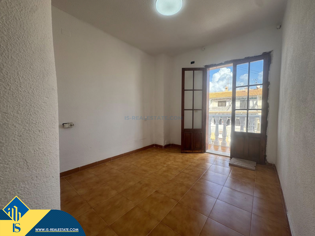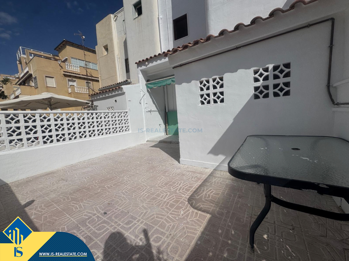 4-ių kambarių renovuotas namas su terasa, Ispanijoje, Alicante provincijoje, Torrevieja mieste, bendras plotas 93 m², 800 metrų iki jūros, 45 kilometrai iki Alicante oro uosto. Turtui priklauso terasa, sandėliukas, privatus kiemas. Netoli turto yra parduotuvės, restoranai, autobusų stotelės, vaikų zonos, degalinės, žalios zonos, kavinės, vaistinės