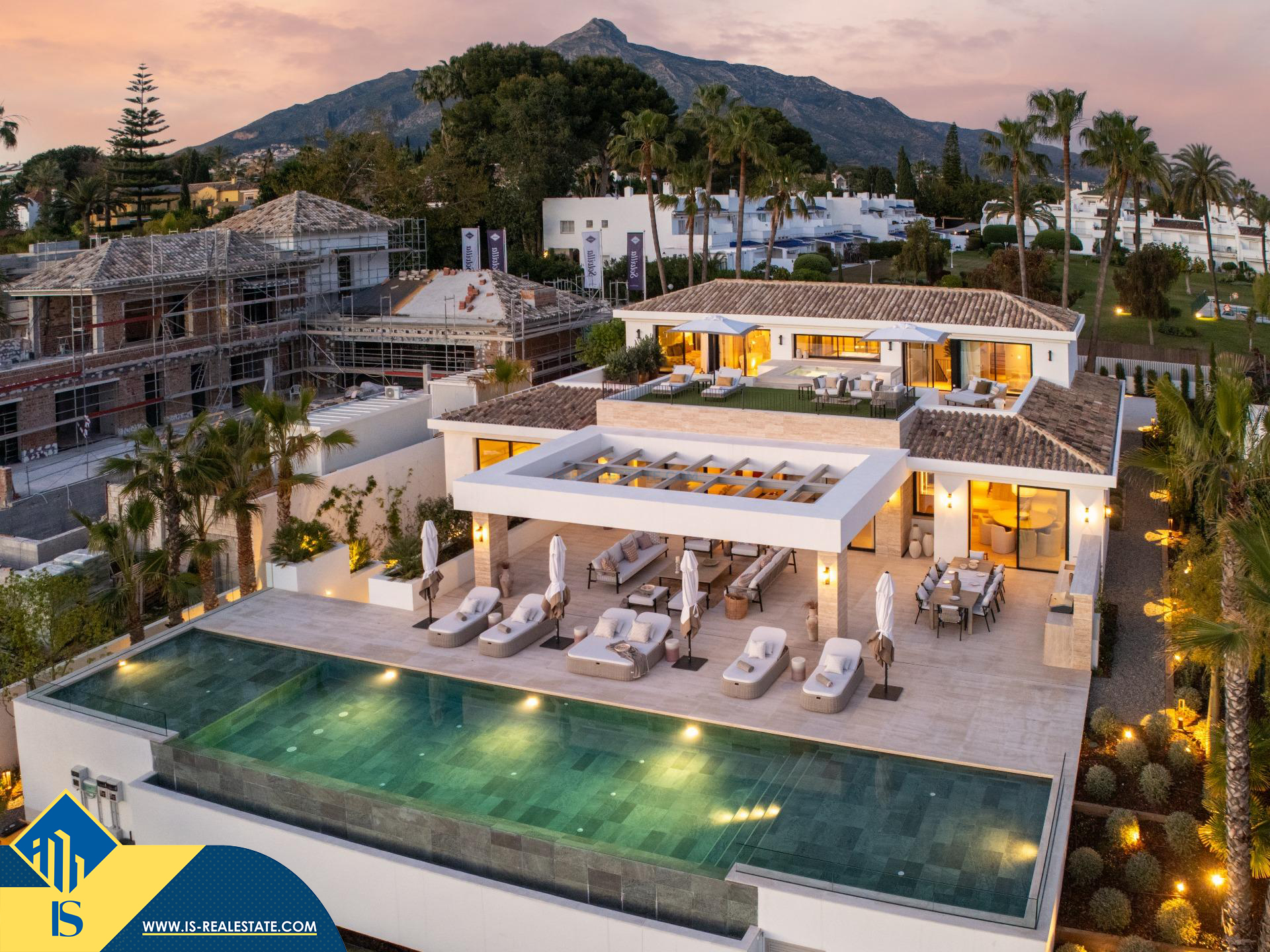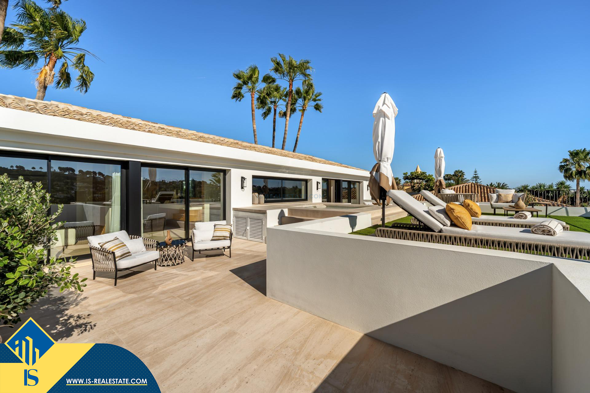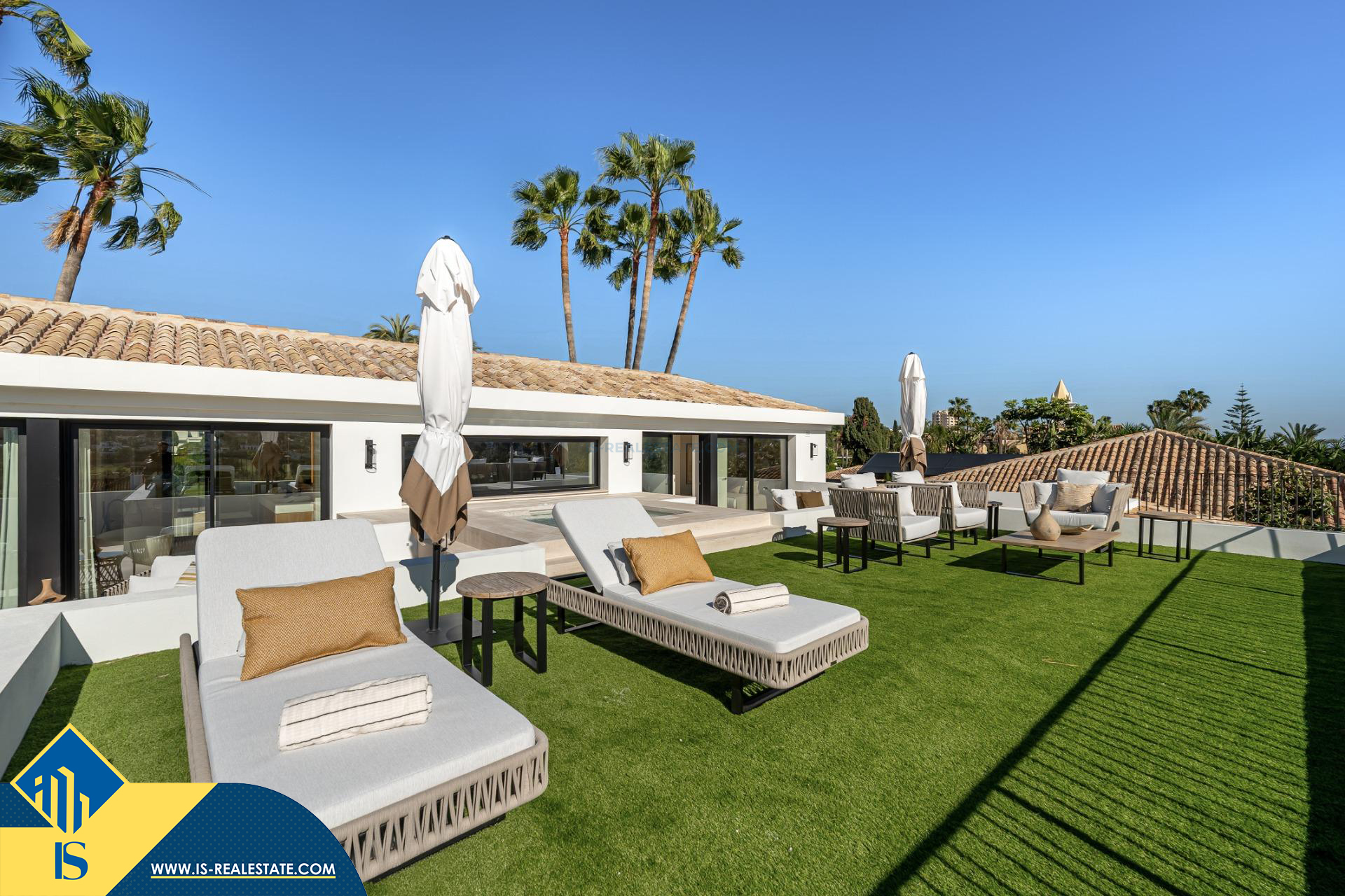 7-ių kambarių renovuota vila su privačiu baseinu, Ispanijoje, Malaga provincijoje, Marbella mieste, Puerto Banús rajone, bendras plotas 840 m², 3 kilometrai iki jūros, 57 kilometrai iki Malaga oro uosto. Turtui priklauso privatus baseinas, terasa, vieta automobiliui. Netoli turto yra parduotuvės, restoranai, autobusų stotelės, vaikų zonos, degalinės, žalios zonos, kavinės, vaistinės, ligoninė