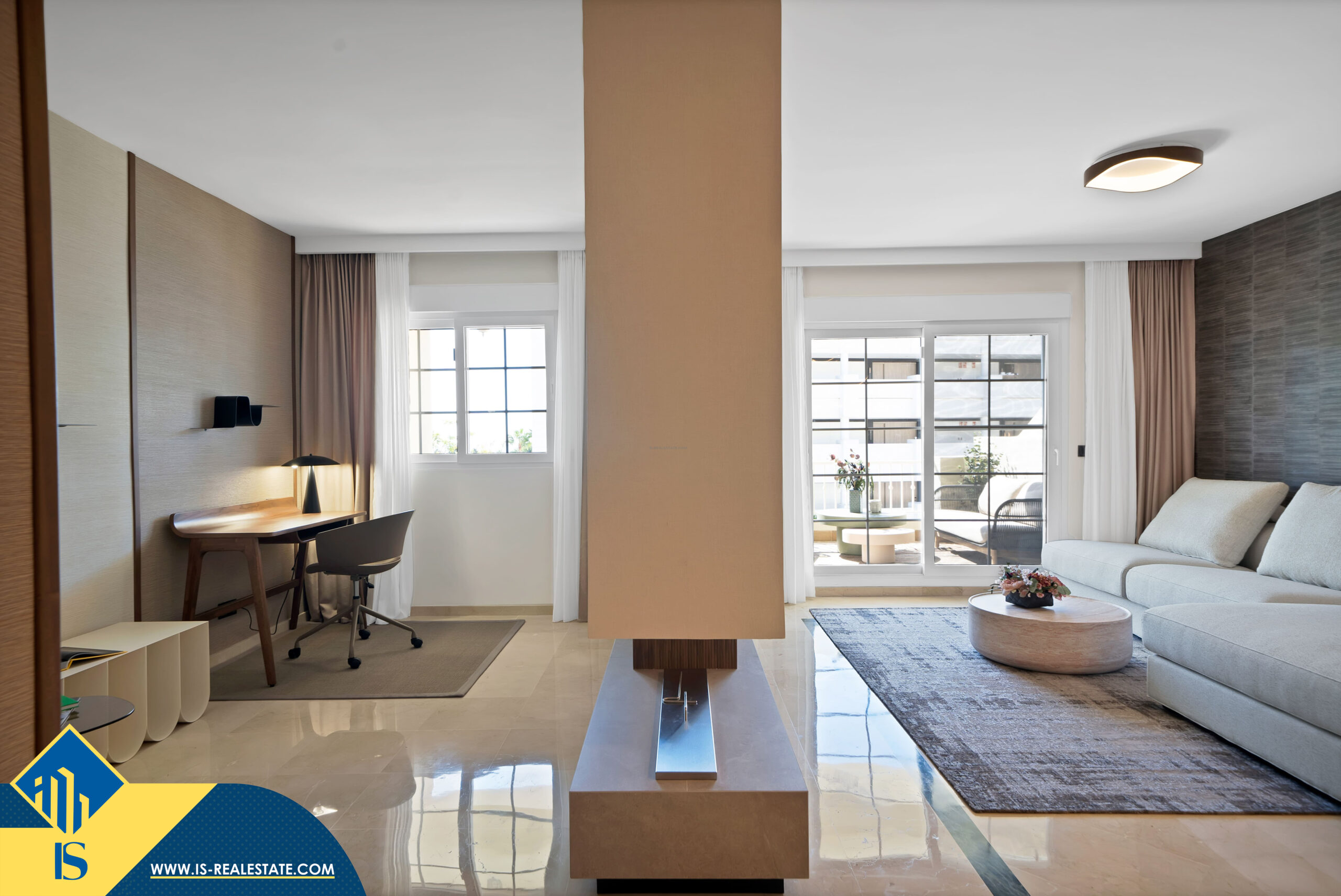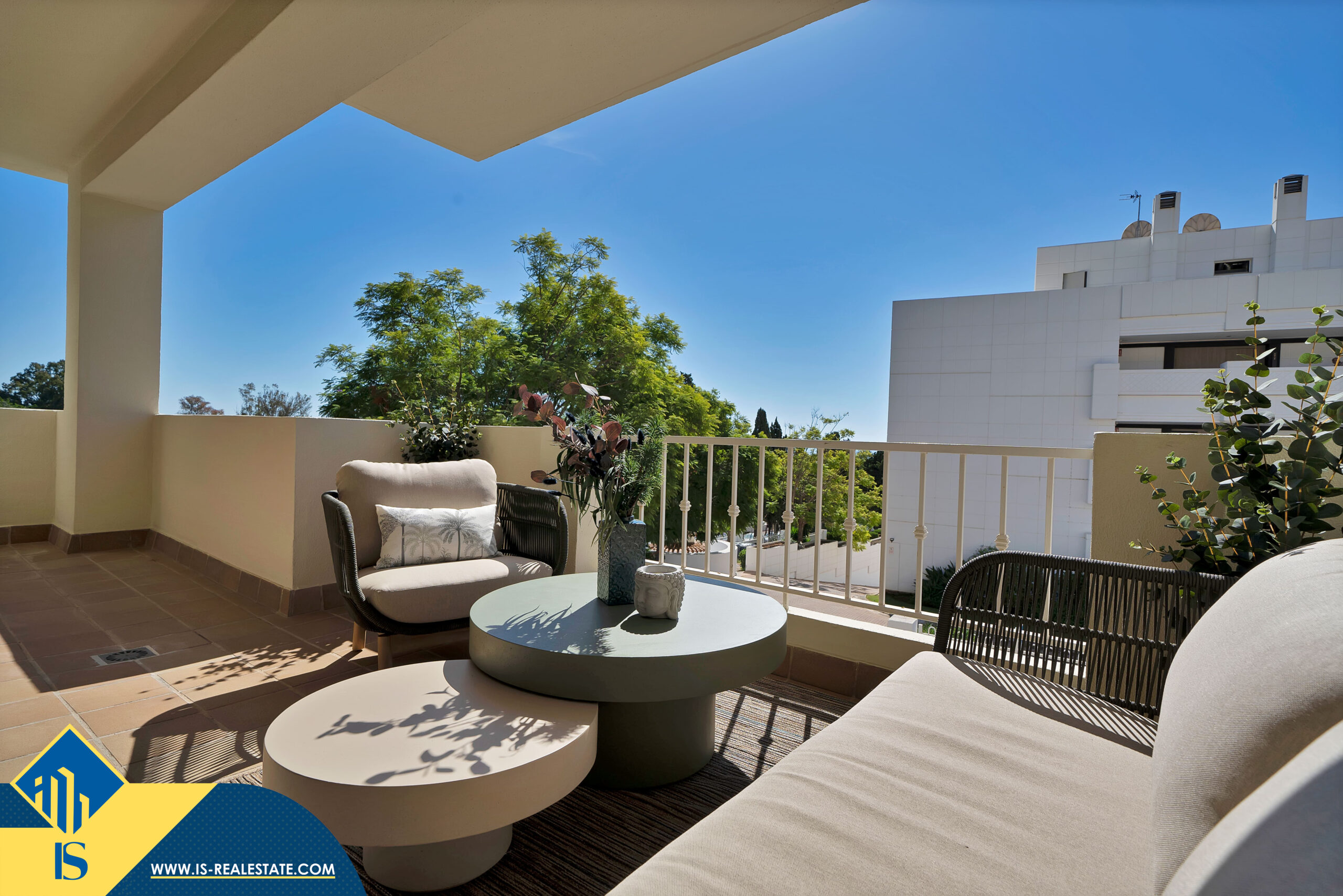 3-jų kambarių renovuotas apartamentas su bendru baseinu, Ispanijoje, Malaga provincijoje, Marbella mieste, Nueva Andalucia rajone, bendras plotas 120 m², 2 kilometrai iki jūros, 57 kilometrai iki Malaga oro uosto. Turtui priklauso bendras baseinas, terasa, sandėliukas. Netoli turto yra parduotuvės, restoranai, autobusų stotelės, vaikų zonos, degalinės, žalios zonos, kavinės, vaistinės, ligoninė