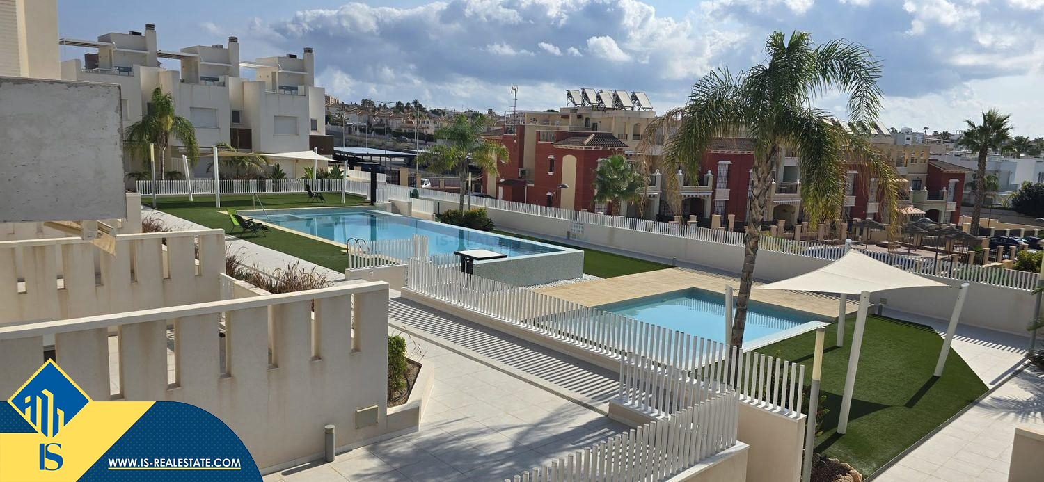 3-jų kambarių namas su bendru baseinu, Ispanijoje, Alicante provincijoje, Torrevieja mieste, La Mata rajone, bendras plotas 88 m², 250 metrų iki jūros, 38 kilometrai iki Alicante oro uosto. Turtui priklauso bendras baseinas, terasa. Netoli turto yra parduotuvės, restoranai, autobusų stotelės, vaikų zonos, degalinės, žalios zonos, kavinės