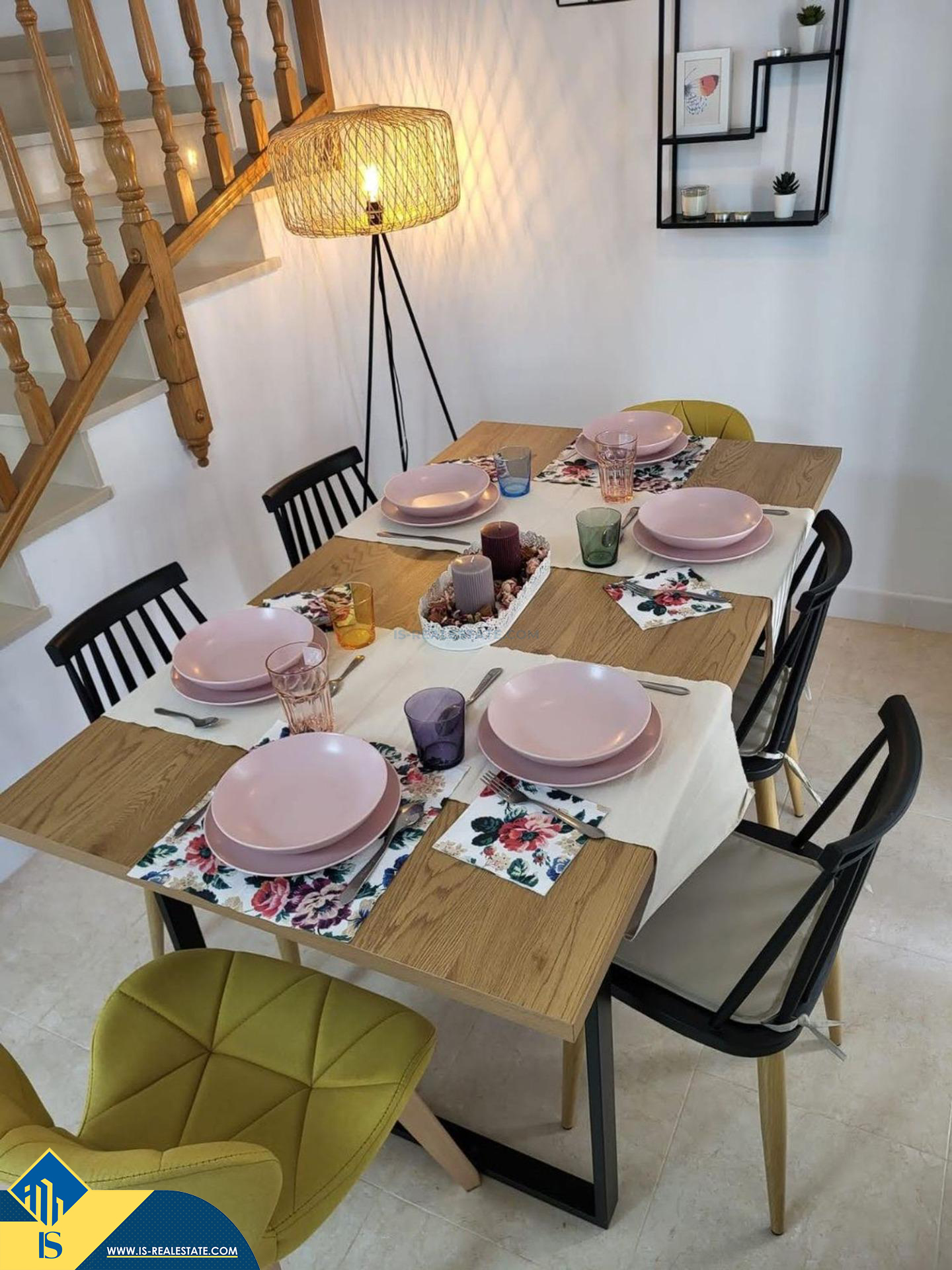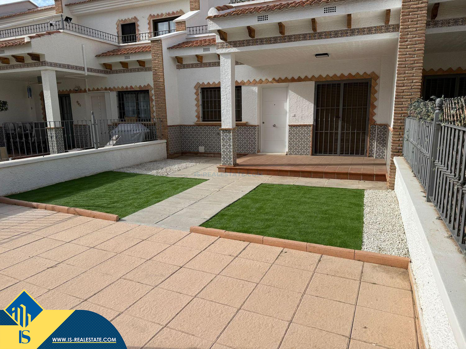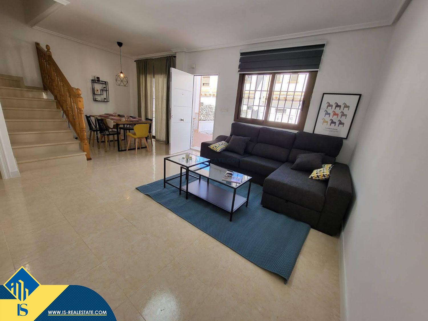 4-ių kambarių namas su bendru baseinu, Ispanijoje, Alicante provincijoje, San Miguel de Salinas mieste, bendras plotas 150 m², 6.5 kilometrai iki jūros, 45 kilometrai iki Alicante miesto oro uosto. Turtui priklauso terasa, bendras baseinas, vieta automobiliui. Netoli turto yra parduotuvės, restoranai, vaistinės, autobusų stotelės, degalinės, žalios zonos, kavinės