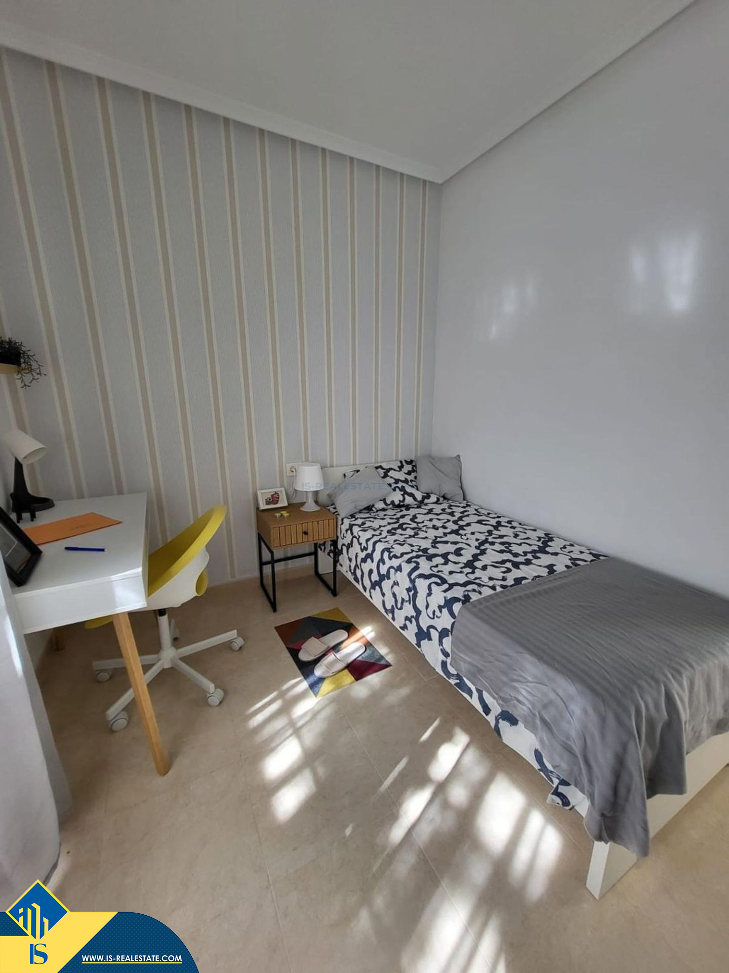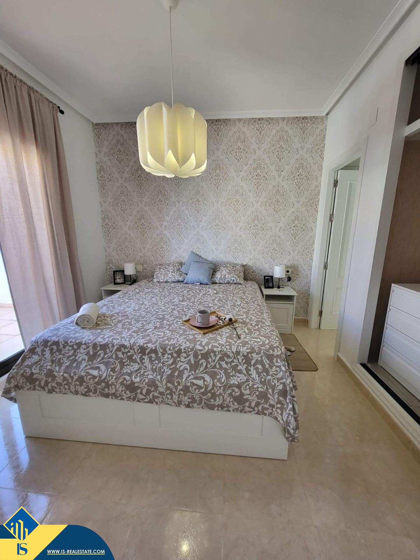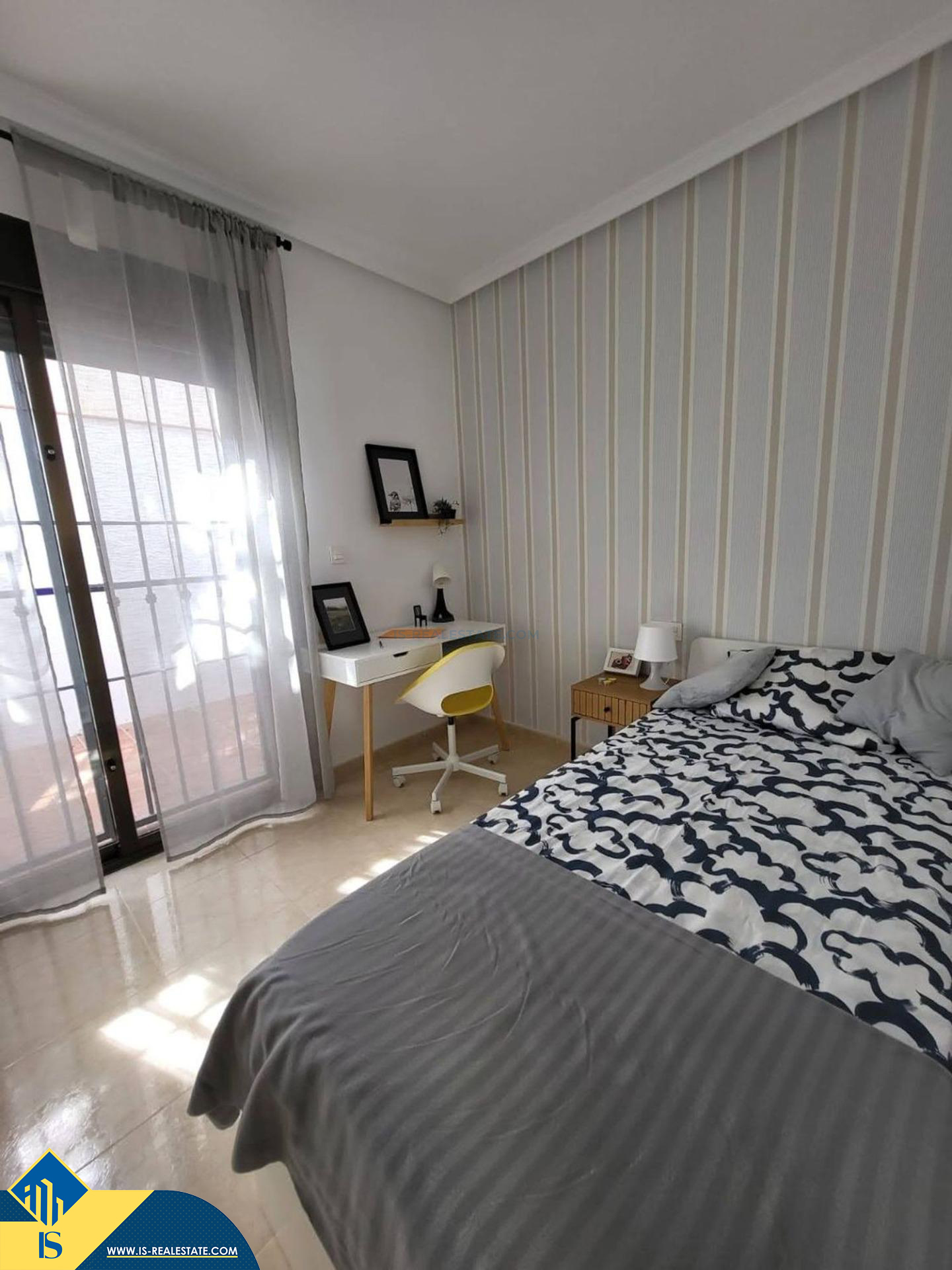 4-ių kambarių namas su bendru baseinu, Ispanijoje, Alicante provincijoje, San Miguel de Salinas mieste, bendras plotas 150 m², 6.5 kilometrai iki jūros, 45 kilometrai iki Alicante miesto oro uosto. Turtui priklauso terasa, bendras baseinas, vieta automobiliui. Netoli turto yra parduotuvės, restoranai, vaistinės, autobusų stotelės, degalinės, žalios zonos, kavinės