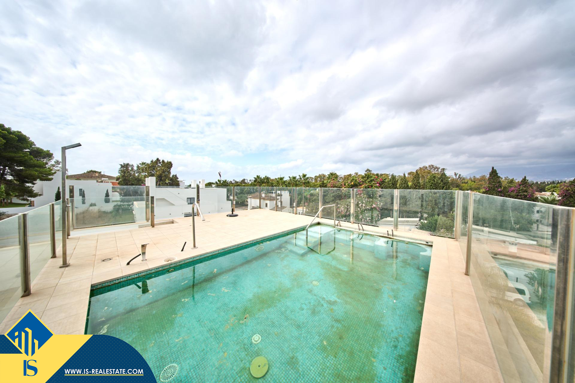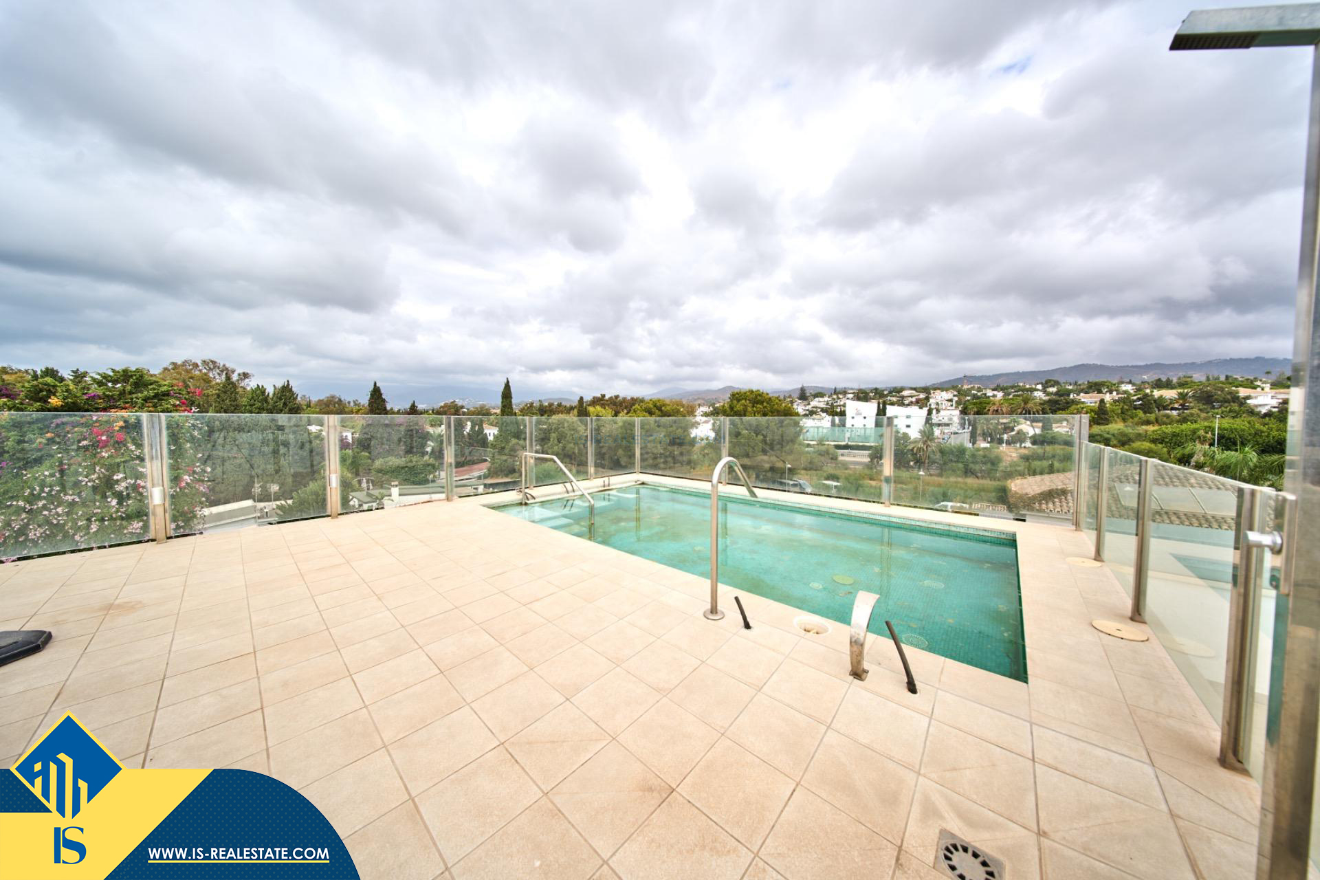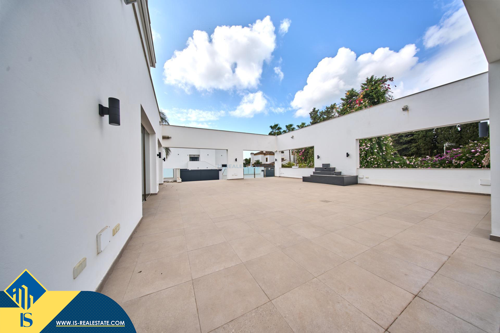 6-ių kambarių vila su privačiu baseinu, Ispanijoje, Malaga provincijoje, Marbella mieste, Los Monteros rajone, bendras plotas 979 m², 400 metrų iki jūros, 57 kilometrai iki Malaga oro uosto. Turtui priklauso terasa, liftas, garažas, sandėliukas, privatus kiemas. Netoli turto yra parduotuvės, restoranai, autobusų stotelės, vaikų zonos, degalinės, žalios zonos, kavinės, vaistinės, ligoninė
