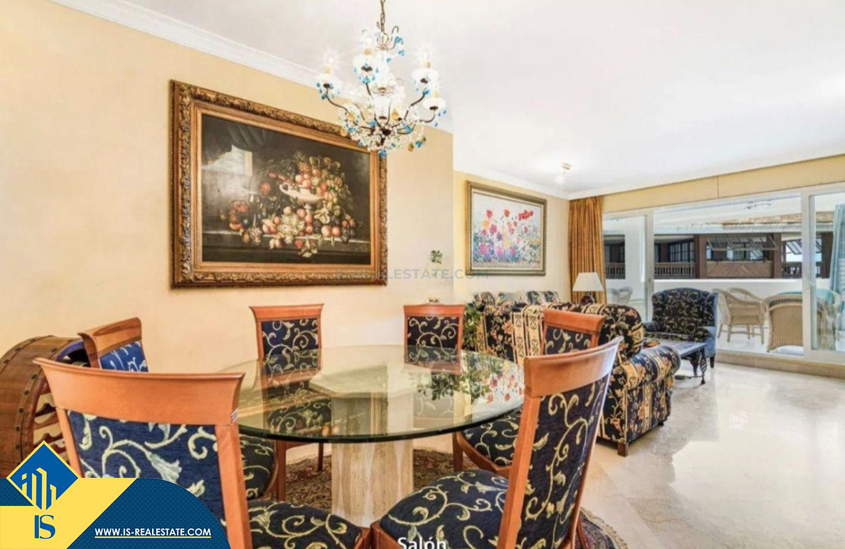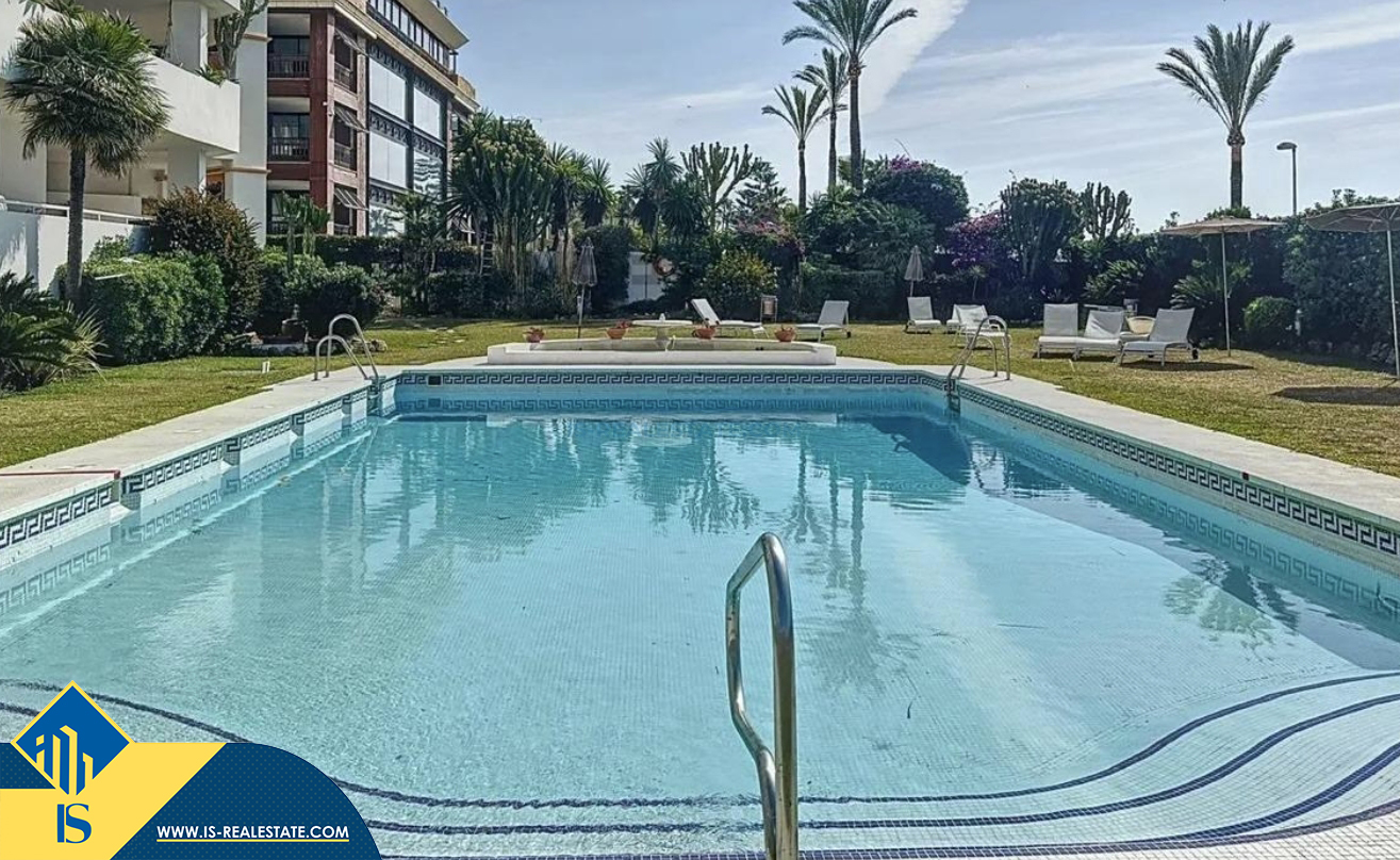 3-jų kambarių apartamentas su bendru baseinu, Ispanijoje, Malaga provincijoje, Marbella mieste, Puerto Banús rajone, bendras plotas 195 m², 50 metrų iki jūros, 57 kilometrai iki Malaga oro uosto. Turtui priklauso bendras baseinas, terasa, liftas, garažas, sandėliukas. Netoli turto yra parduotuvės, restoranai, autobusų stotelės, vaikų zonos, degalinės, žalios zonos, kavinės, vaistinės, ligoninė