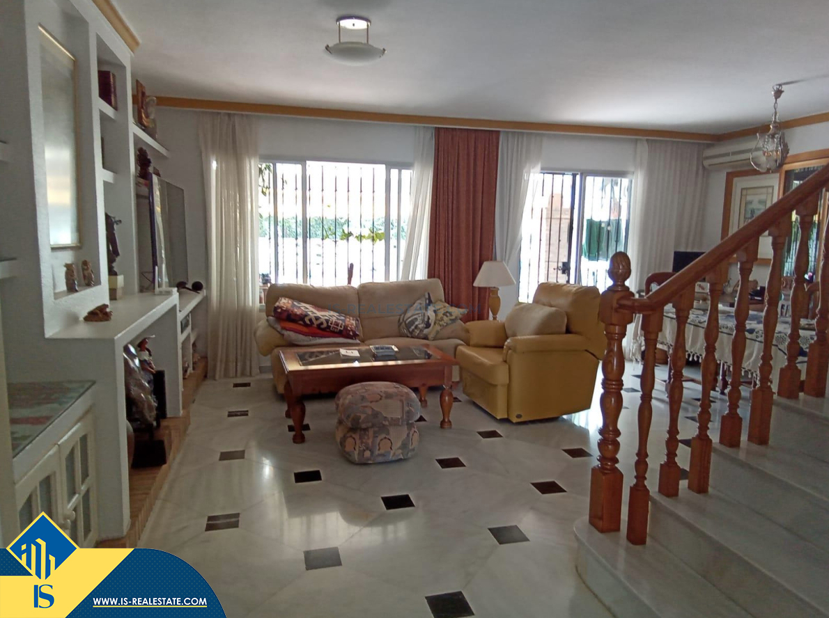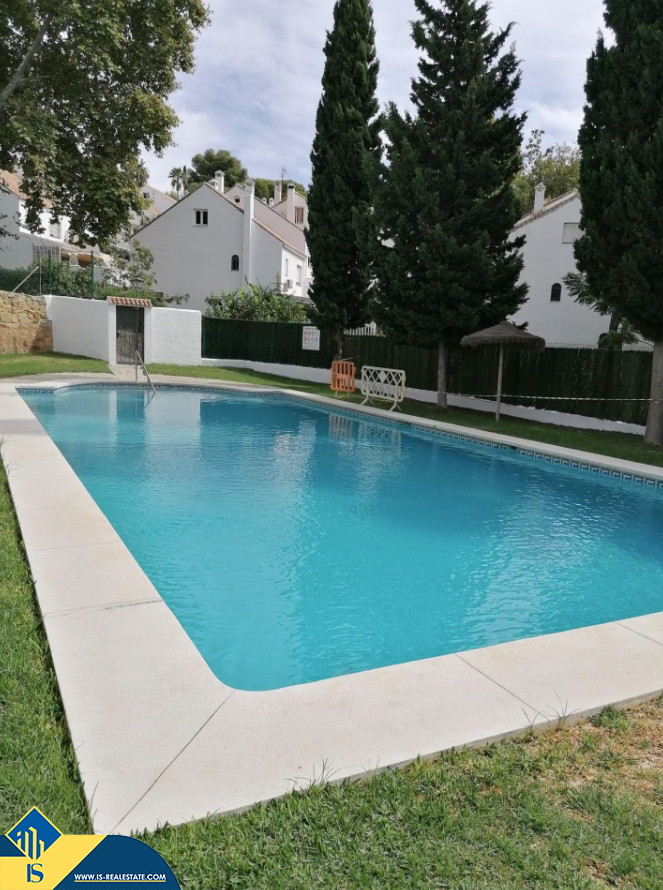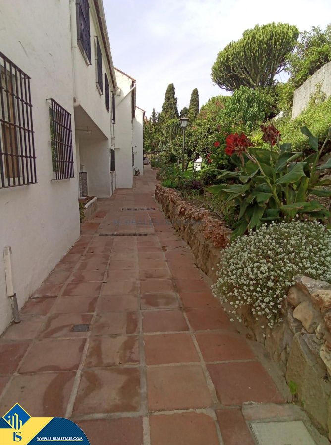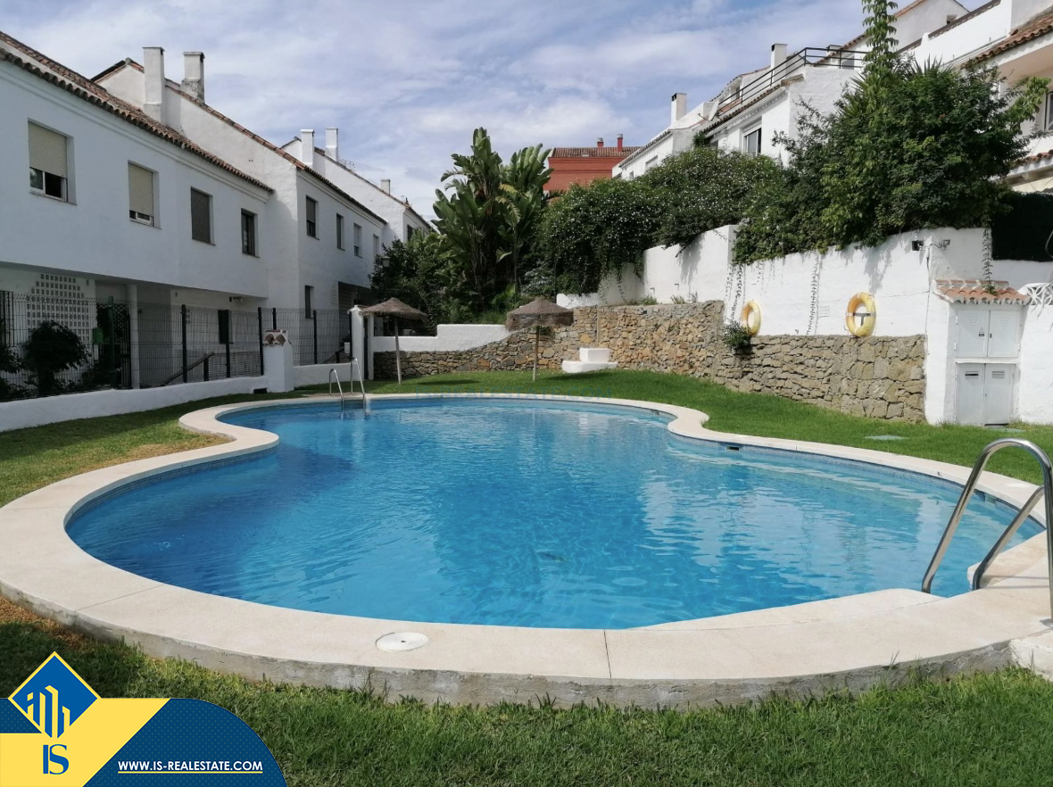 6-ių kambarių namas su bendru baseinu, Ispanijoje, Malaga provincijoje, Marbella mieste, Auksinės mylios rajone, bendras plotas 223 m², 1 kilometras iki jūros, 57 kilometrai iki Malaga oro uosto. Turtui priklauso bendras baseinas, terasa, vieta automobiliui. Netoli turto yra parduotuvės, restoranai, autobusų stotelės, vaikų zonos, degalinės, žalios zonos, kavinės, vaistinės, ligoninė