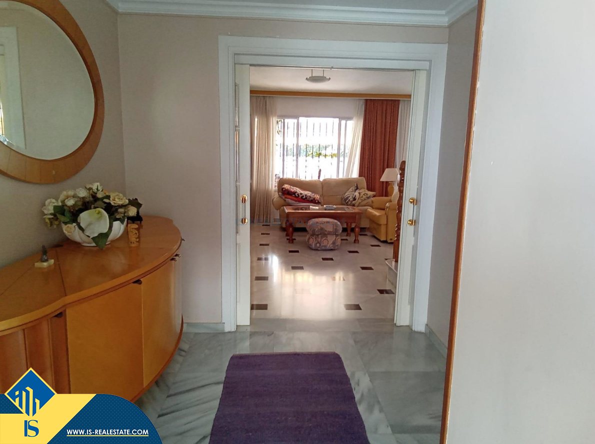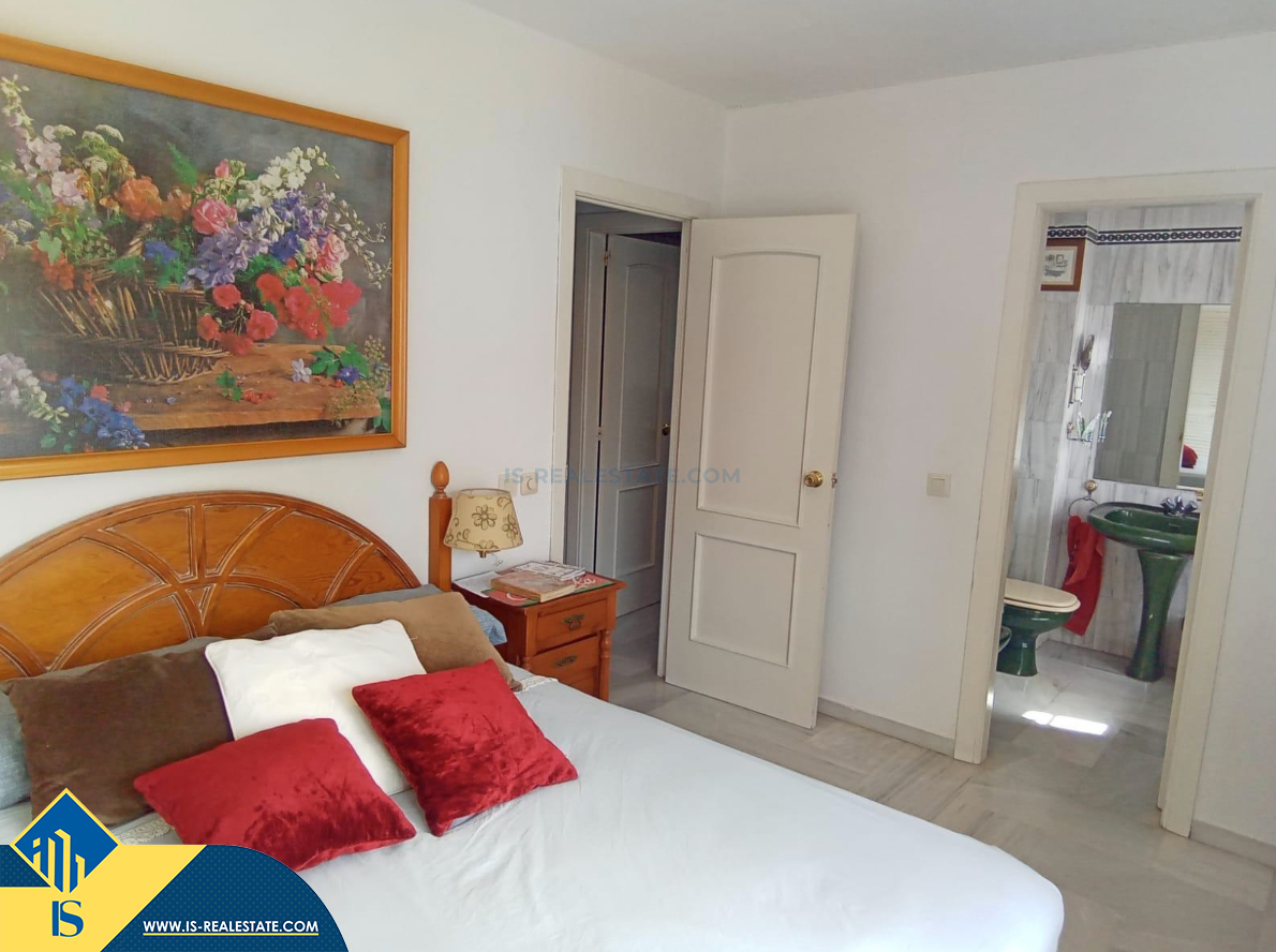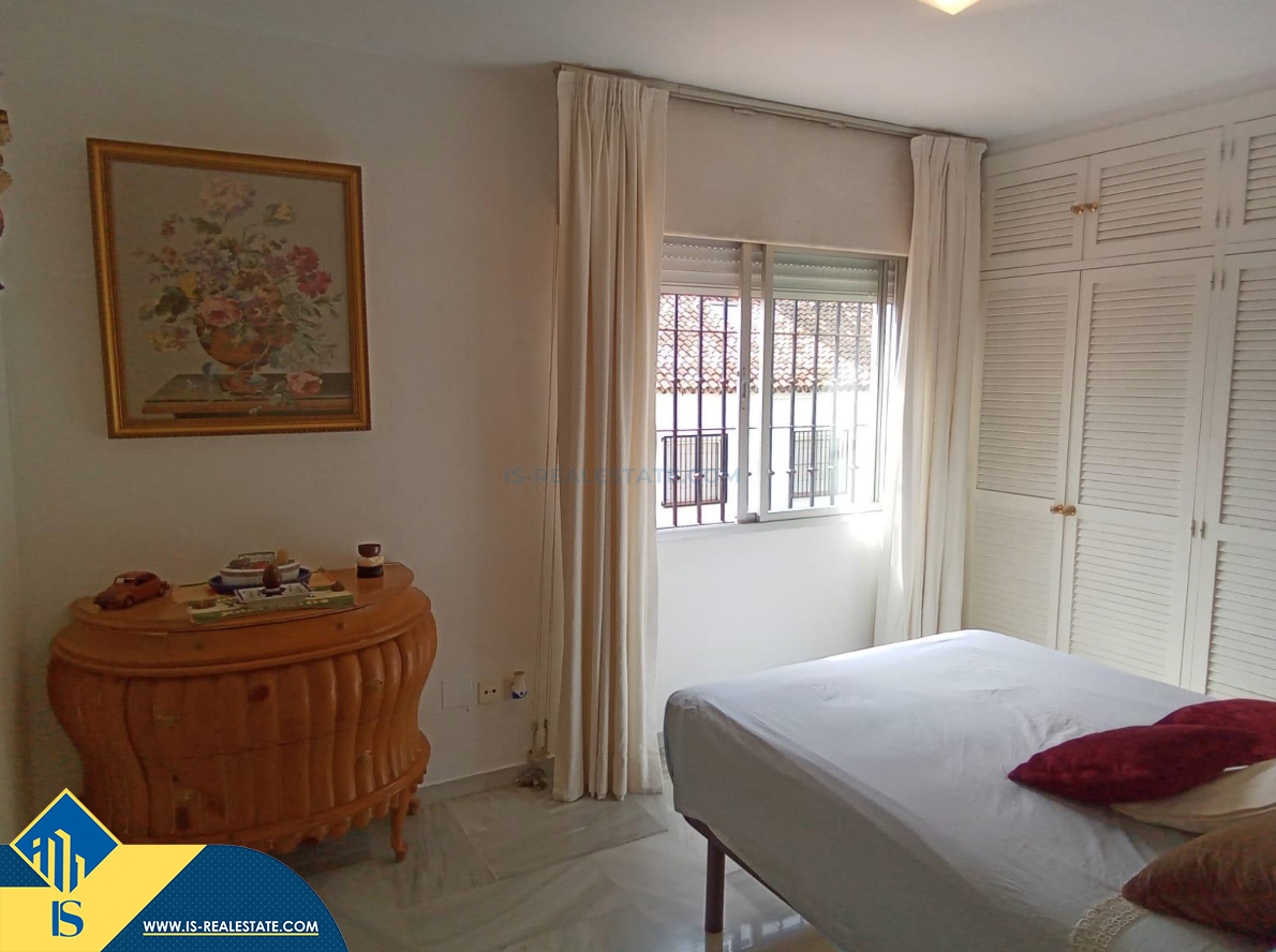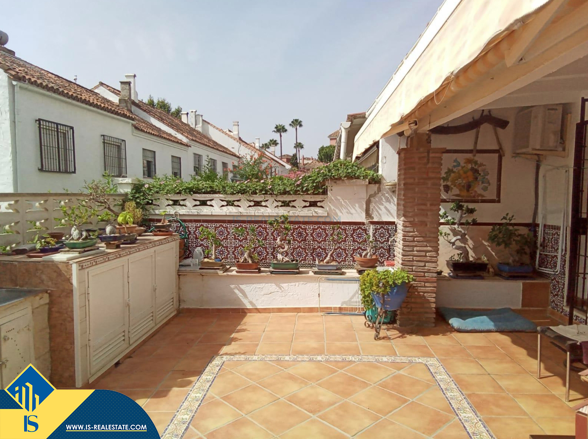 6-ių kambarių namas su bendru baseinu, Ispanijoje, Malaga provincijoje, Marbella mieste, Auksinės mylios rajone, bendras plotas 223 m², 1 kilometras iki jūros, 57 kilometrai iki Malaga oro uosto. Turtui priklauso bendras baseinas, terasa, vieta automobiliui. Netoli turto yra parduotuvės, restoranai, autobusų stotelės, vaikų zonos, degalinės, žalios zonos, kavinės, vaistinės, ligoninė