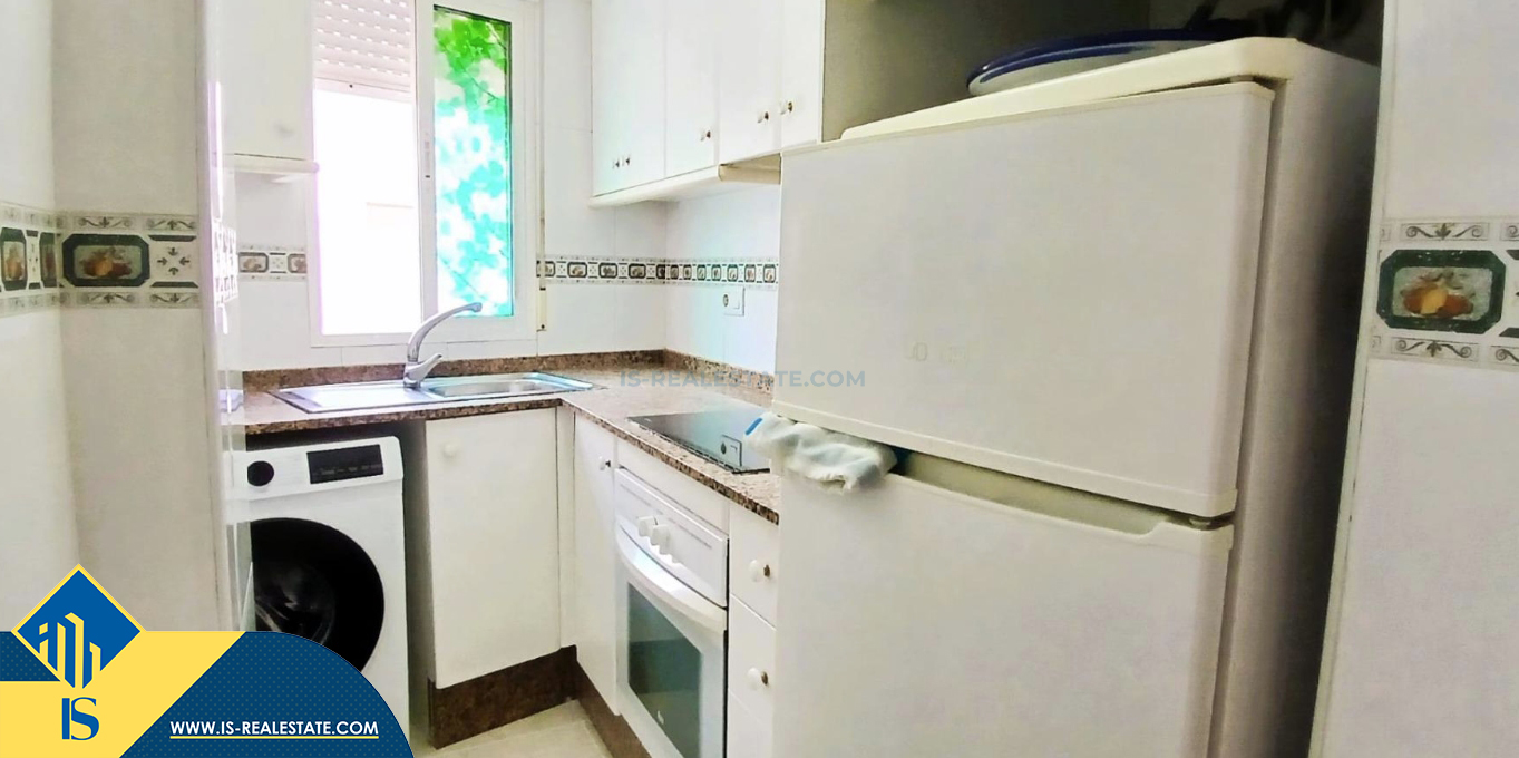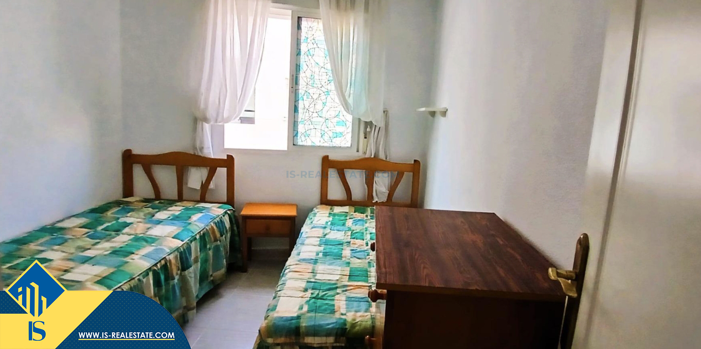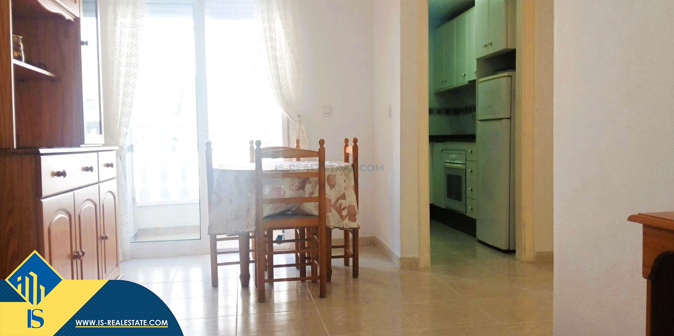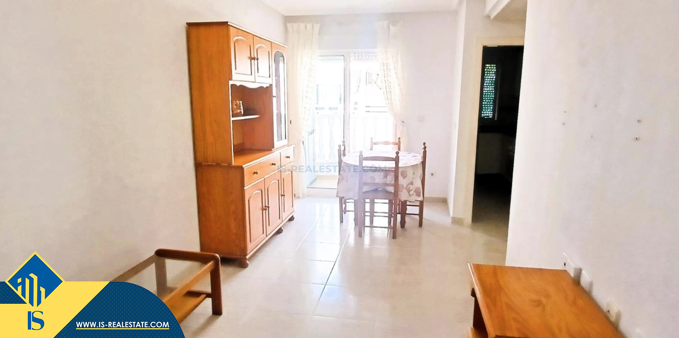 3-jų kambarių apartamentas su terasa, Ispanijoje, Alicante provincijoje, Torrevieja mieste, bendras plotas 60 m², 400 metrų iki jūros, 45 kilometrai iki Alicante oro uosto. Turtui priklauso terasa, liftas. Netoli turto yra parduotuvės, restoranai, vaistinės, autobusų stotelės, degalinės, žalios zonos, kavinės