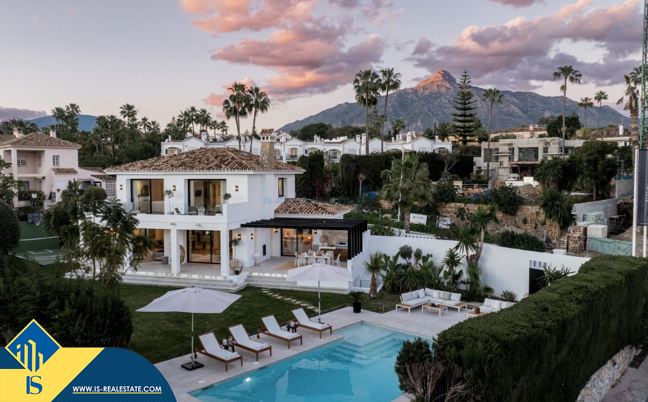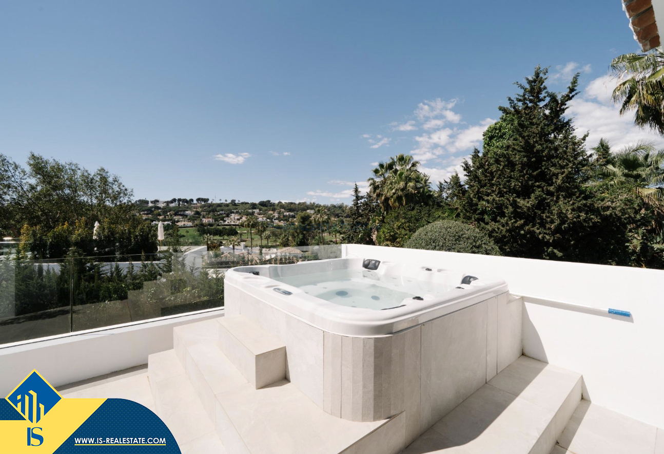 6-ių kambarių renovuota vila su privačiu baseinu, Ispanijoje, Malaga provincijoje, Marbella mieste, Nueva Andalucia rajone, bendras plotas 378 m², 2 kilometrai iki jūros, 57 kilometrai iki Malaga oro uosto. Turtui priklauso terasa, privatus baseinas, garažas, sandėliukas. Netoli turto yra parduotuvės, restoranai, autobusų stotelės, vaikų zonos, degalinės, žalios zonos, kavinės, vaistinės, ligoninė