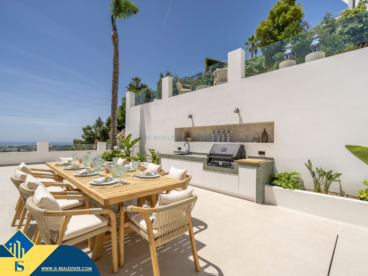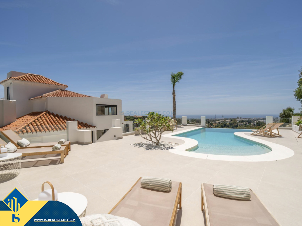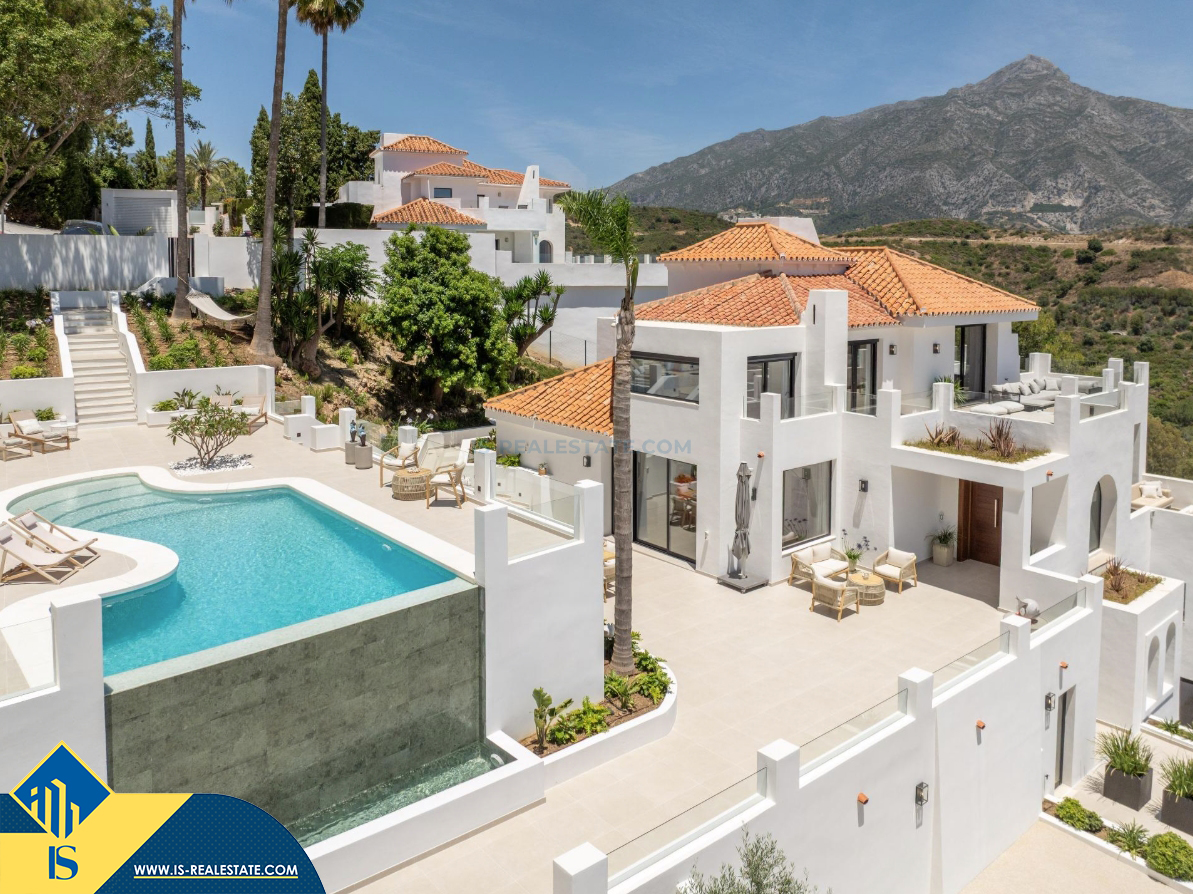 6-ių kambarių vila su privačiu baseinu, Ispanijoje, Malaga provincijoje, Marbella mieste, Nueva Andalucia rajone, bendras plotas 436 m², 6 kilometrai iki jūros, 57 kilometrai iki Malaga oro uosto. Turtui priklauso terasa, privatus baseinas, vieta automobiliui, sandėliukas. Netoli turto yra parduotuvės, restoranai, autobusų stotelės, vaikų zonos, degalinės, žalios zonos, kavinės, vaistinės, ligoninė
