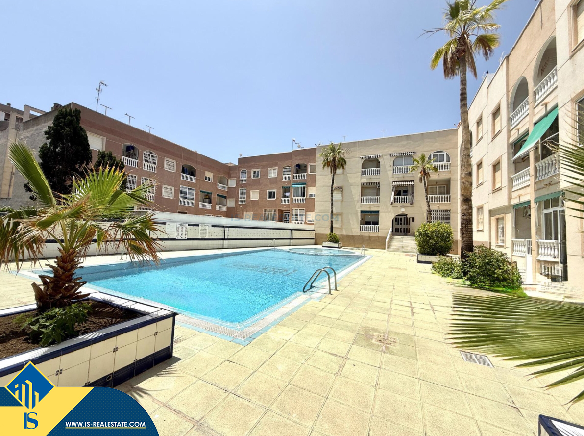 3-jų kambarių apartamentas su bendru baseinu, Ispanijoje, Alicante provincijoje, Torrevieja mieste, Playa del Cura rajone, bendras plotas 71 m², 500 metrų iki jūros, 45 kilometrai iki Alicante oro uosto. Turtui priklauso bendras baseinas, terasa, liftas. Netoli turto yra parduotuvės, restoranai, vaistinės, autobusų stotelės, degalinės, žalios zonos, kavinės, Habaneras alėja