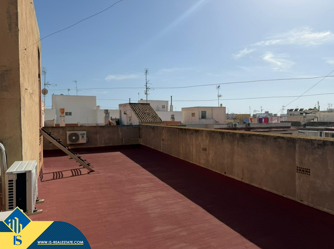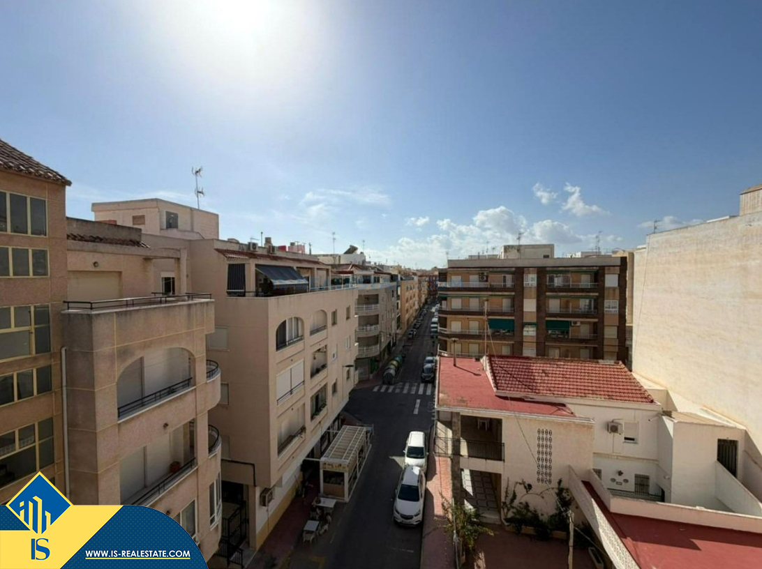 4-ių kambarių penthouse apartamentas su terasa, Ispanijoje, Alicante provincijoje, Torrevieja mieste, bendras plotas 93 m², 300 metrų iki jūros, 45 kilometrai iki Alicante oro uosto. Turtui priklauso terasa, liftas, sandėliukas. Netoli turto yra parduotuvės, restoranai, vaistinės, autobusų stotelės, degalinės, žalios zonos, kavinės