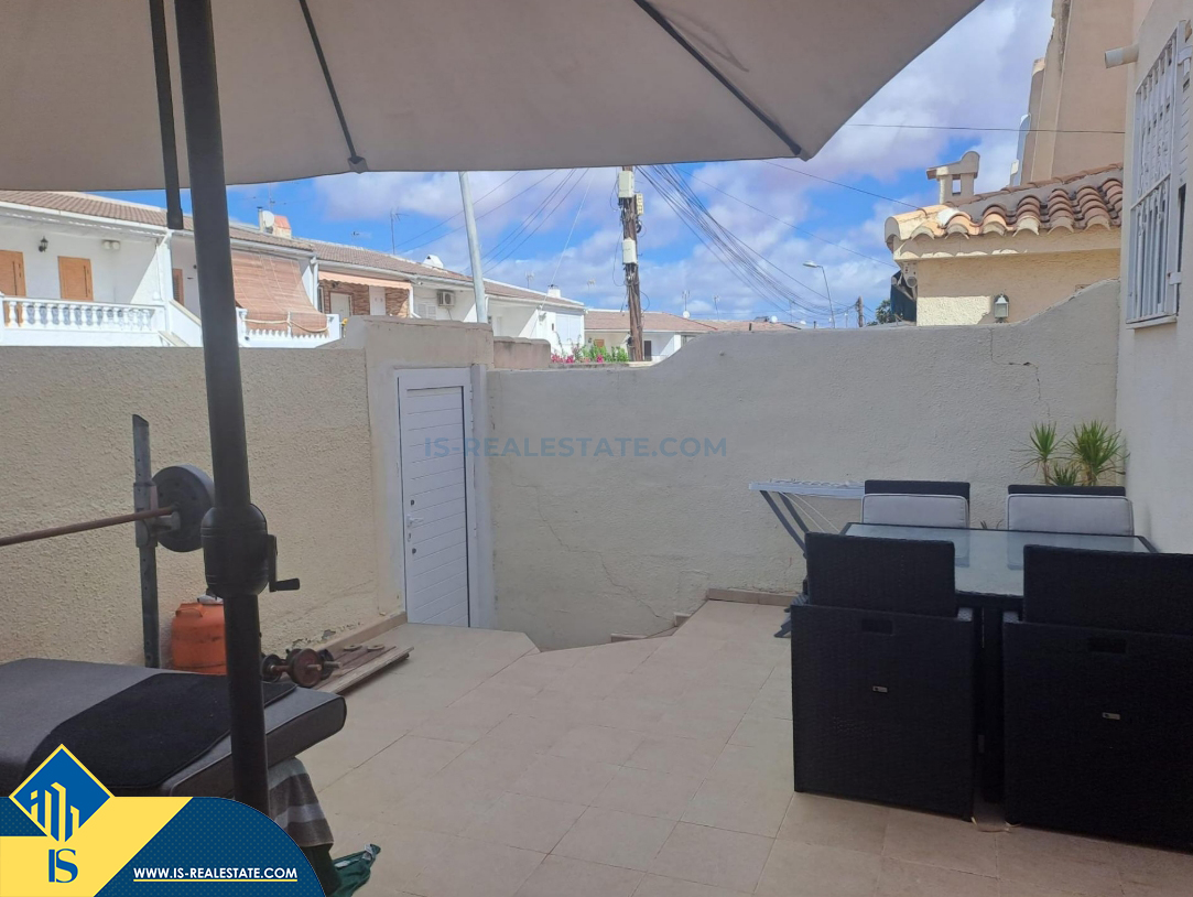 3-jų kambarių namas su terasa, Ispanijoje, Alicante provincijoje, Torrevieja mieste, Los Balcones rajone, bendras plotas 71 m², 3 kilometrai iki jūros, 45 kilometrai iki Alicante oro uosto. Turtui priklauso terasa, privatus kiemas. Netoli turto yra parduotuvės, restoranai, autobusų stotelės, vaikų zonos, degalinės, žalios zonos, kavinės