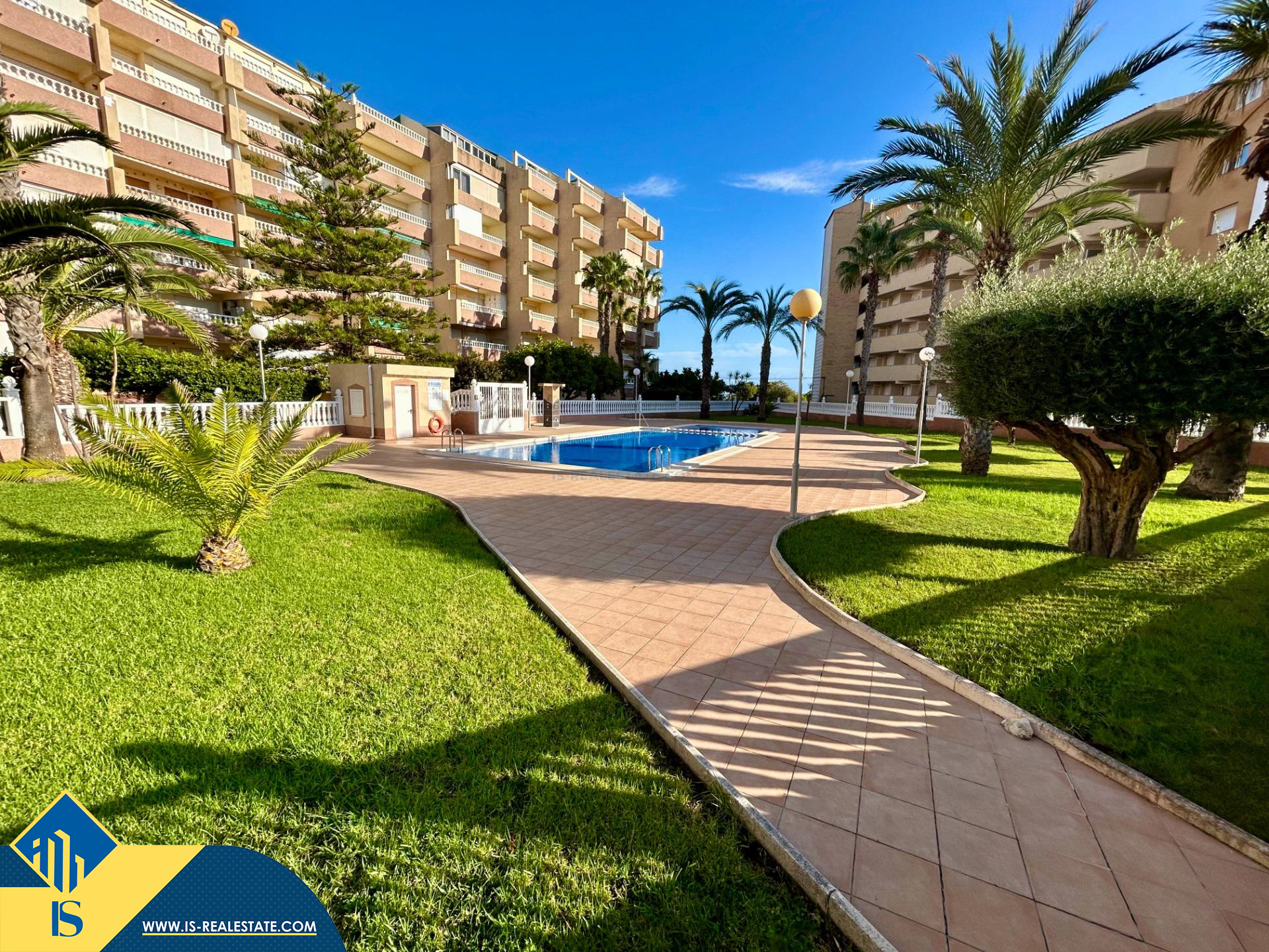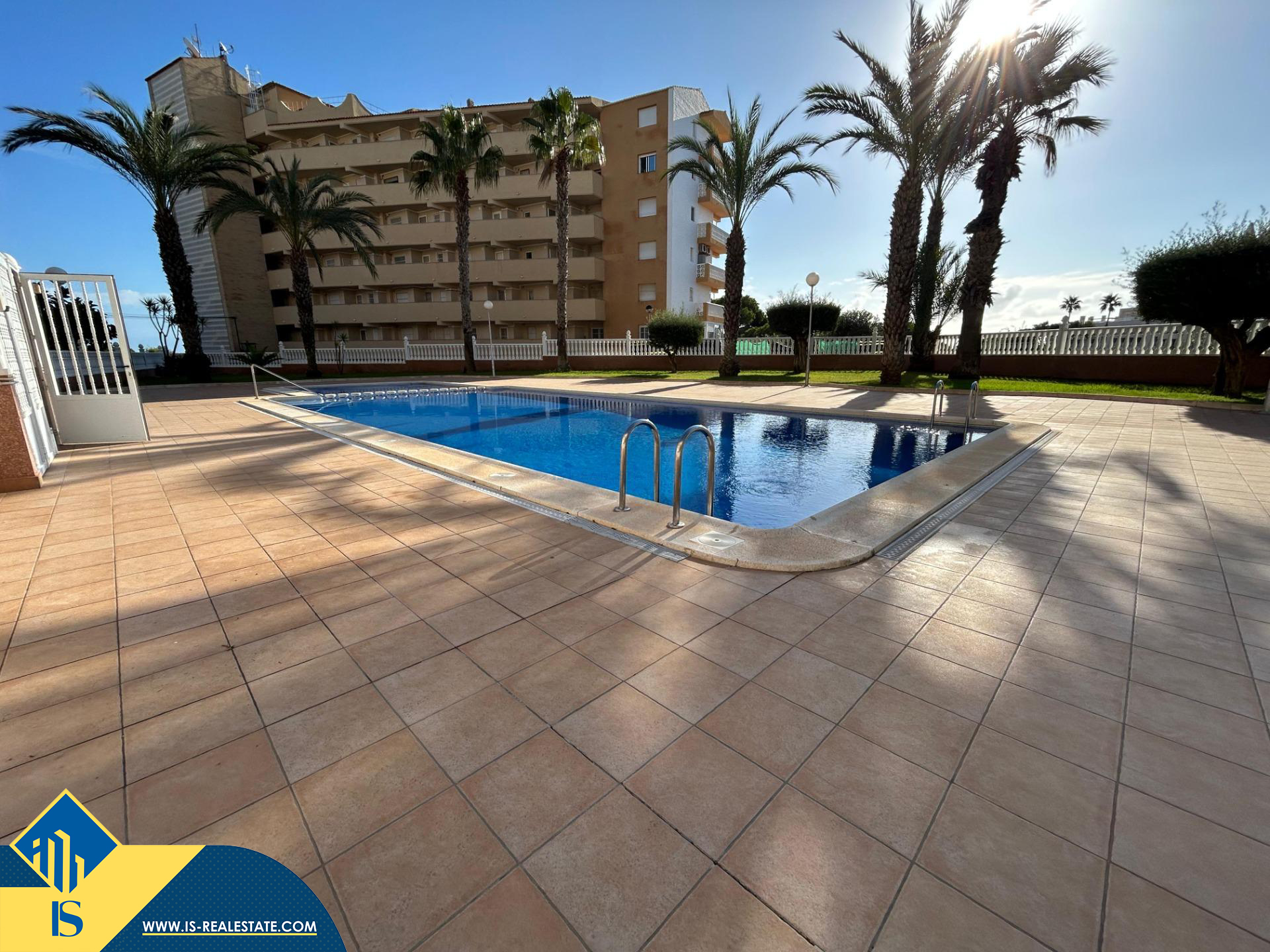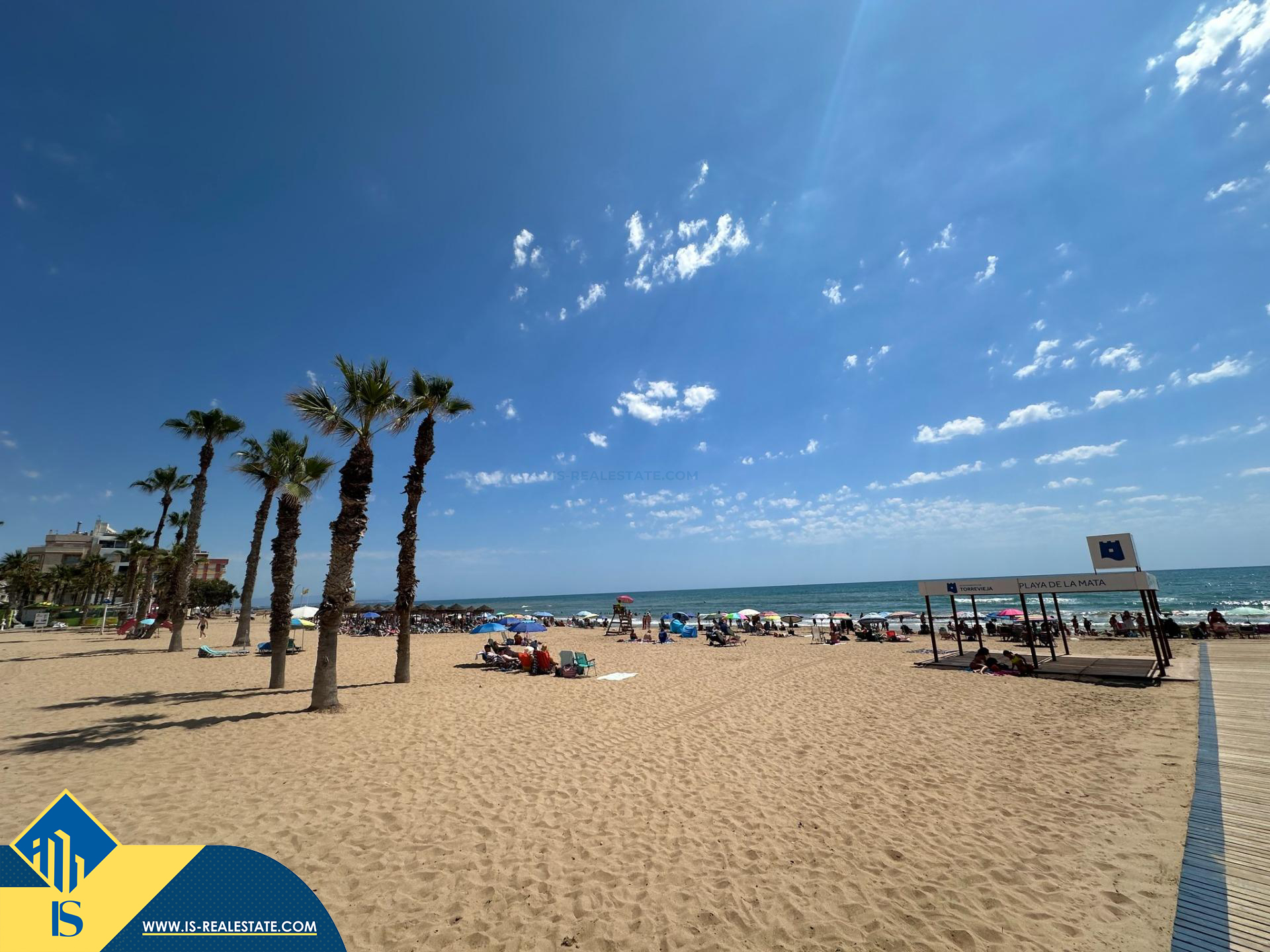 3-jų kambarių apartamentas su bendru baseinu, Ispanijoje, Alicante provincijoje, Torrevieja mieste, La Mata rajone, bendras plotas 75 m², 50 metrų iki jūros, 38 kilometrai iki Alicante oro uosto. Turtui priklauso bendras baseinas, terasa, liftas. Netoli turto yra parduotuvės, restoranai, autobusų stotelės, degalinės, žalios zonos, kavinės, vaistinės