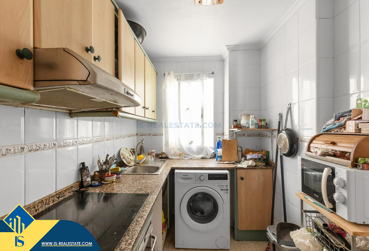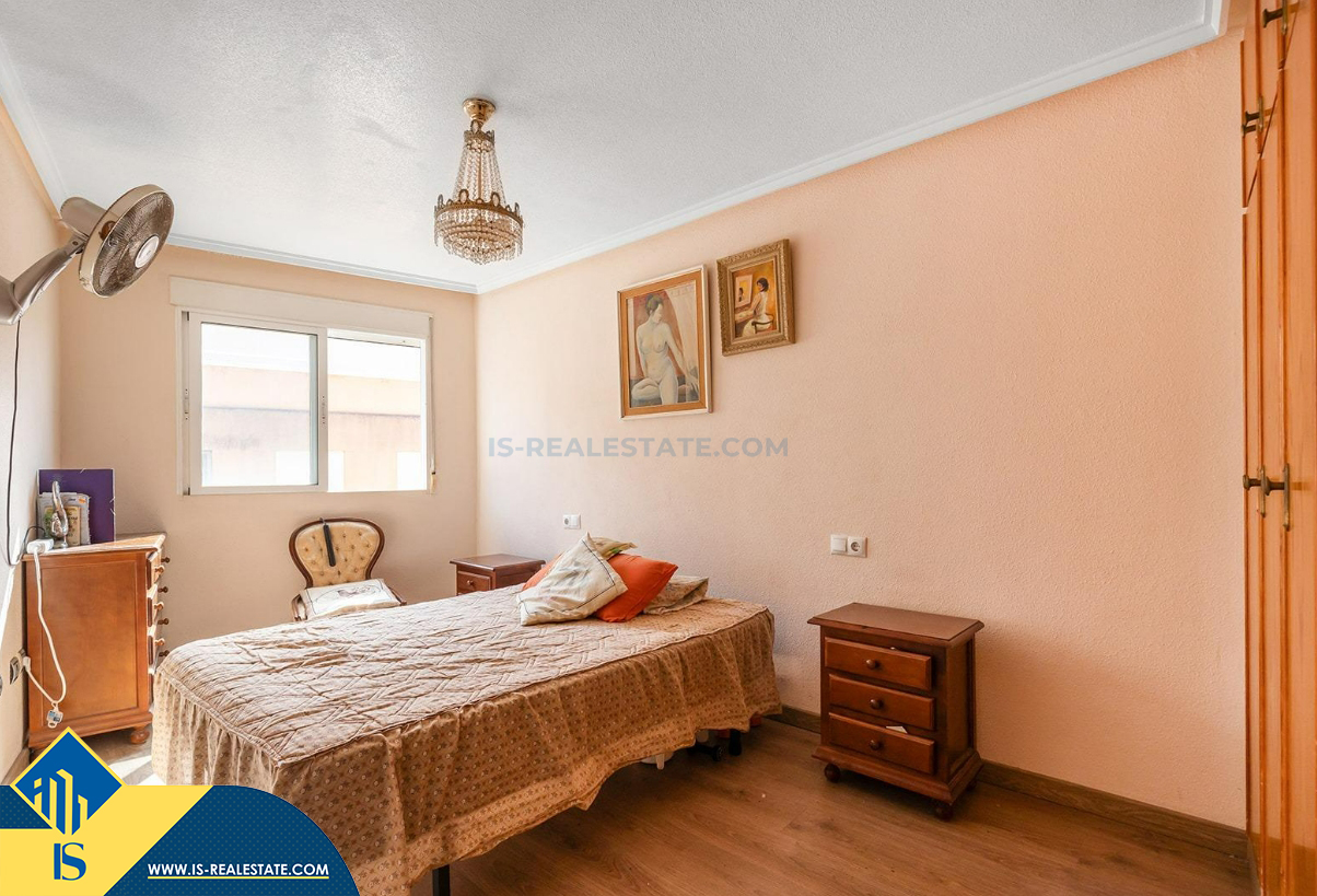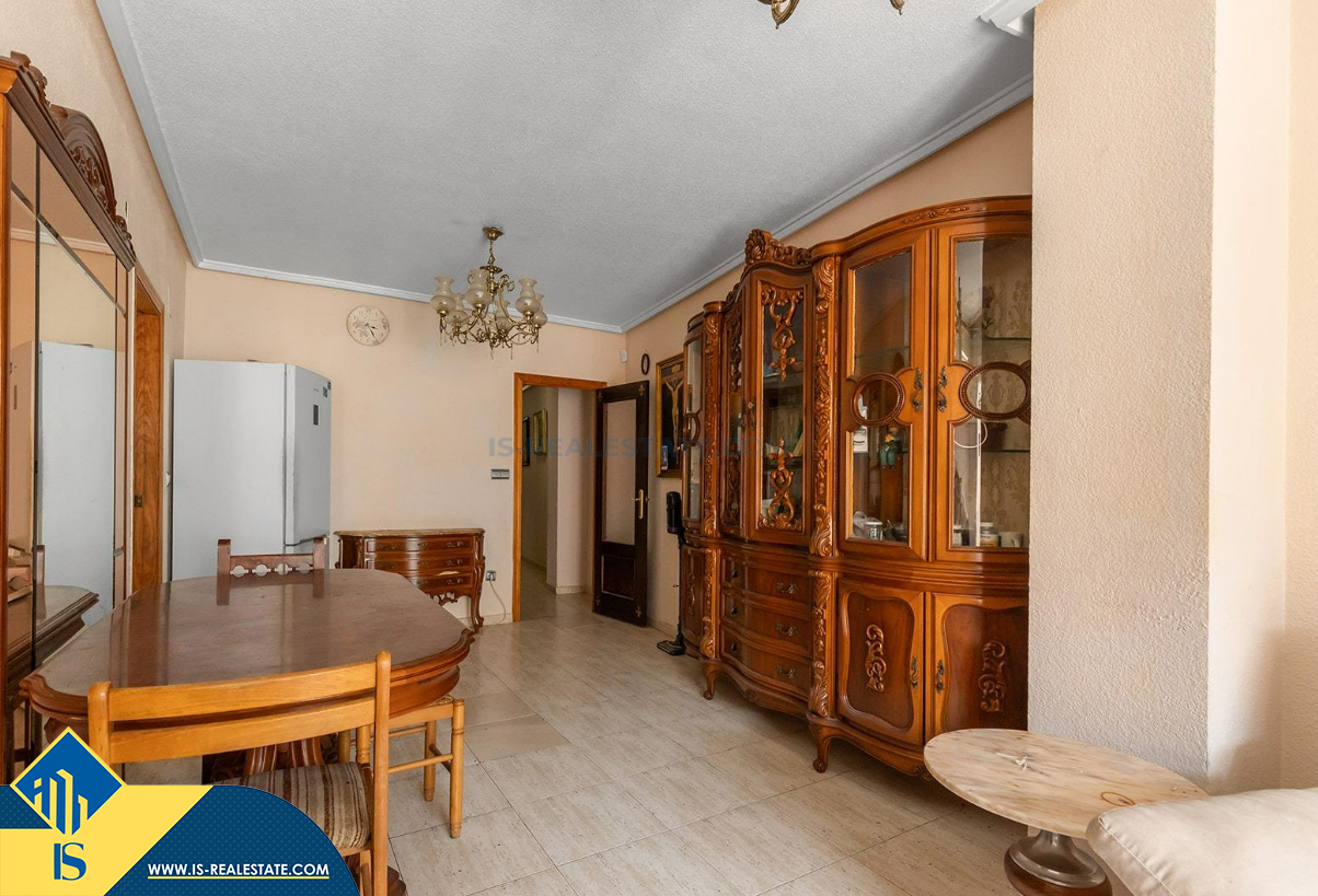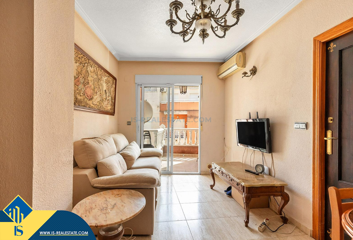 4-ių kambarių apartamentas su terasa, Ispanijoje, Alicante provincijoje, Torrevieja mieste, bendras plotas 96 m², 600 metrų iki jūros, 45 kilometrai iki Alicante oro uosto. Turtui priklauso terasa, liftas. Netoli turto yra parduotuvės, restoranai, vaistinės, autobusų stotelės, degalinės, žalios zonos, kavinės