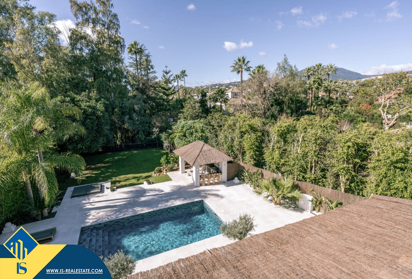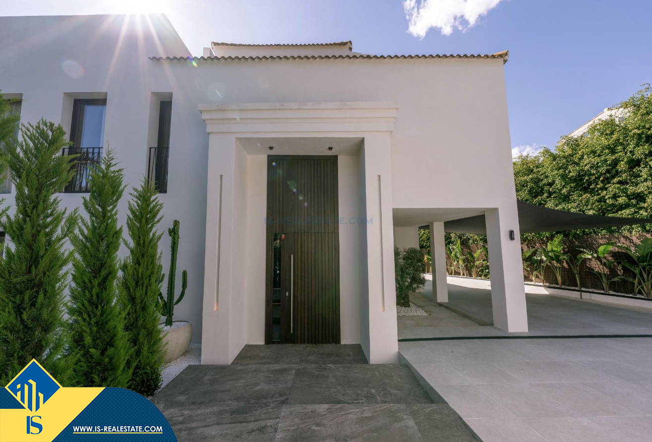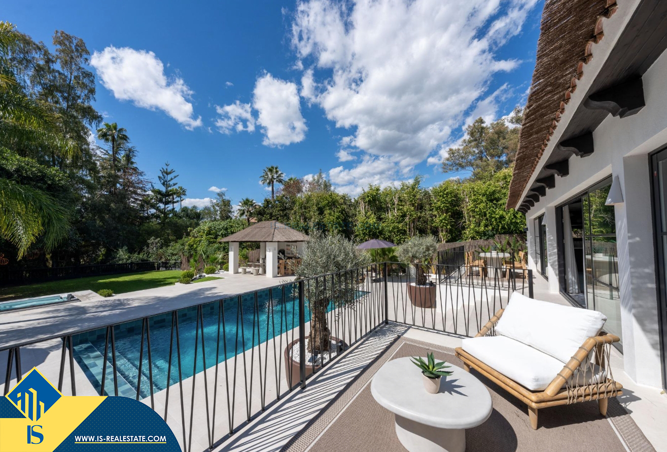 6-ių kambarių renovuota vila su privačiu baseinu, Ispanijoje, Malaga provincijoje, Marbella mieste, Nueva Andalucia rajone, bendras plotas 400 m², 1 kilometras iki jūros, 57 kilometrai iki Malaga oro uosto. Turtui priklauso terasa, privatus baseinas, garažas, sandėliukas, privatus kiemas. Netoli turto yra parduotuvės, restoranai, autobusų stotelės, vaikų zonos, degalinės, žalios zonos, kavinės, vaistinės, ligoninė