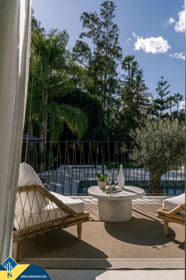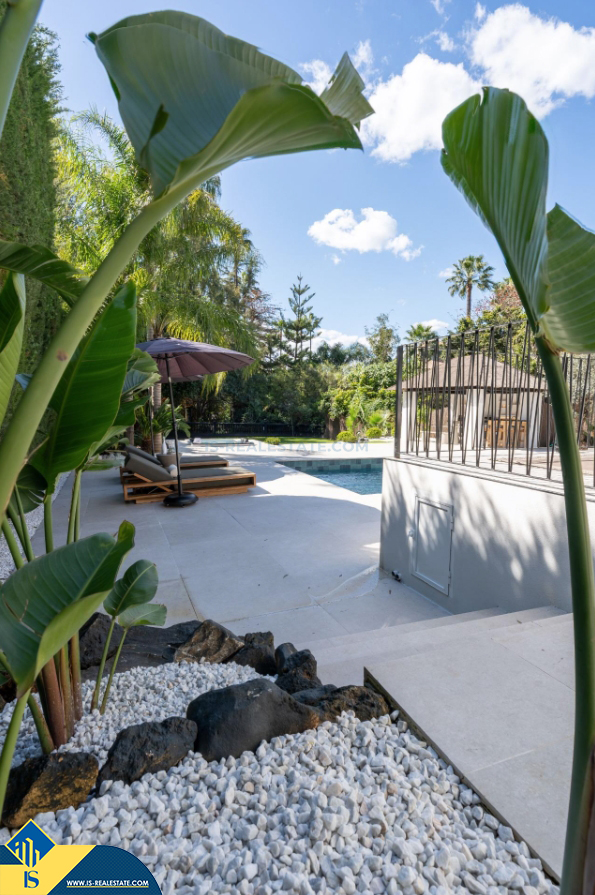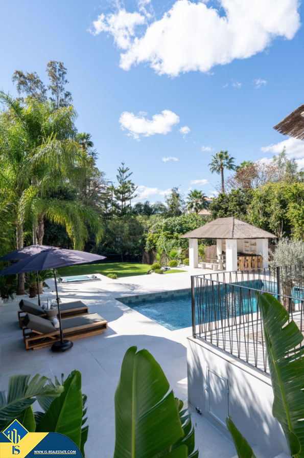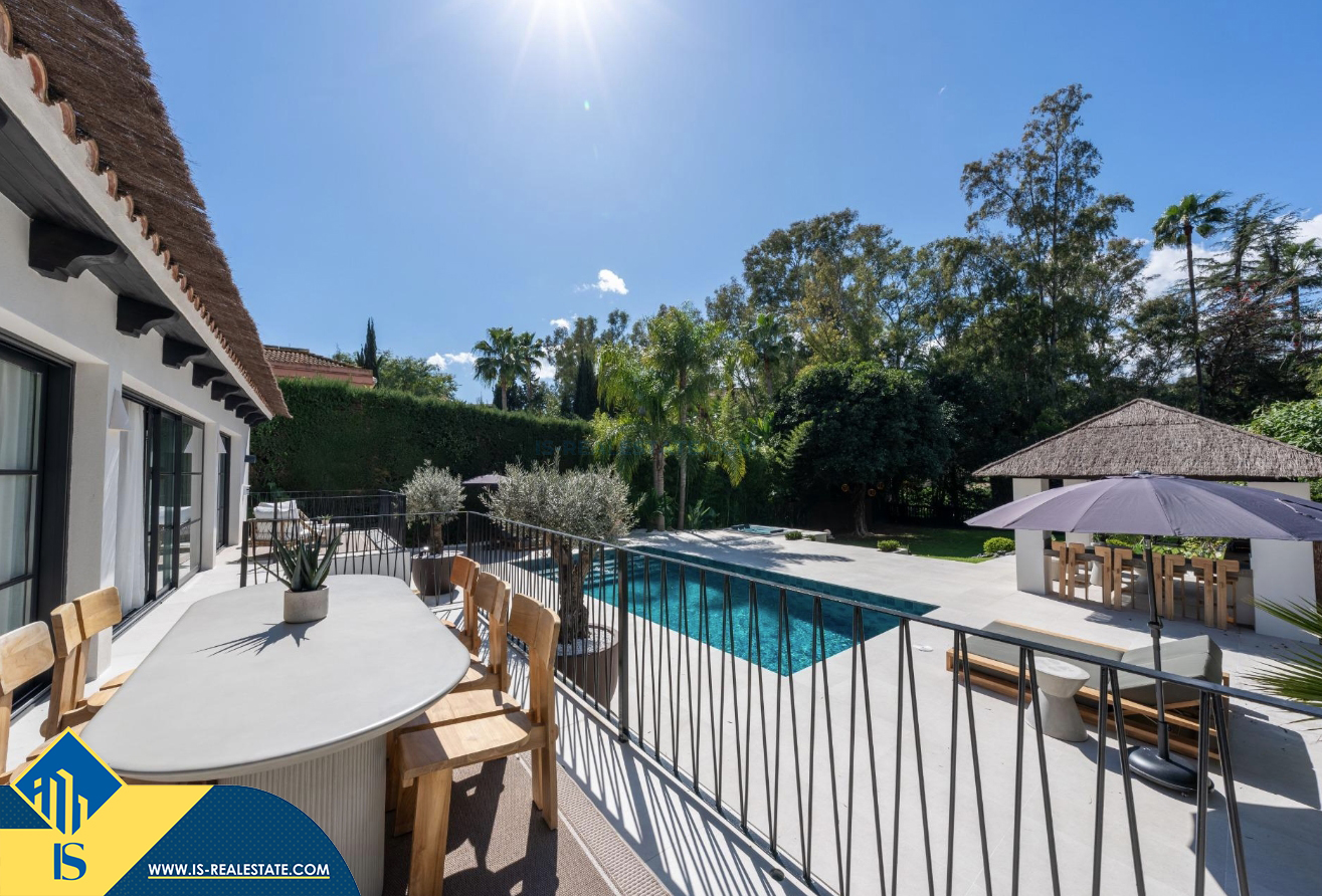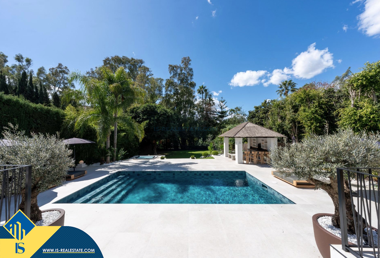 6-ių kambarių renovuota vila su privačiu baseinu, Ispanijoje, Malaga provincijoje, Marbella mieste, Nueva Andalucia rajone, bendras plotas 400 m², 1 kilometras iki jūros, 57 kilometrai iki Malaga oro uosto. Turtui priklauso terasa, privatus baseinas, garažas, sandėliukas, privatus kiemas. Netoli turto yra parduotuvės, restoranai, autobusų stotelės, vaikų zonos, degalinės, žalios zonos, kavinės, vaistinės, ligoninė