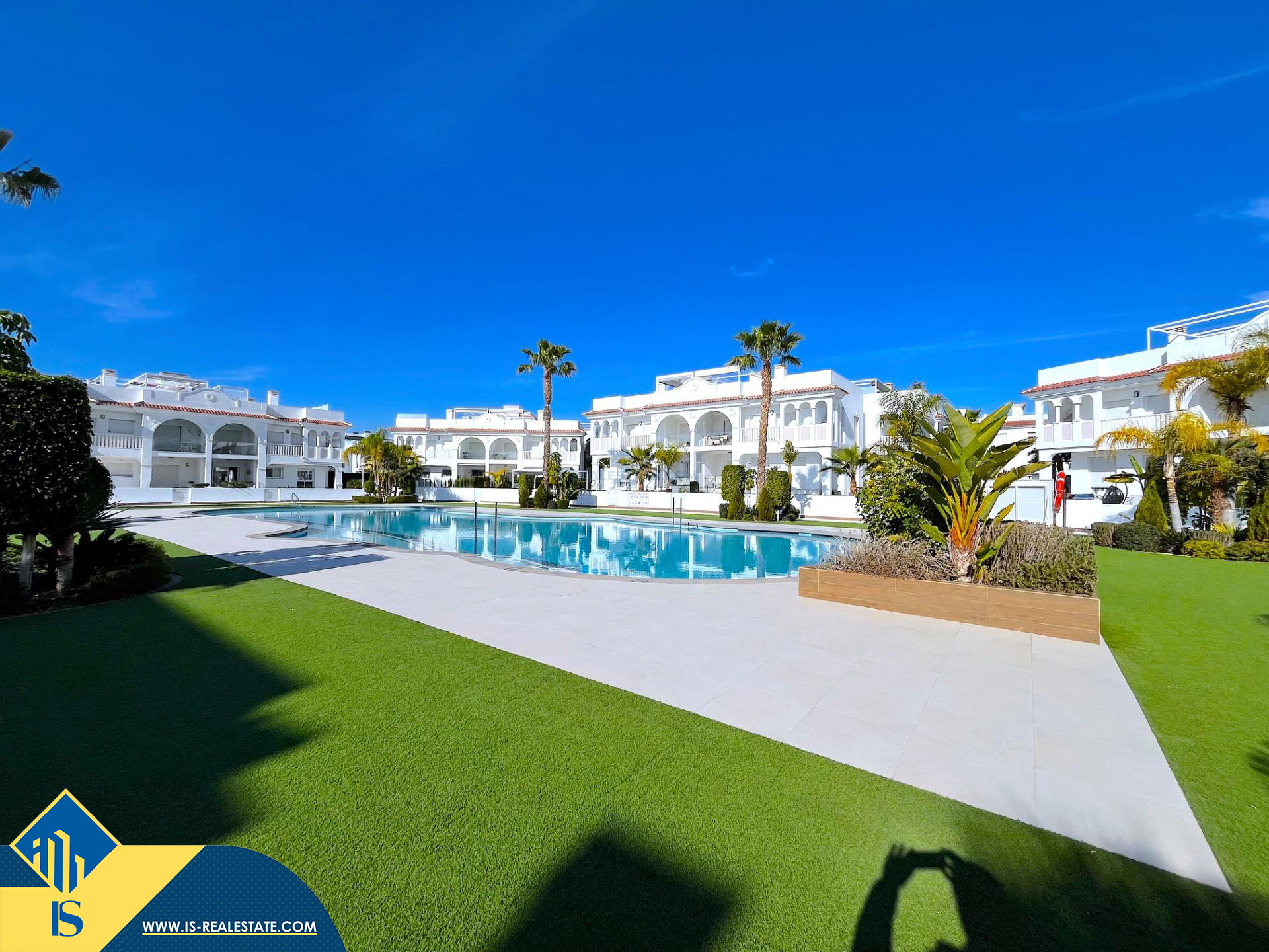 3-jų kambarių apartamentas su baseinu, Ispanijoje, Alicante provincijoje, Rojales, Ciudad Quesada mieste, bendras plotas 75 m², 6 kilometrų iki jūros, 46 kilometrai iki Alicante miesto oro uosto. Turtui priklauso terasa, soliariumas, bendras baseinas, vieta automobiliui. Netoli turto yra parduotuvės, restoranai, autobusų stotelės, vaikų zonos, degalinės, žalios zonos, kavinės, vaistinės