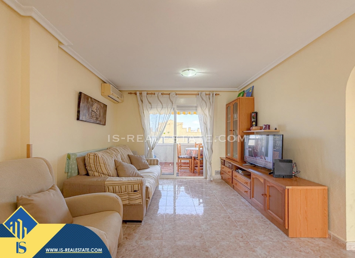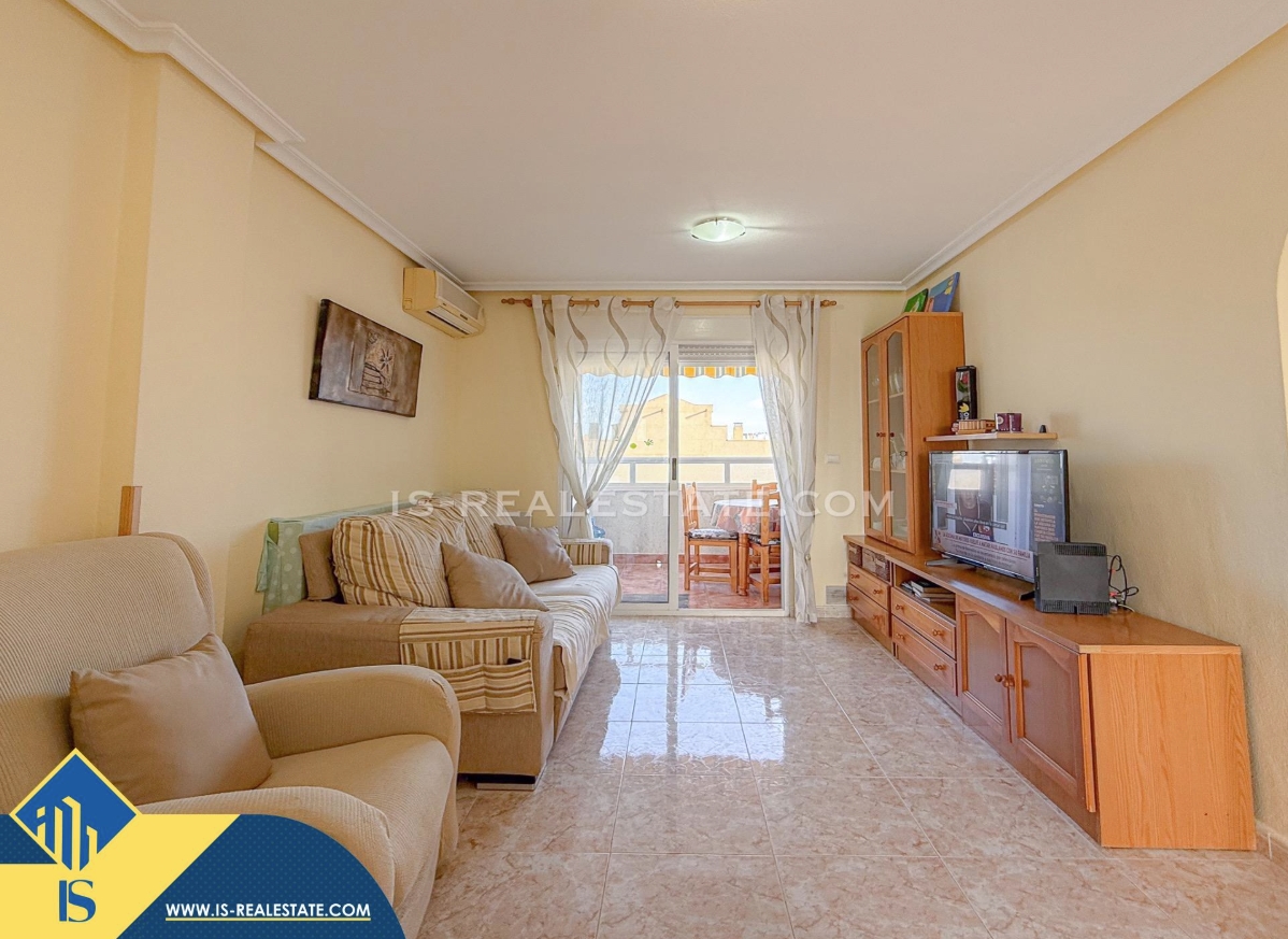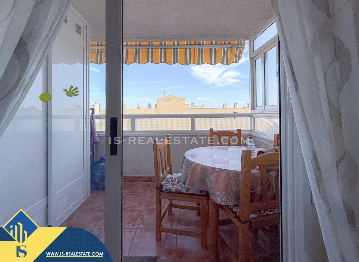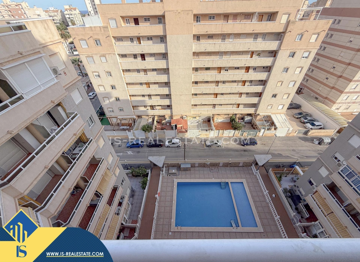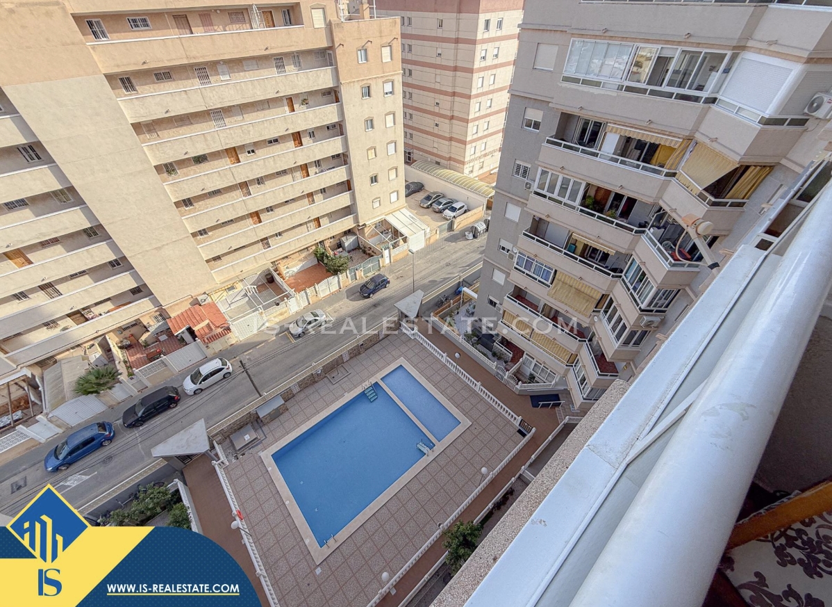 3-jų kambarių apartamentas su bendru baseinu, Ispanijoje, Alicante provincijoje, Torrevieja mieste, bendras plotas 58 m², 1.5 kilometro iki jūros, 45 kilometrai iki Alicante oro uosto. Turtui priklauso bendras baseinas, terasa, liftas, garažas. Netoli turto yra parduotuvės, restoranai, vaistinės, autobusų stotelės, degalinės, žalios zonos, kavinės