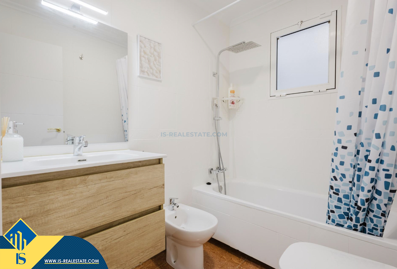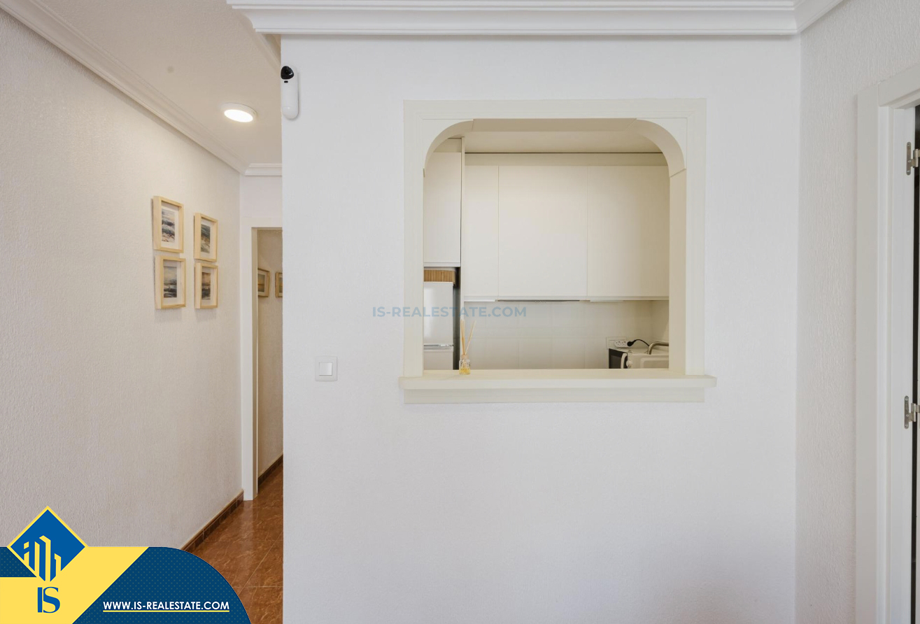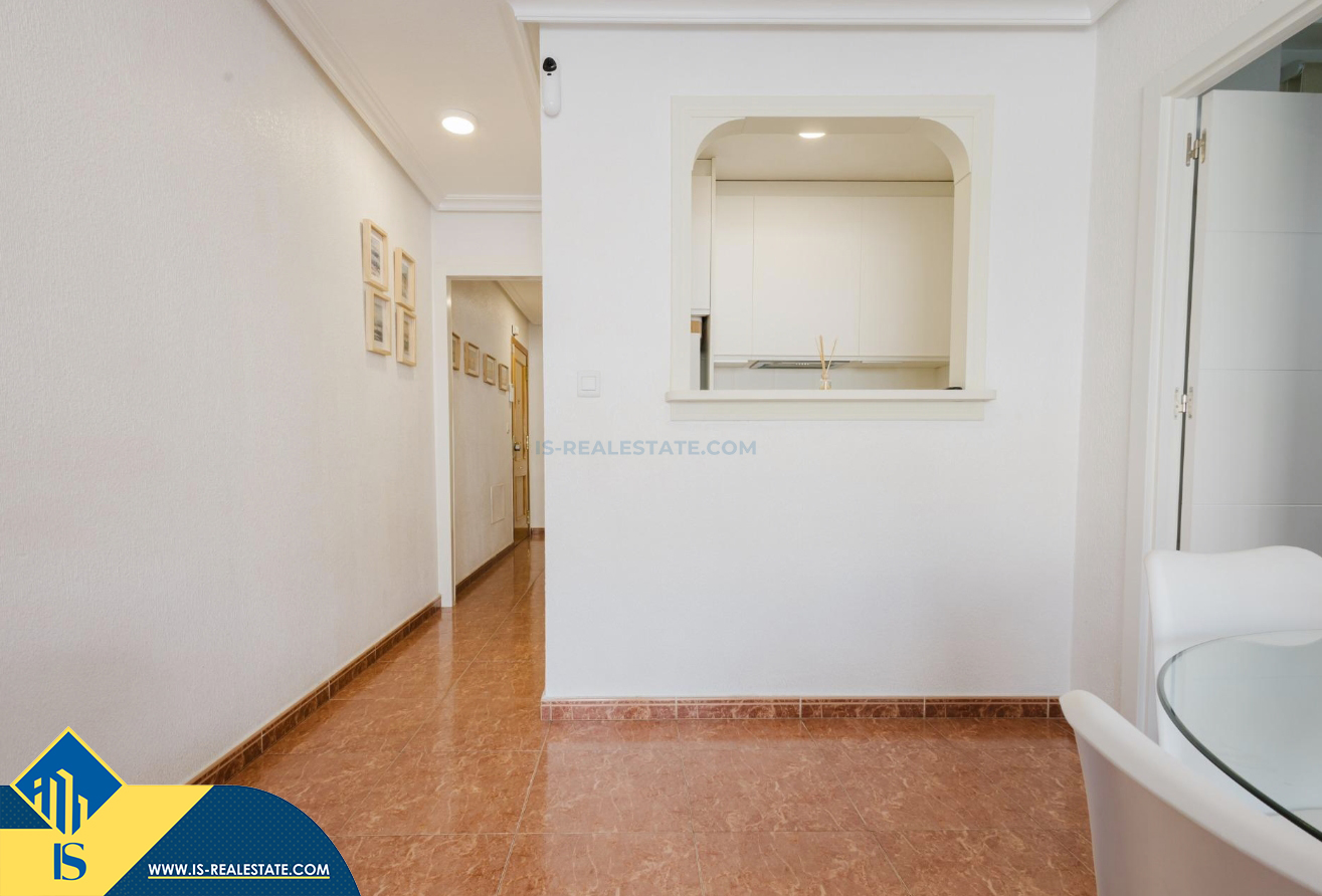 3-jų kambarių renovuotas apartamentas su terasa, Ispanijoje, Alicante provincijoje, Torrevieja mieste, bendras plotas 67 m², 250 metrų iki jūros, 45 kilometrai iki Alicante oro uosto. Turtui priklauso terasa, liftas. Netoli turto yra parduotuvės, restoranai, vaistinės, autobusų stotelės, degalinės, žalios zonos, kavinės