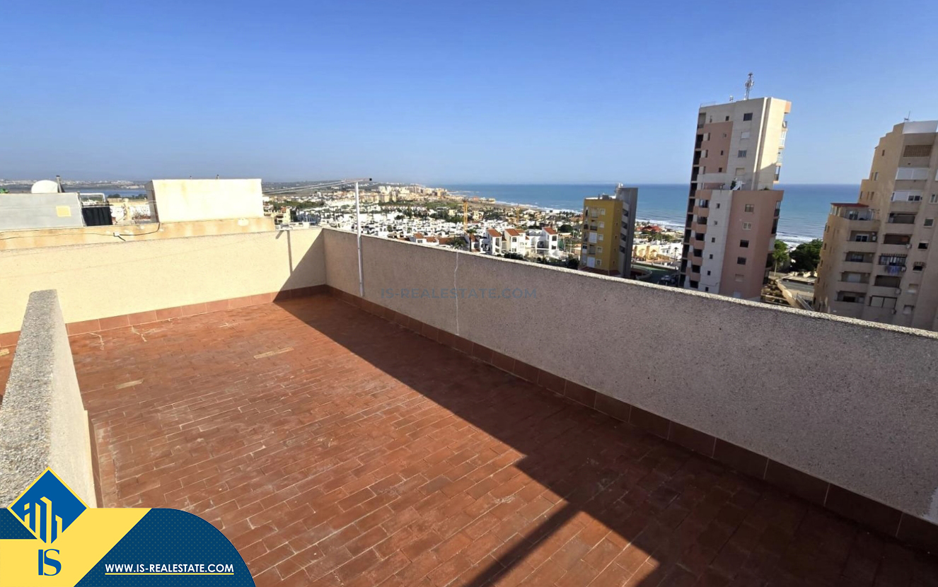 3-jų kambarių duplex penthouse apartamentas su bendru baseinu, Ispanijoje, Alicante provincijoje, Torrevieja mieste, La Mata rajone, bendras plotas 83 m², 600 metrų iki jūros, 38 kilometrai iki Alicante oro uosto. Turtui priklauso bendras baseinas, terasa, soliariumas, garažas. Netoli turto yra parduotuvės, restoranai, autobusų stotelės, degalinės, žalios zonos, kavinės, vaistinės