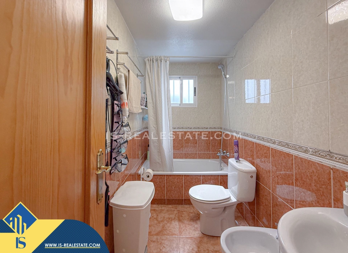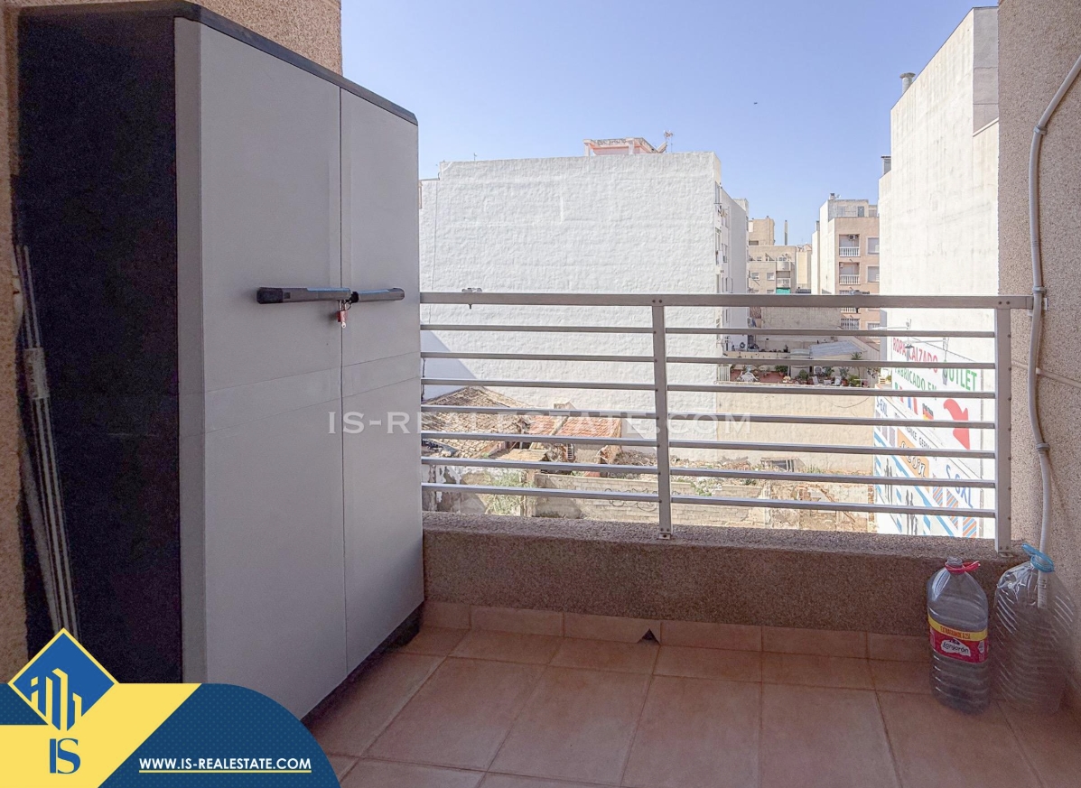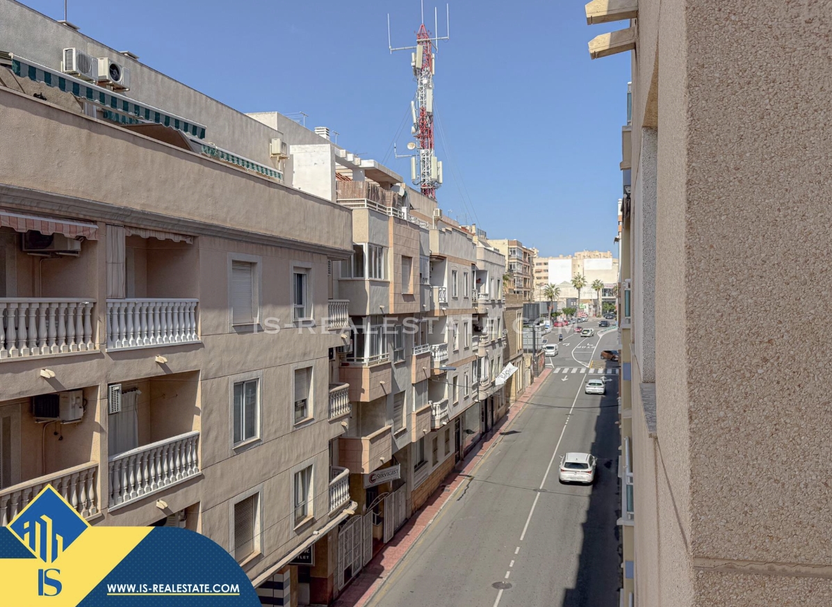3-jų kambarių apartamentas su bendru baseinu, Ispanijoje, Alicante provincijoje, Torrevieja mieste, Playa del Cura rajone, bendras plotas 58 m², 750 metrų iki jūros, 45 kilometrai iki Alicante oro uosto. Turtui priklauso bendras baseinas, terasa, liftas. Netoli turto yra parduotuvės, restoranai, vaistinės, autobusų stotelės, degalinės, žalios zonos, kavinės, Habaneras alėja