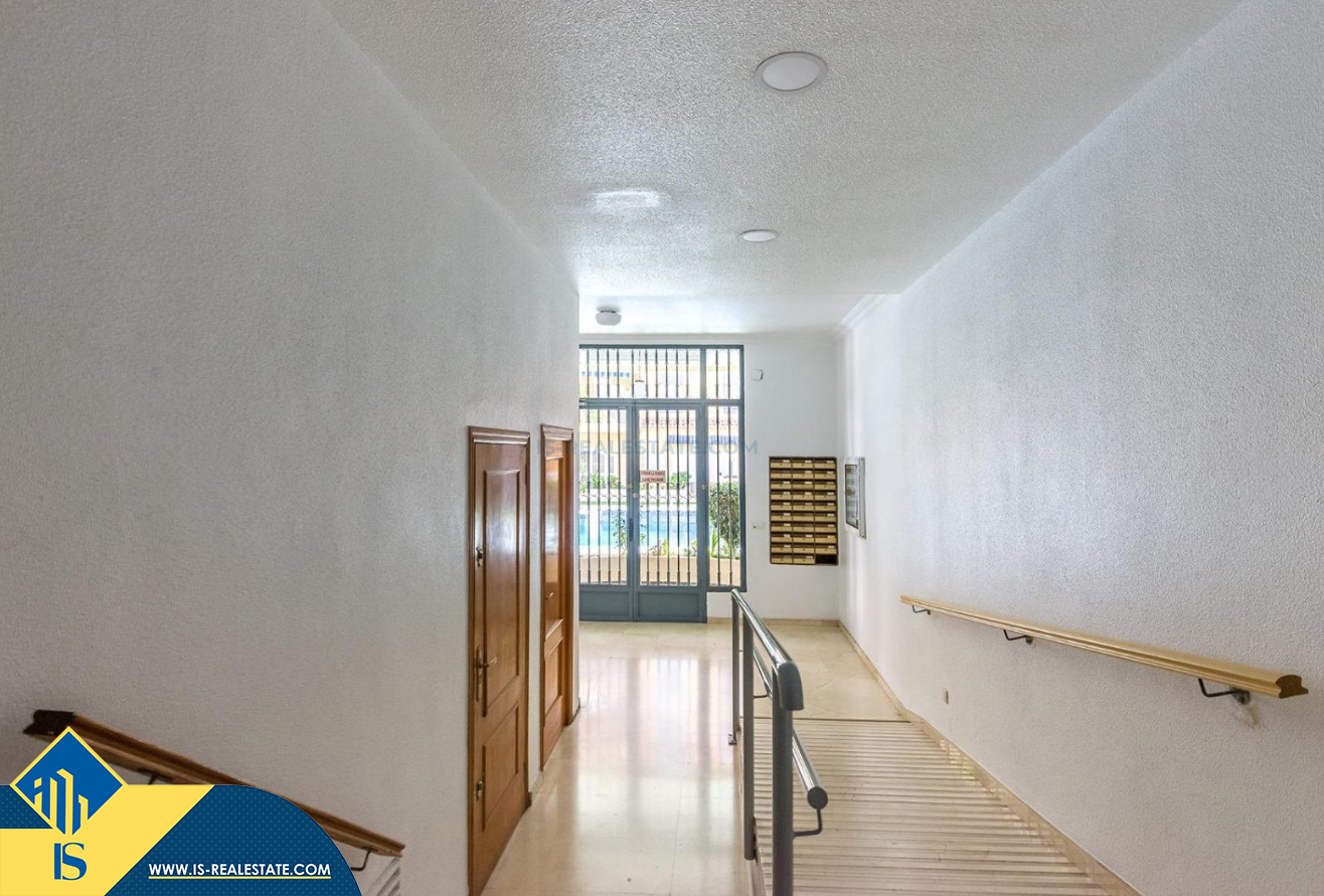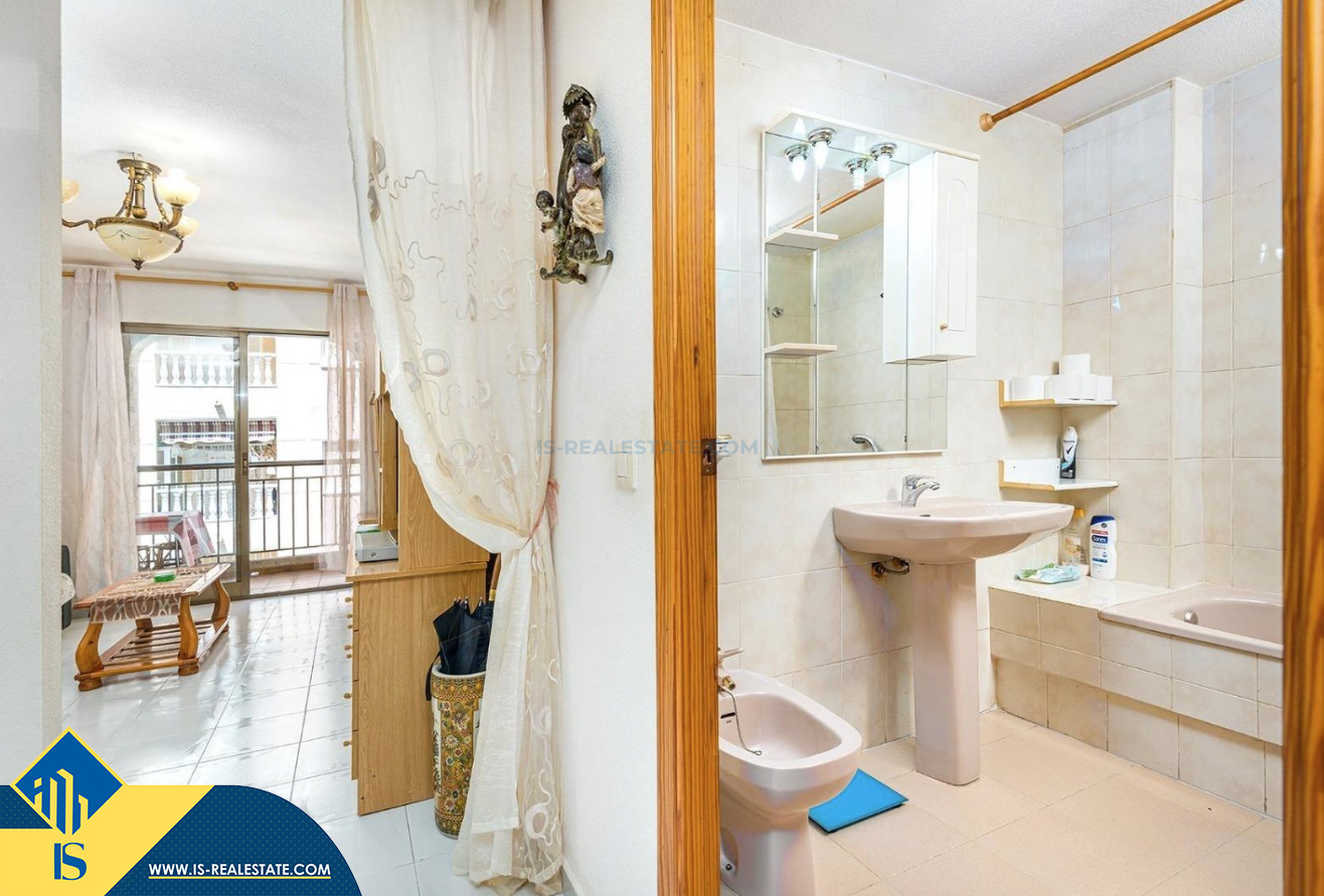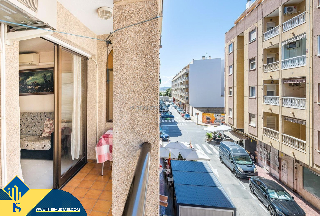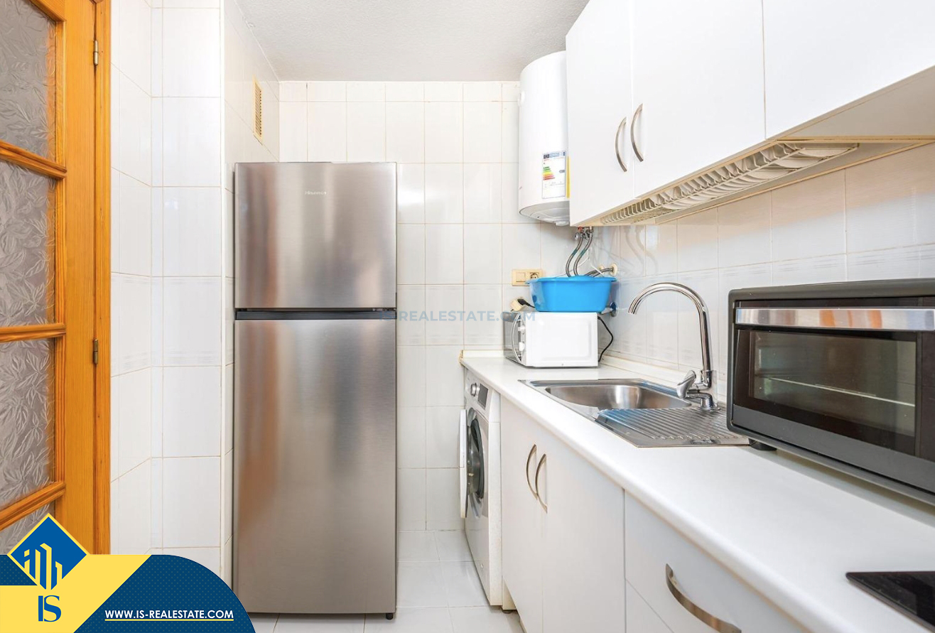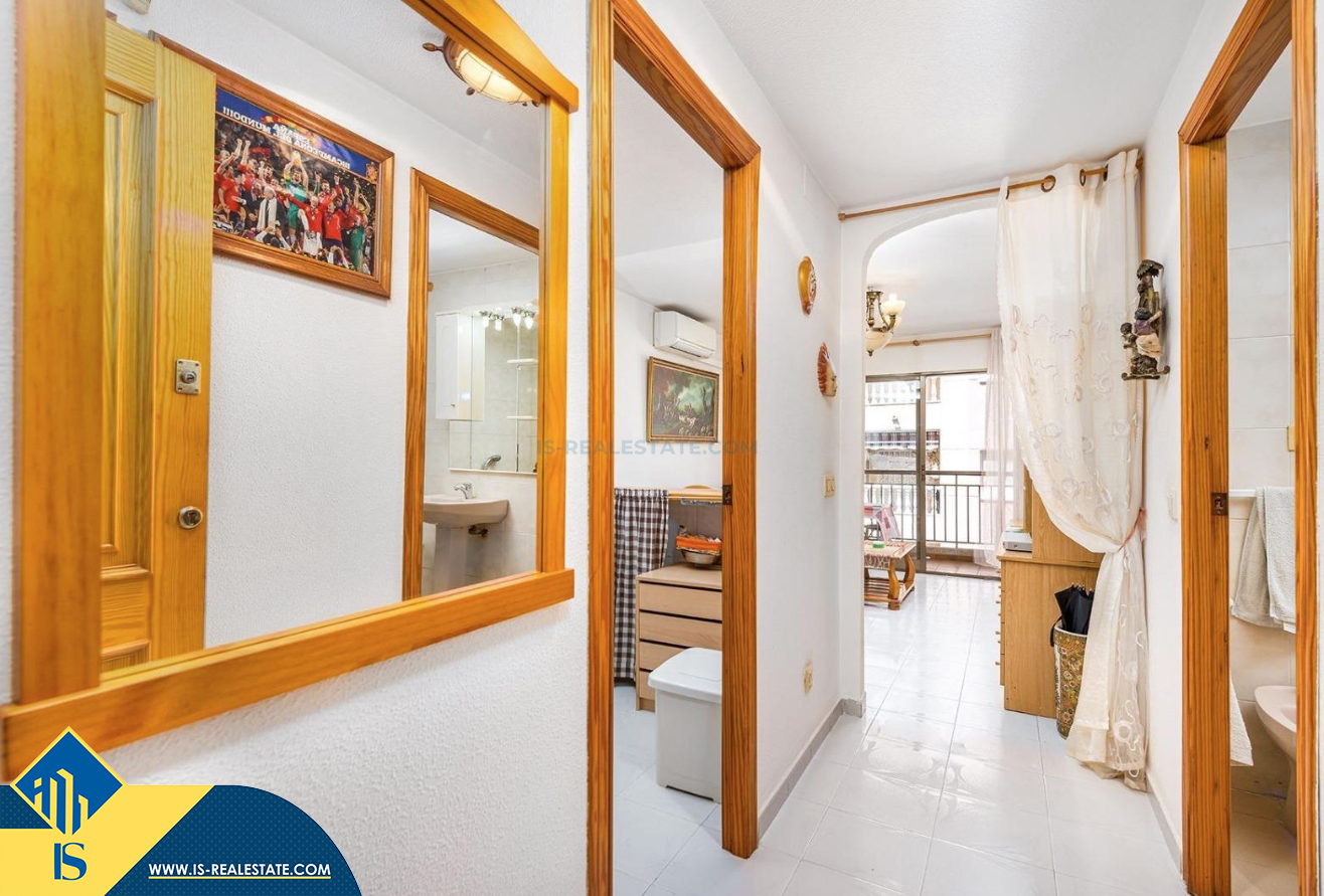 2-jų kambarių apartamentas su bendru baseinu, Ispanijoje, Alicante provincijoje, Torrevieja mieste, bendras plotas 50 m², 700 metrų iki jūros, 45 kilometrai iki Alicante oro uosto. Turtui priklauso bendras baseinas, terasa, liftas. Netoli turto yra parduotuvės, restoranai, vaistinės, autobusų stotelės, degalinės, žalios zonos, kavinės
