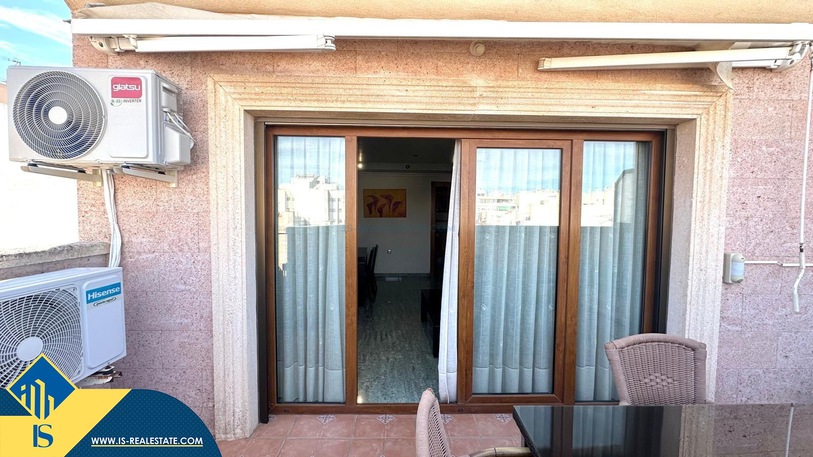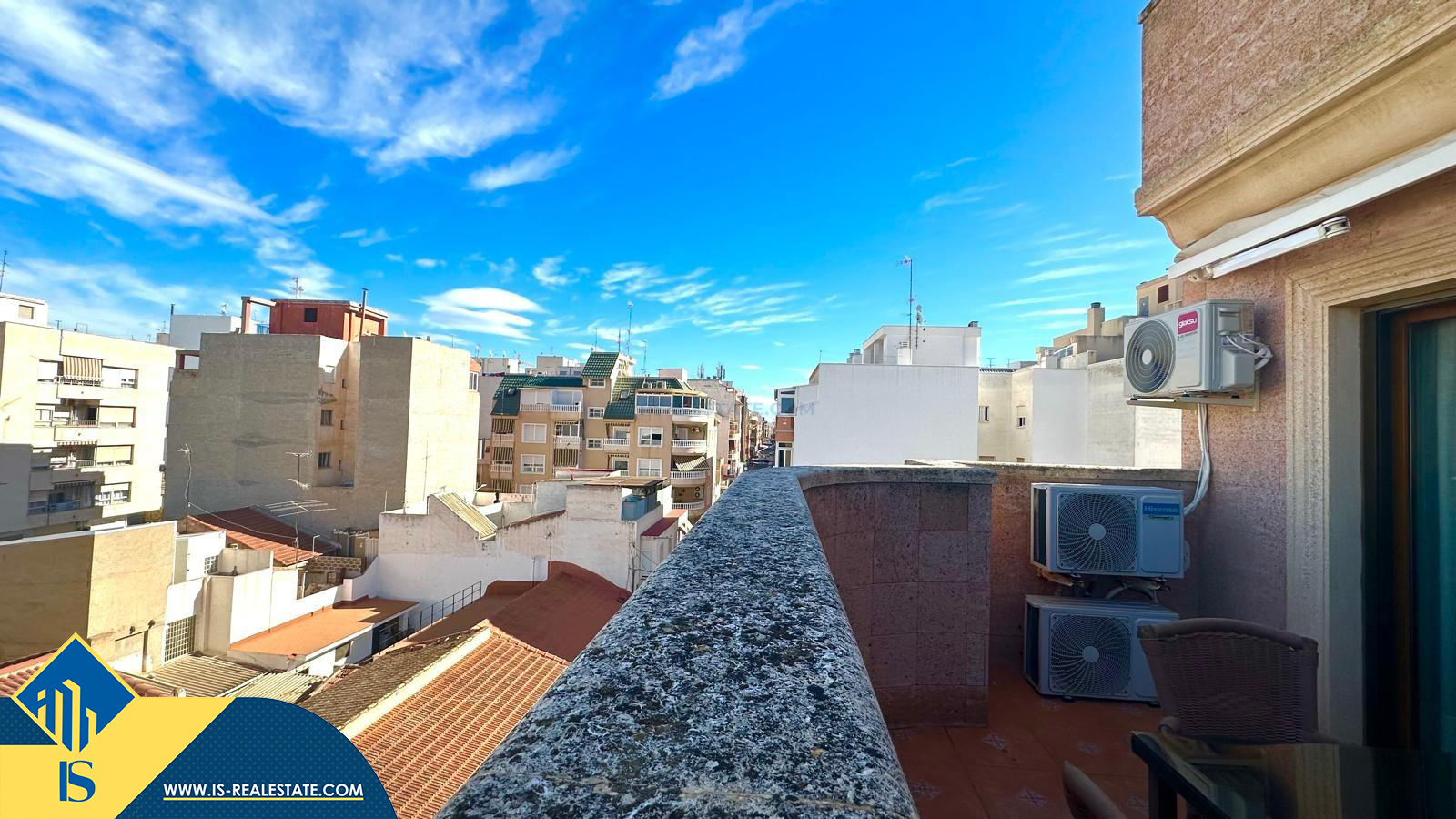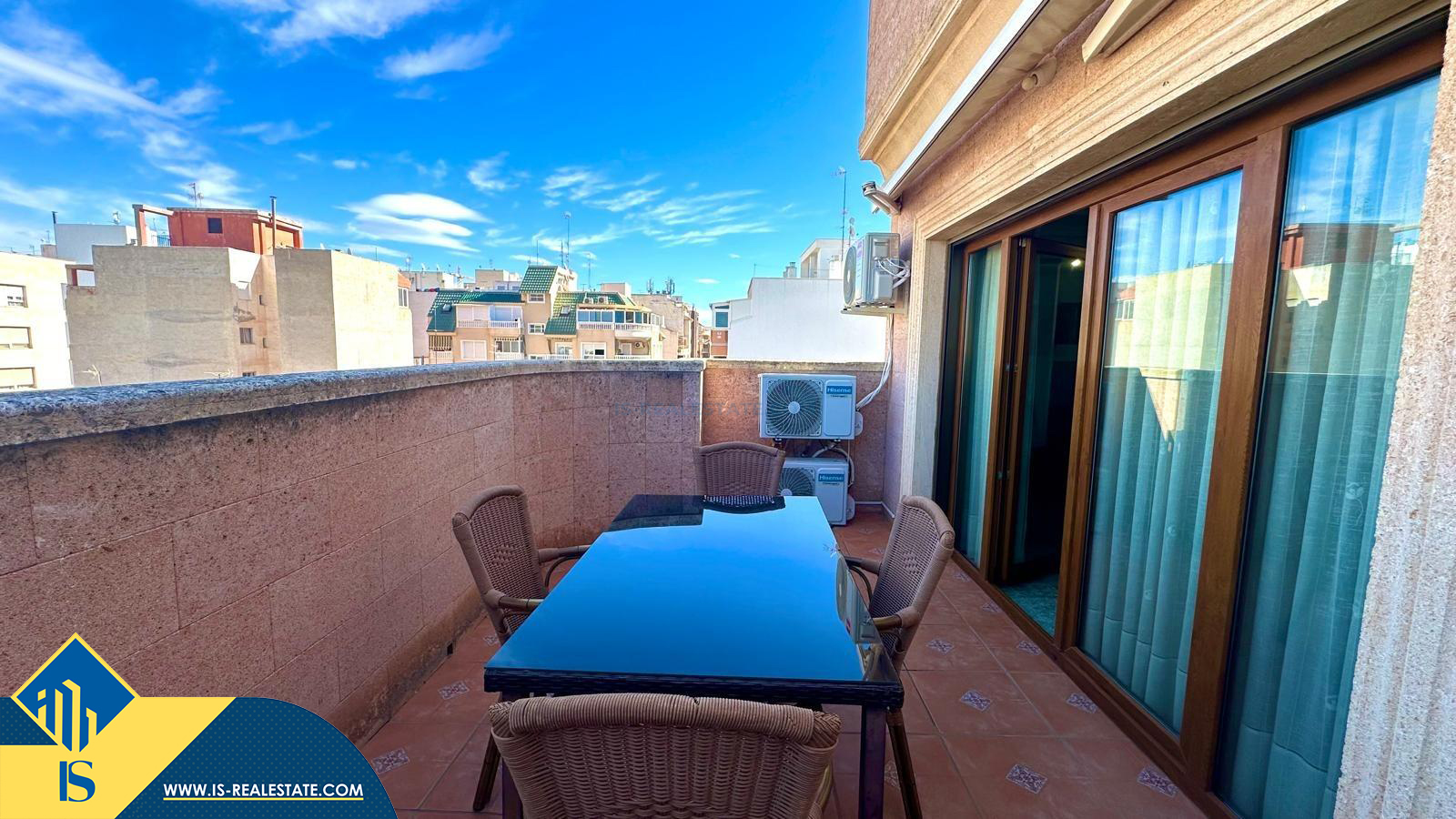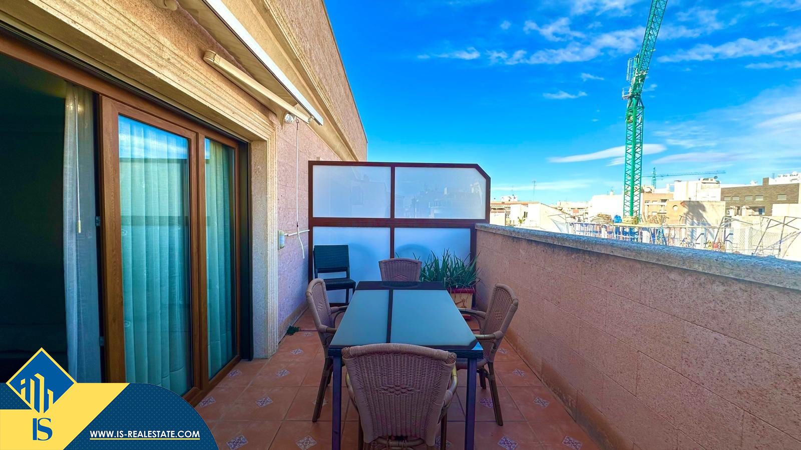 3-jų kambarių penthouse apartamentas su terasa, Ispanijoje, Alicante provincijoje, Torrevieja mieste, Playa del Cura rajone, bendras plotas 98 m², 450 metrų iki jūros, 45 kilometrai iki Alicante oro uosto. Turtui priklauso terasa, liftas. Netoli turto yra parduotuvės, restoranai, autobusų stotelės, degalinės, žalios zonos, kavinės, vaistinės