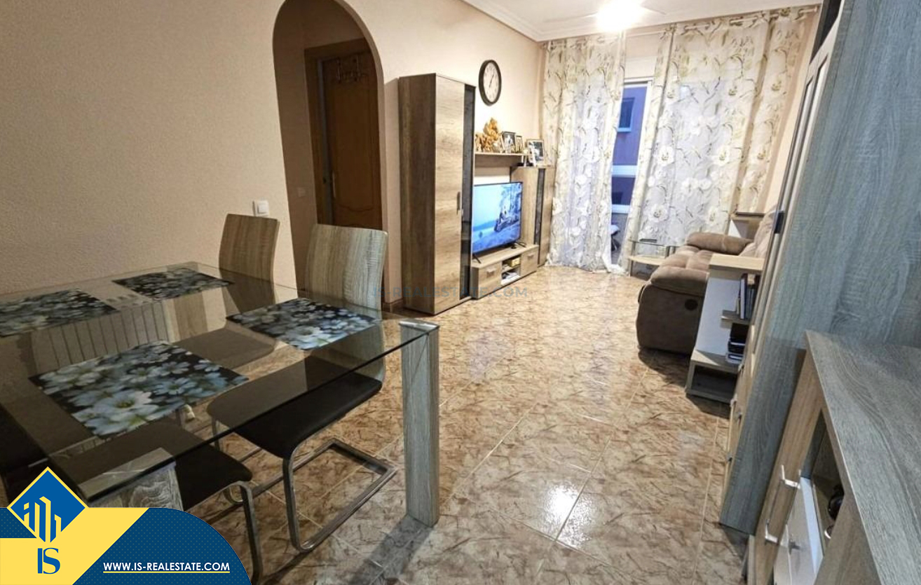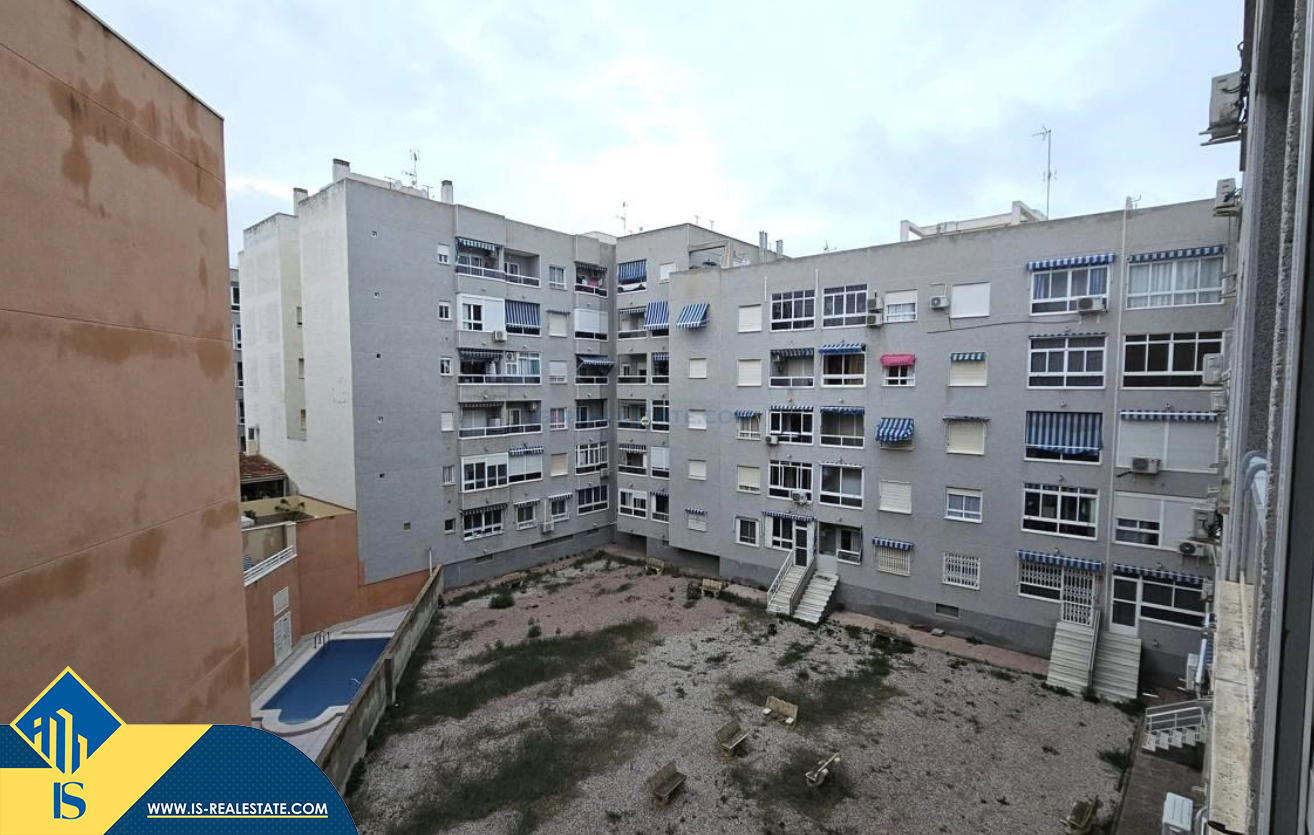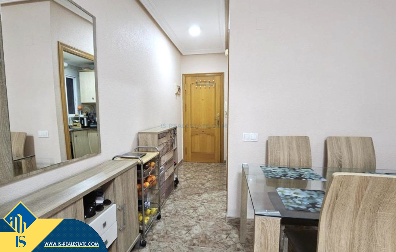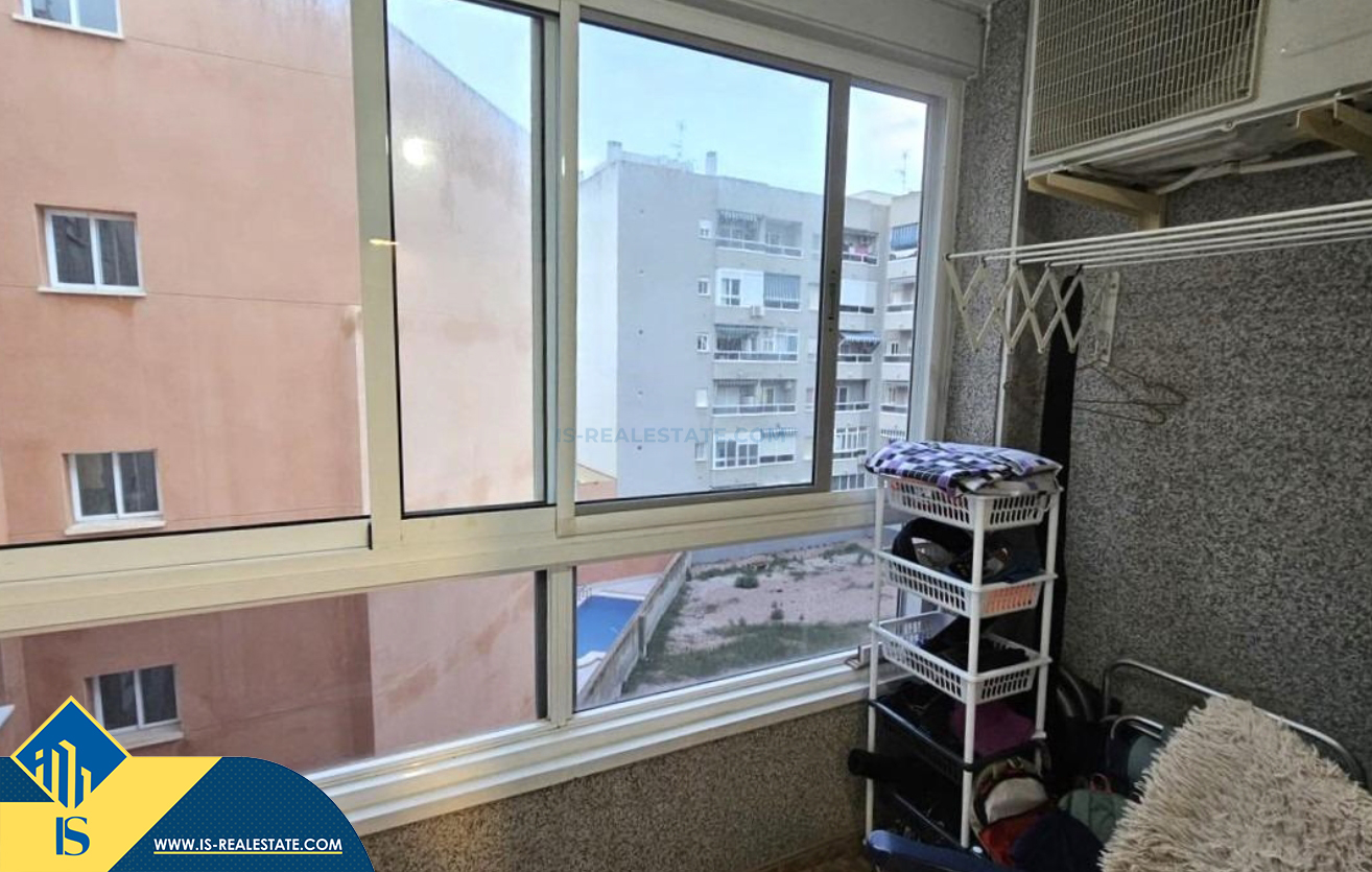 3-jų kambarių apartamentas su terasa, Ispanijoje, Alicante provincijoje, Torrevieja mieste, bendras plotas 65 m², 500 metrų iki jūros, 45 kilometrai iki Alicante oro uosto. Turtui priklauso terasa, liftas. Netoli turto yra parduotuvės, restoranai, vaistinės, autobusų stotelės, degalinės, žalios zonos, kavinės