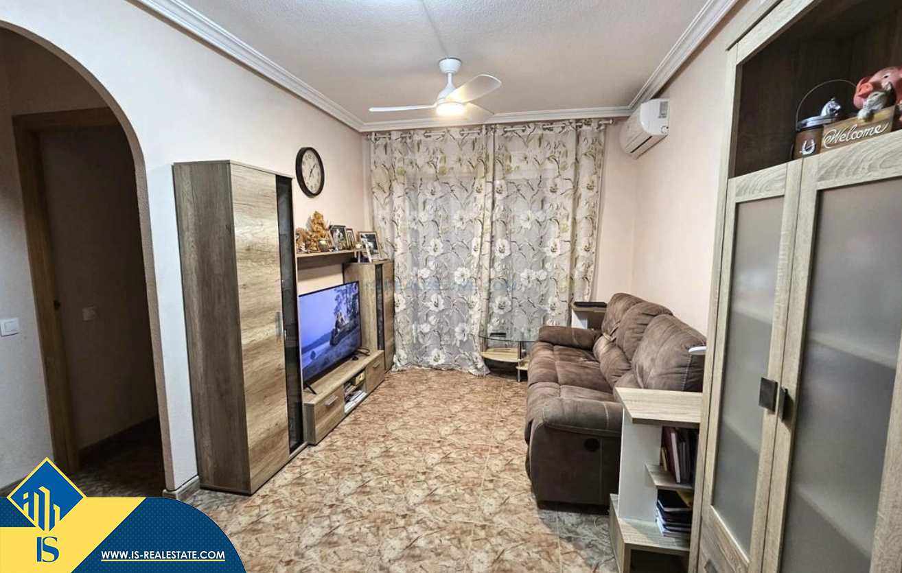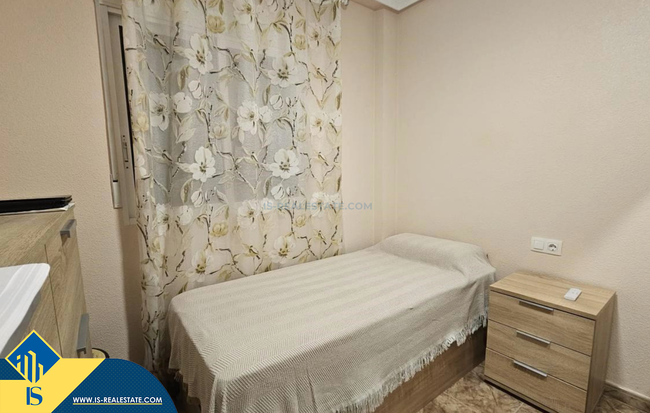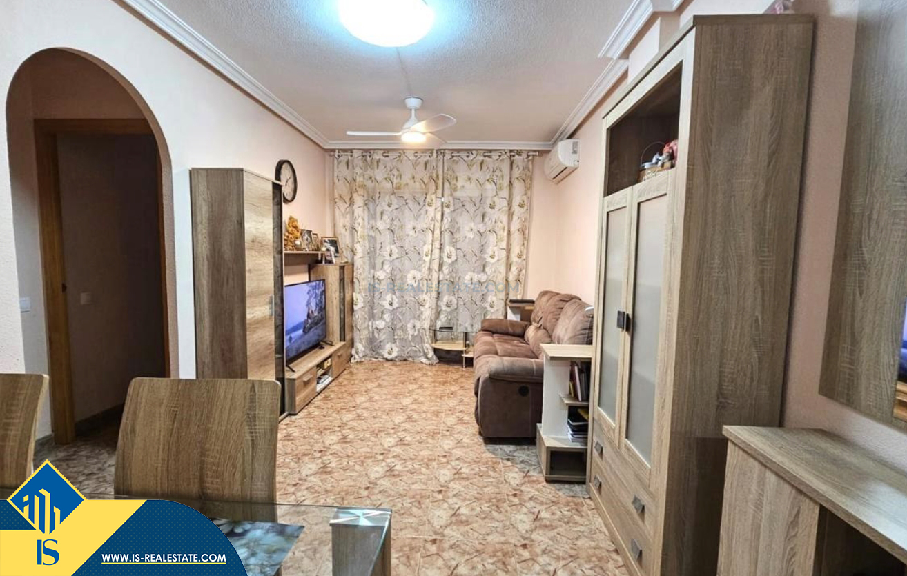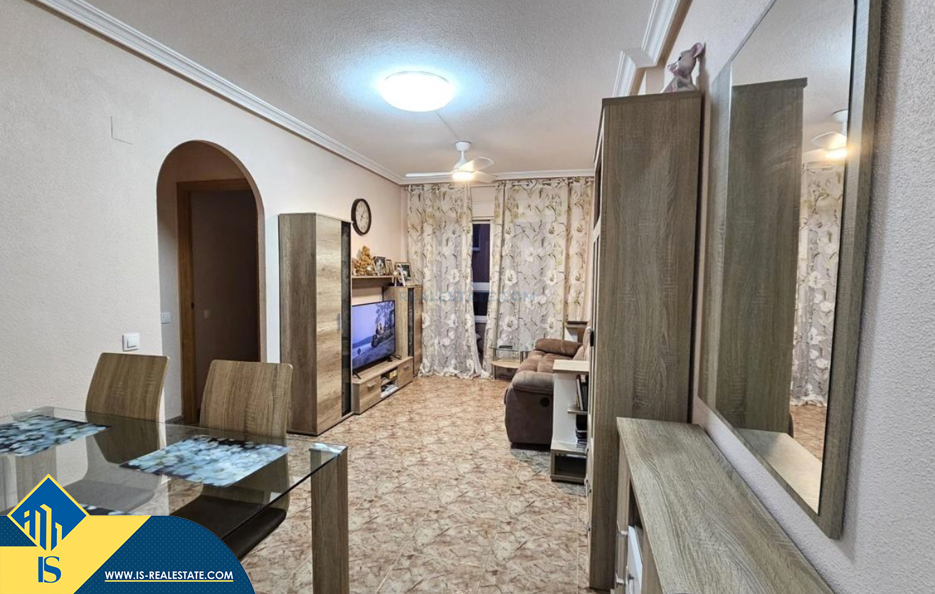 3-jų kambarių apartamentas su terasa, Ispanijoje, Alicante provincijoje, Torrevieja mieste, bendras plotas 65 m², 500 metrų iki jūros, 45 kilometrai iki Alicante oro uosto. Turtui priklauso terasa, liftas. Netoli turto yra parduotuvės, restoranai, vaistinės, autobusų stotelės, degalinės, žalios zonos, kavinės