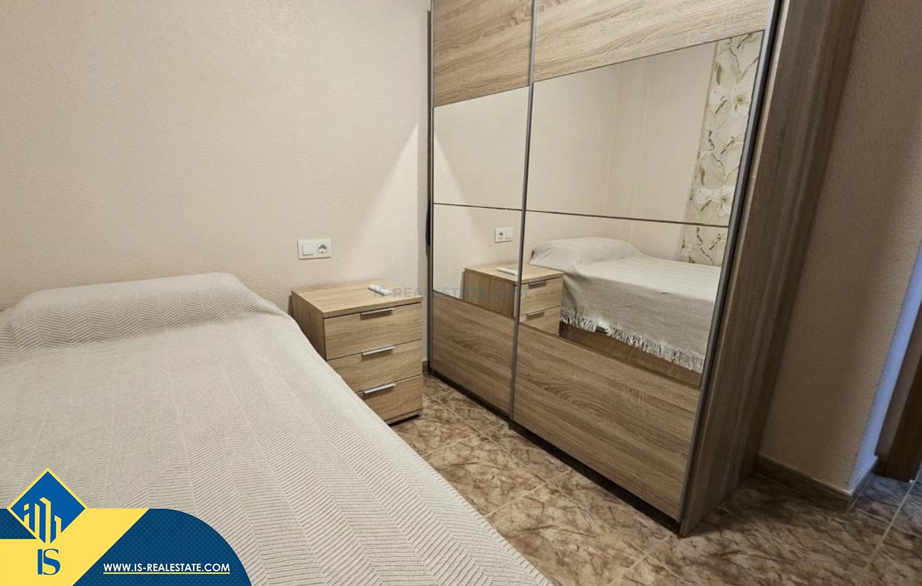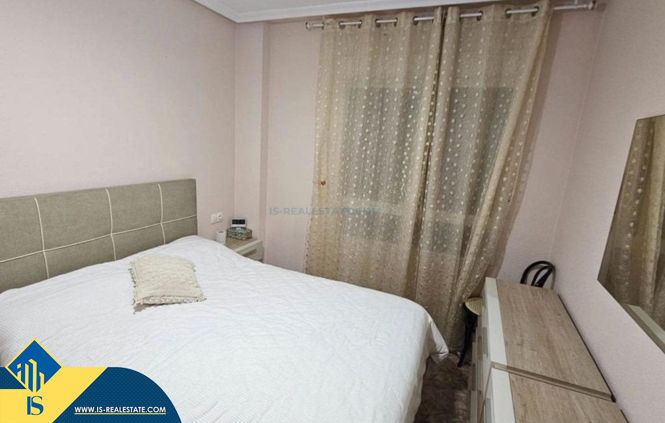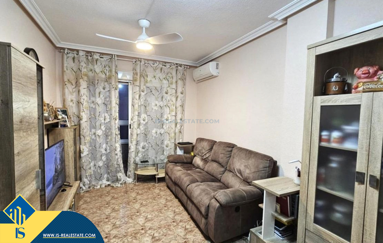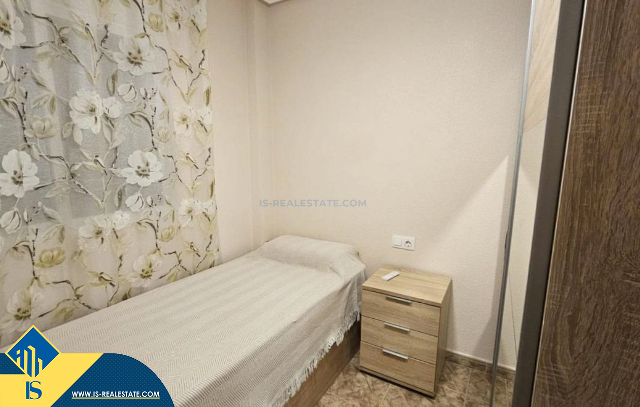 3-jų kambarių apartamentas su terasa, Ispanijoje, Alicante provincijoje, Torrevieja mieste, bendras plotas 65 m², 500 metrų iki jūros, 45 kilometrai iki Alicante oro uosto. Turtui priklauso terasa, liftas. Netoli turto yra parduotuvės, restoranai, vaistinės, autobusų stotelės, degalinės, žalios zonos, kavinės