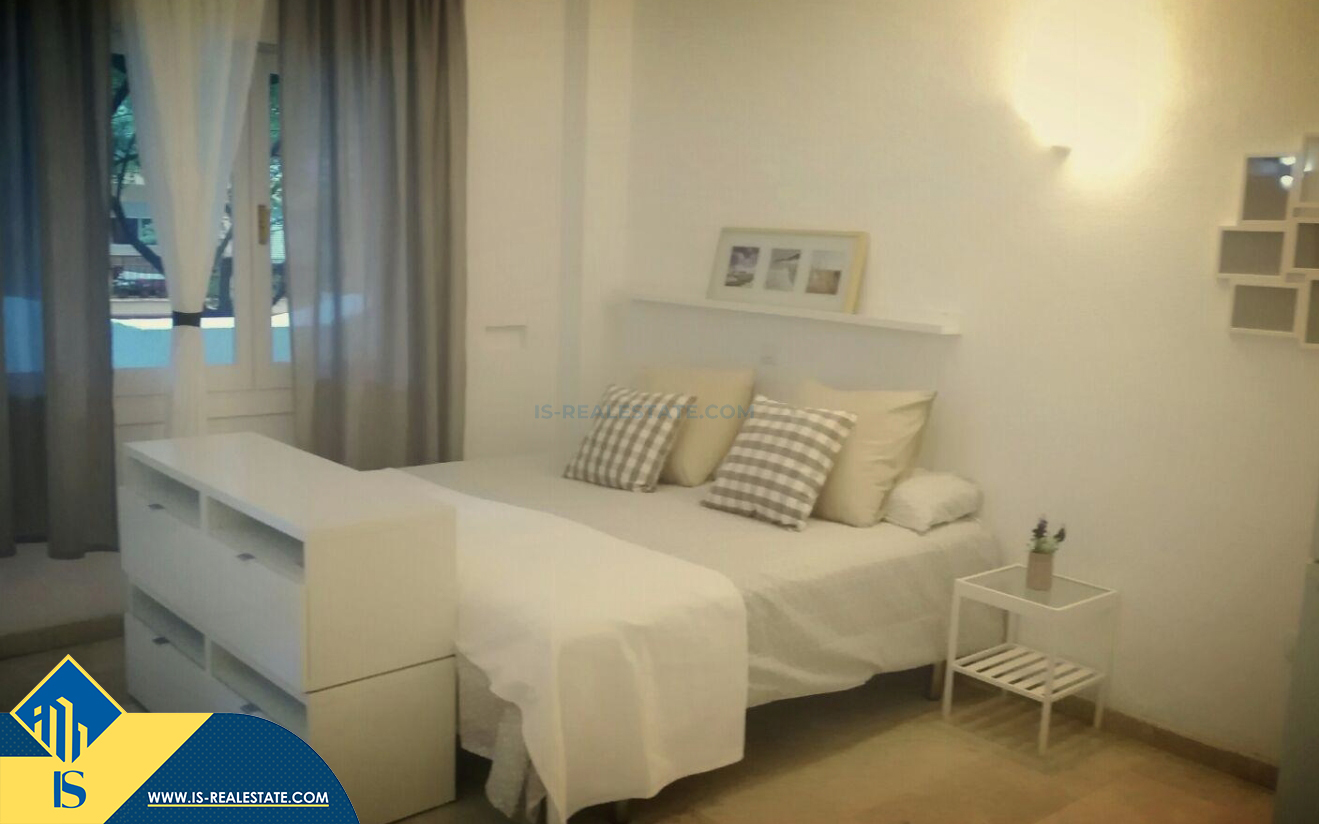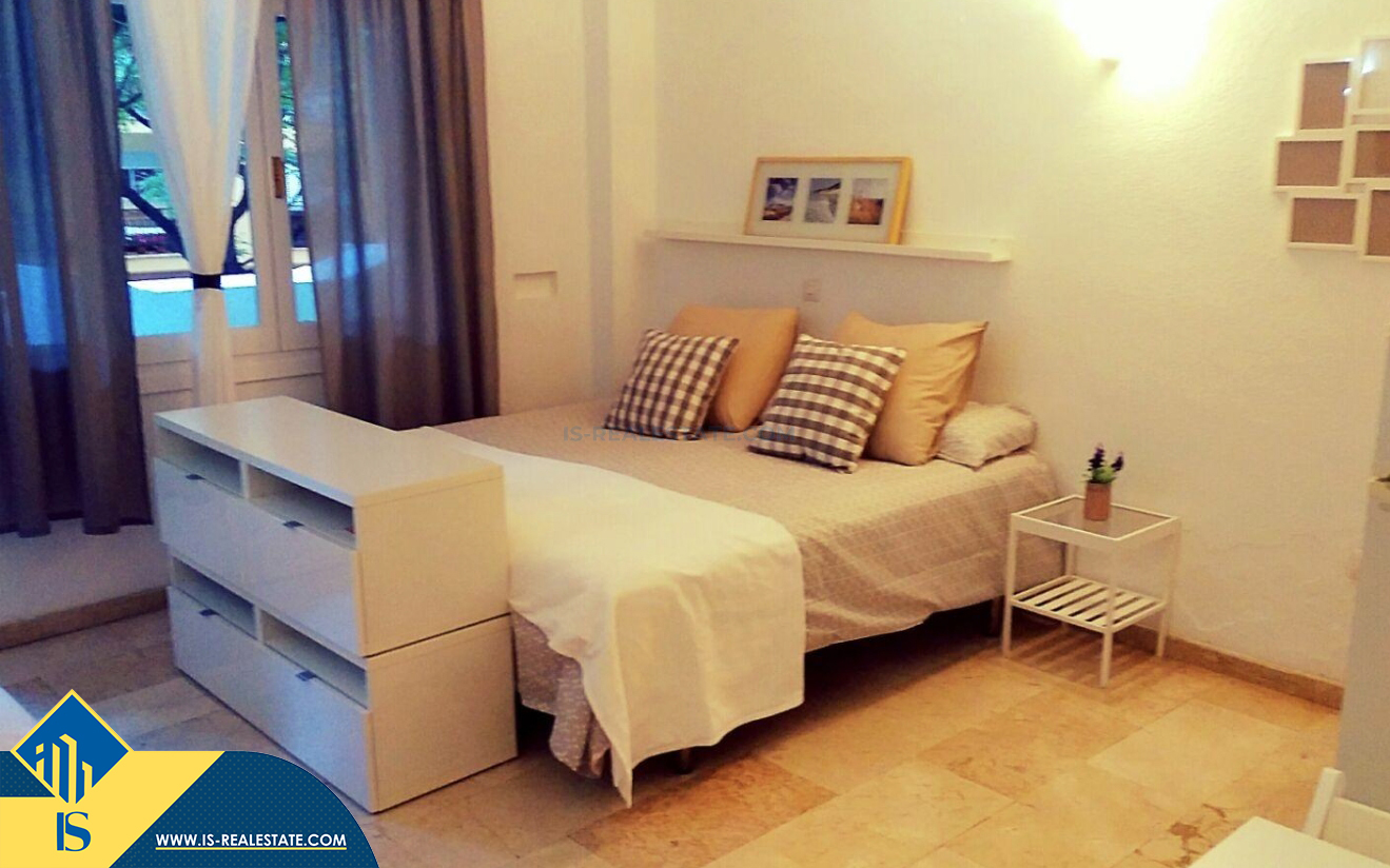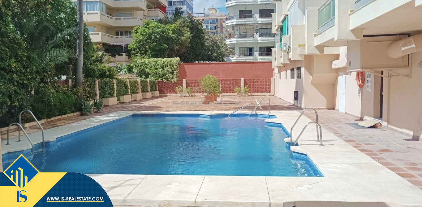Renovuota studija su bendru baseinu, Ispanijoje, Malaga provincijoje, Marbella mieste, bendras plotas 40 m², 500 metrų iki jūros, 57 kilometrai iki Malaga oro uosto. Turtui priklauso bendras baseinas, terasa, liftas. Netoli turto yra parduotuvės, restoranai, autobusų stotelės, vaikų zonos, degalinės, žalios zonos, kavinės, vaistinės, ligoninė
