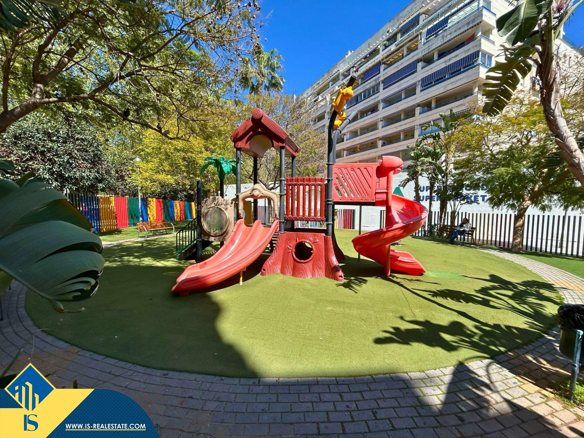 3-jų kambarių apartamentas su terasa, Ispanijoje, Malaga provincijoje, Marbella mieste, Auksinės mylios rajone, bendras plotas 95 m², 600 metrų iki jūros, 57 kilometrai iki Malaga oro uosto. Turtui priklauso terasa, bendras baseinas, liftas, vieta automobiliui. Netoli turto yra parduotuvės, restoranai, autobusų stotelės, vaikų zonos, degalinės, žalios zonos, kavinės, vaistinės, ligoninė